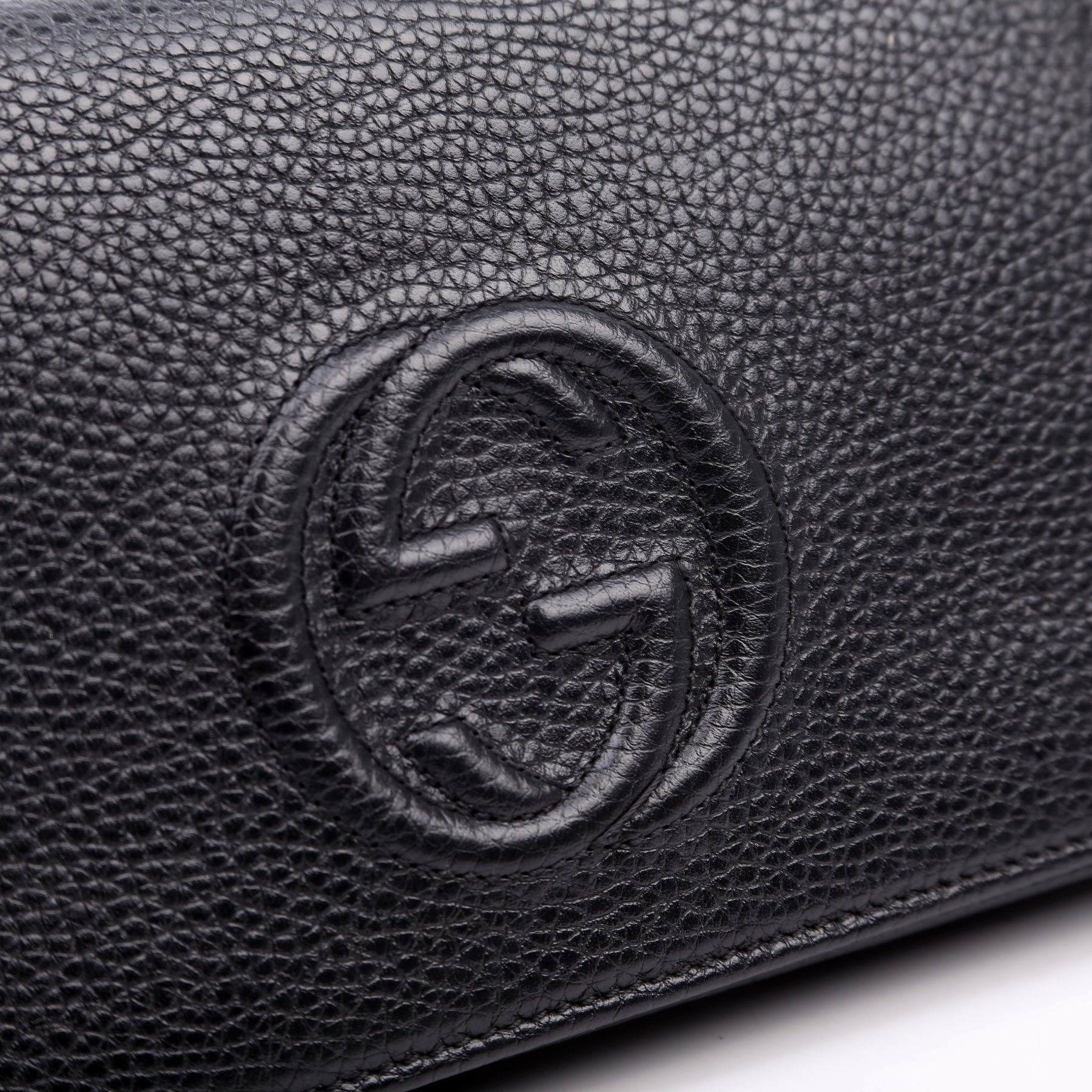 This pre-owned Gucci Soho Woc Crossbody is guaranteed 100% authentic. The exterior is in the classic Gucci Soho leather.