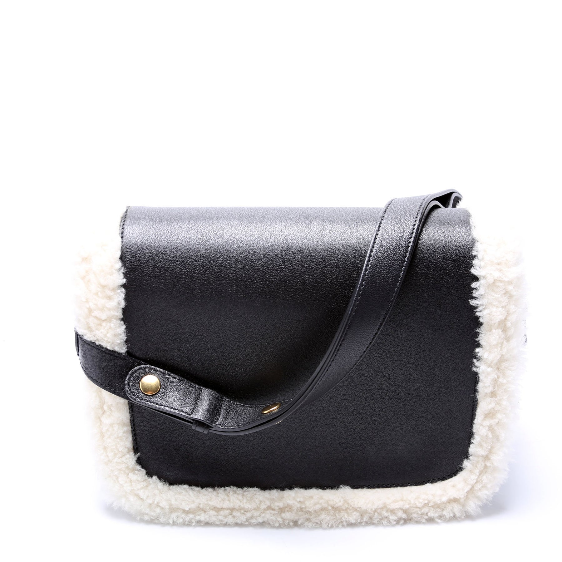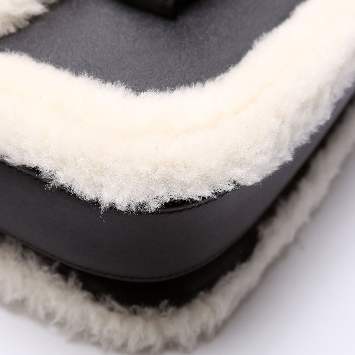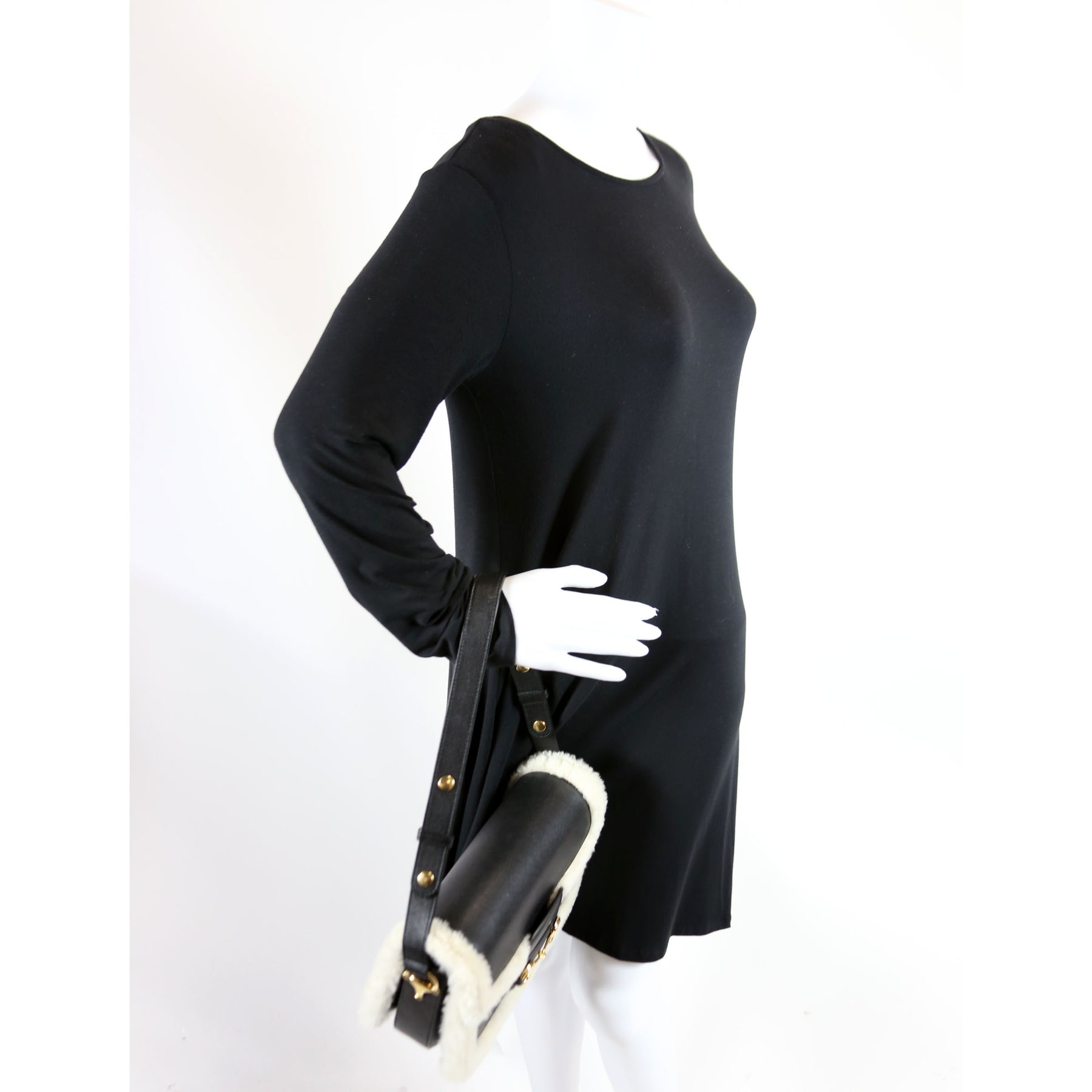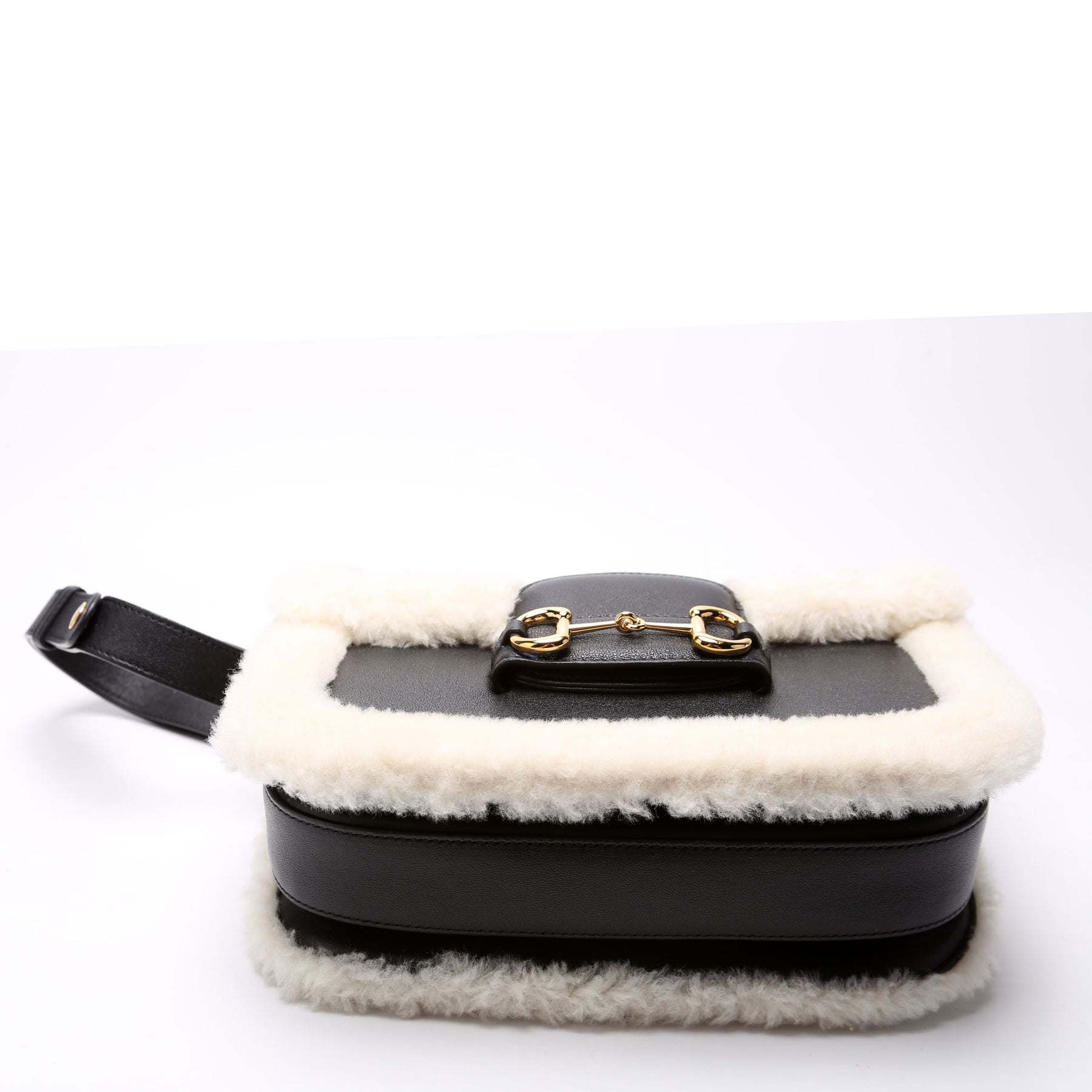 602204 Horsebit 1955 Shearling Leather Shoulder Bag Black