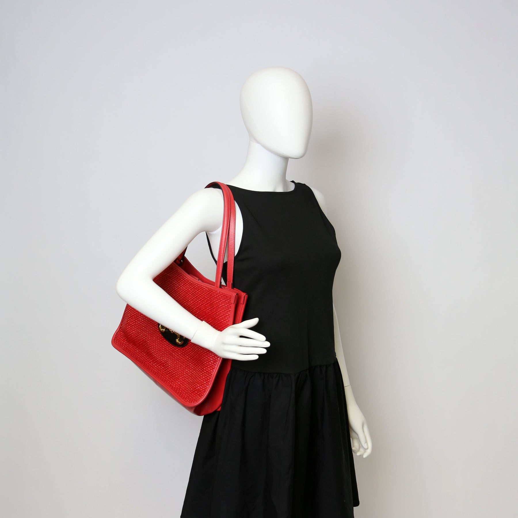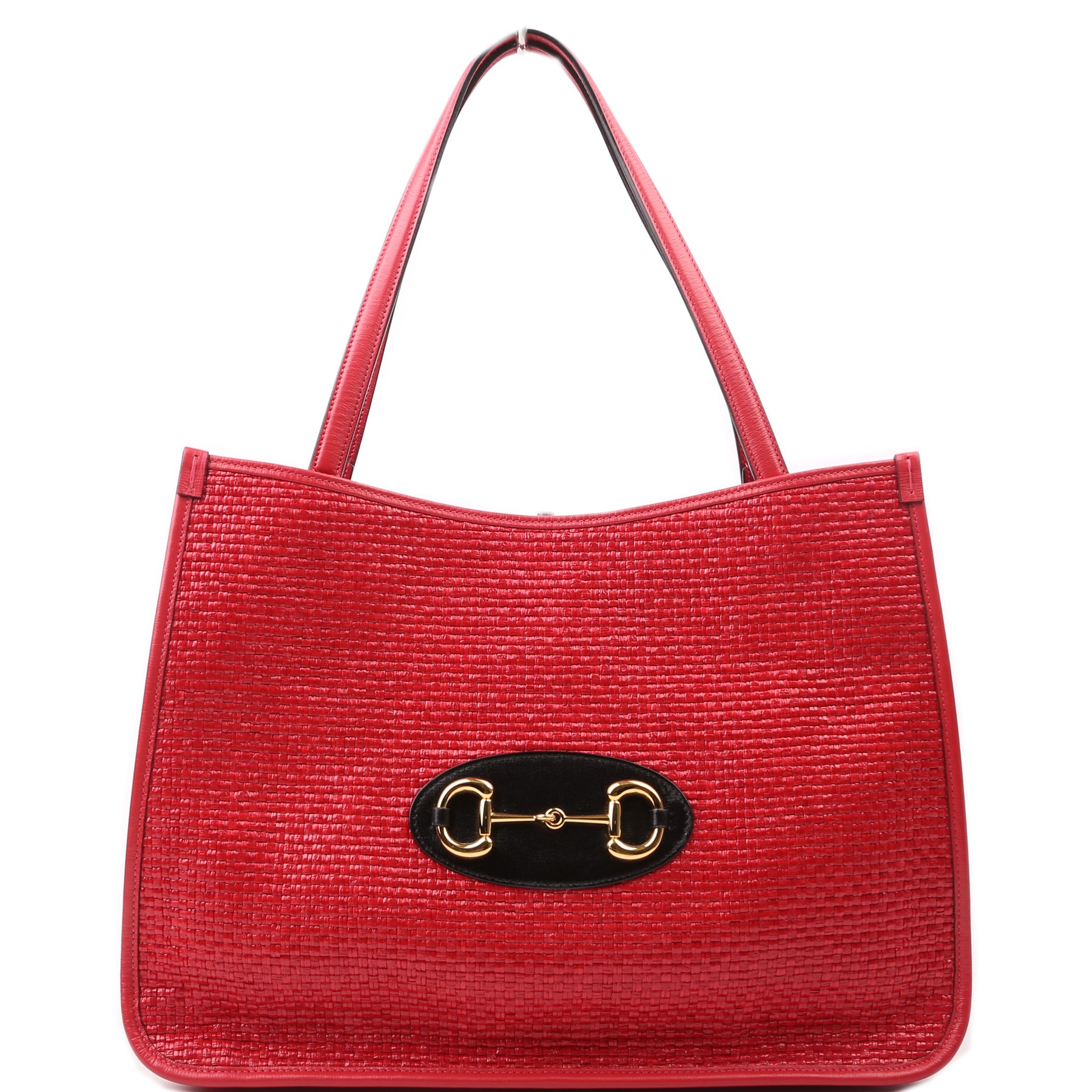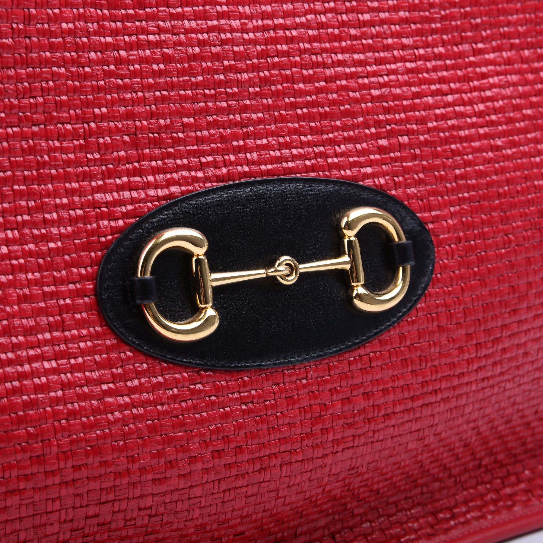 This pre-owned Gucci 1955 Horsebit Raffia Tote is guaranteed 100% authentic.
