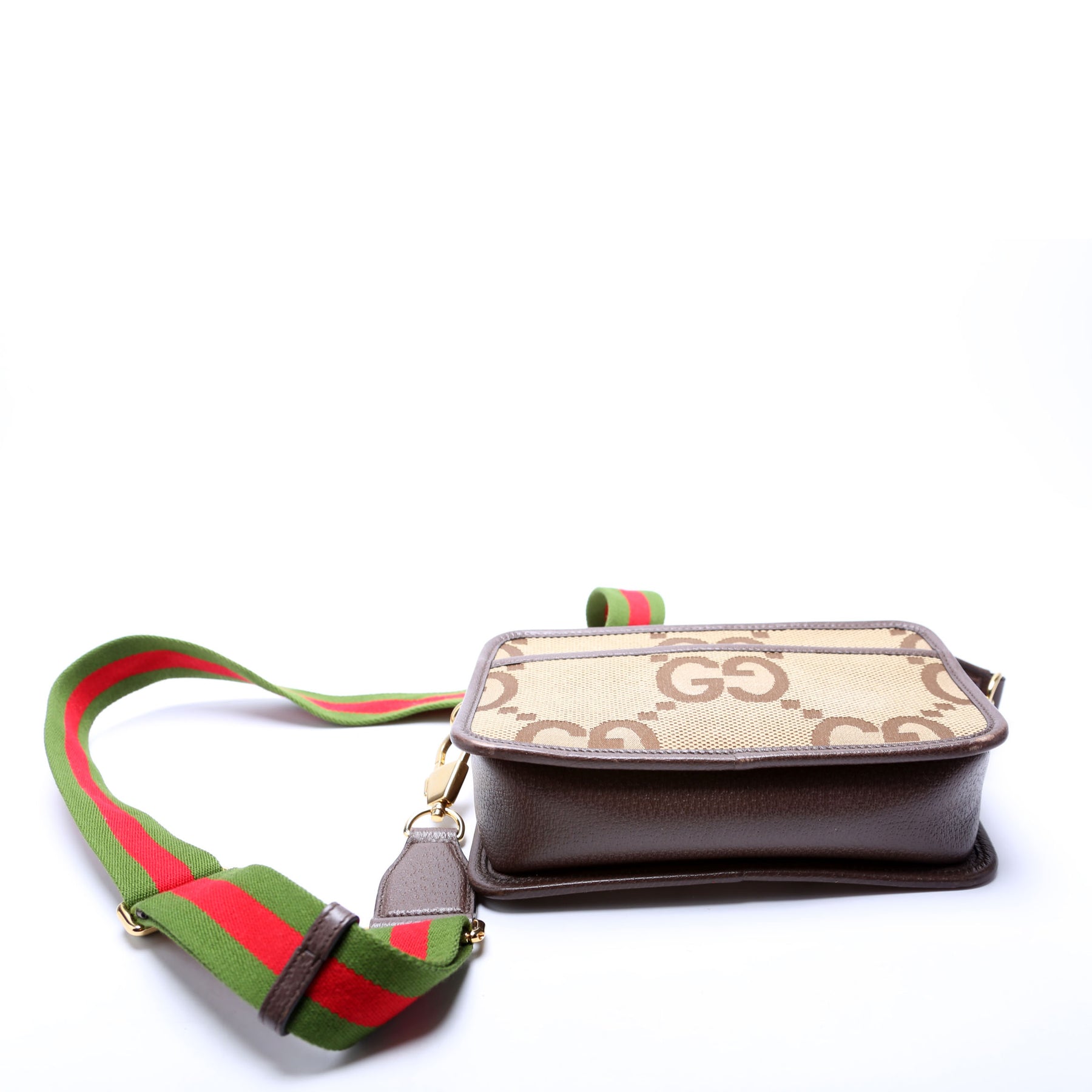 This pre-owned Gucci Jumbo GG Mini Camera Bag is guaranteed 100% authentic. The exterior is in the classic Gucci Jumbo GG canvas.