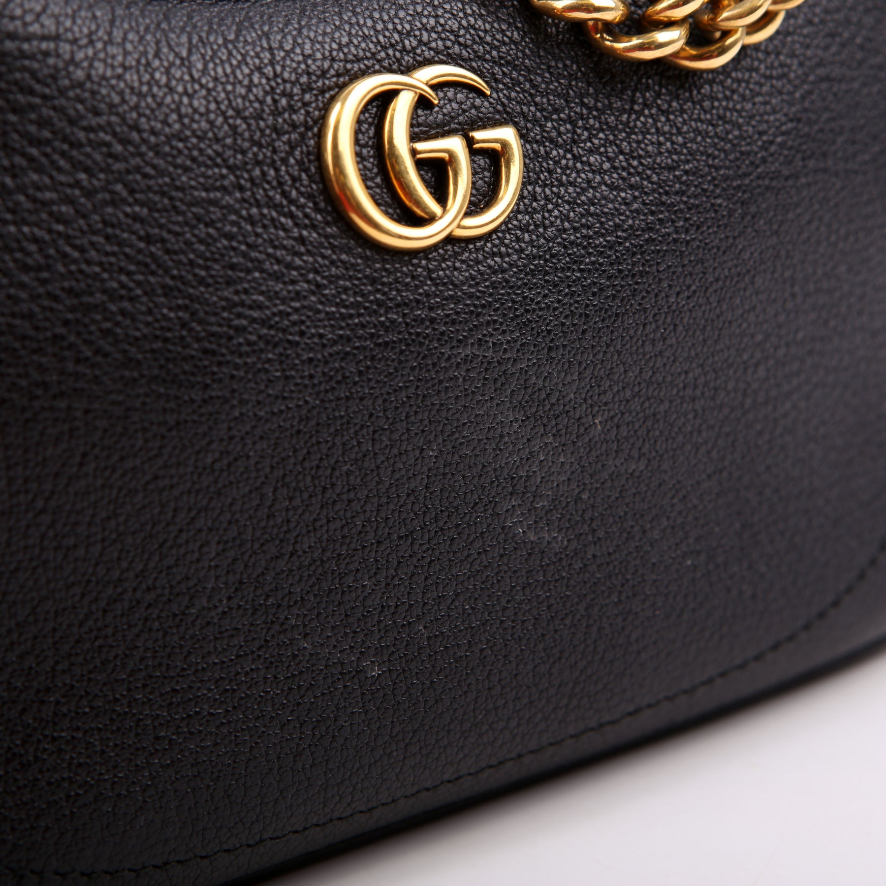 This pre-owned Gucci Aphrodite Leather Small Shoulder Bag is guaranteed 100% authentic.