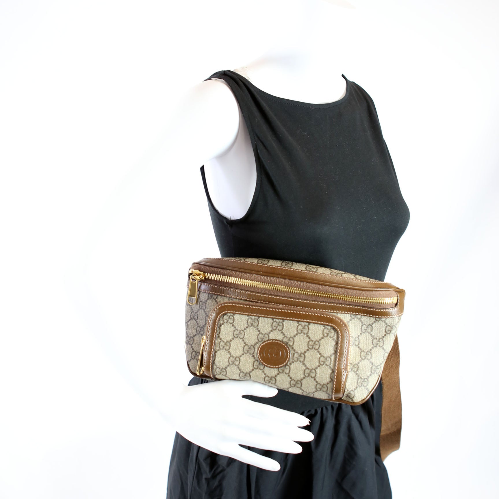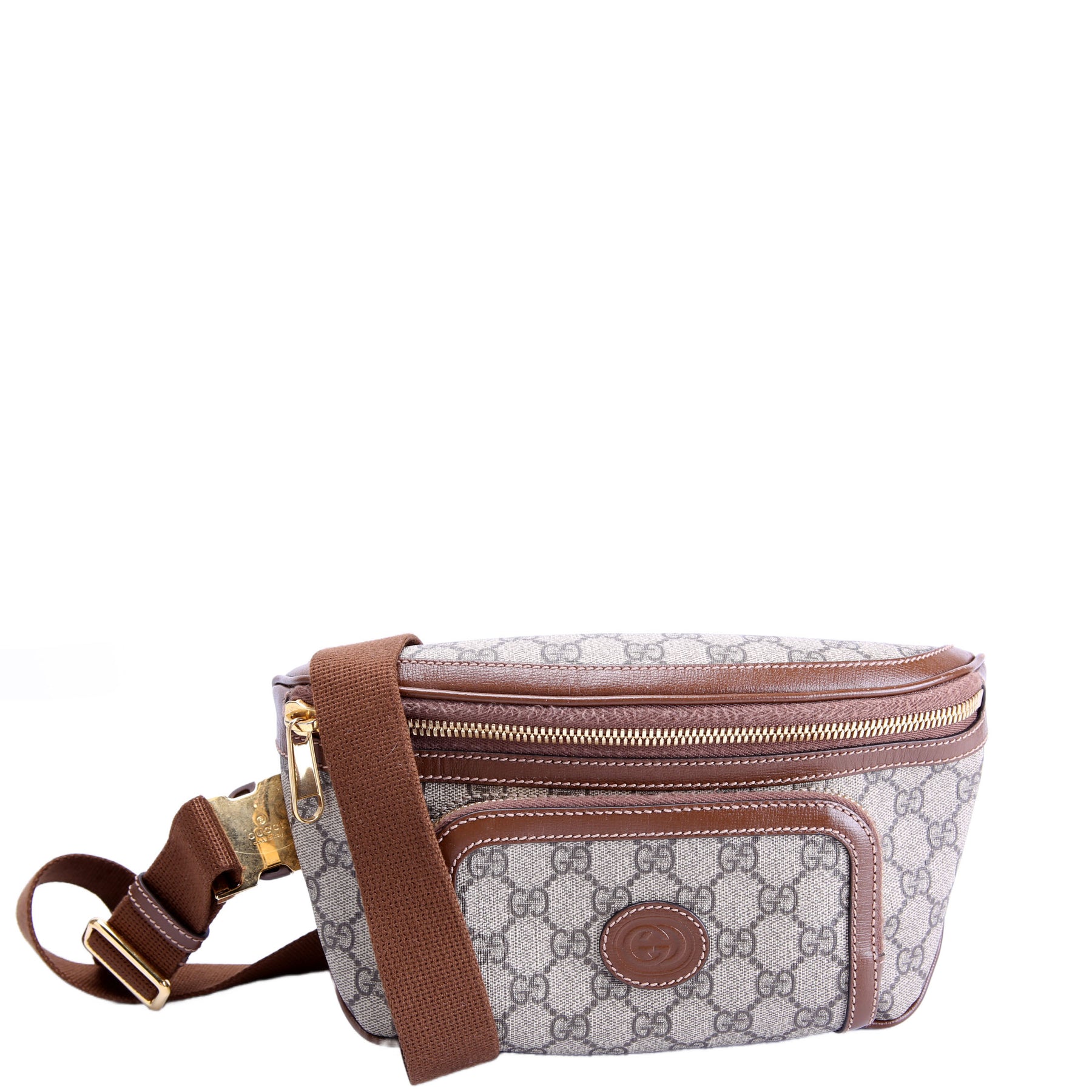 This pre-owned Gucci GG Supreme Interlocking Large Belt Bag is guaranteed 100% authentic. The exterior is in the classic Gucci Supreme Canvas.