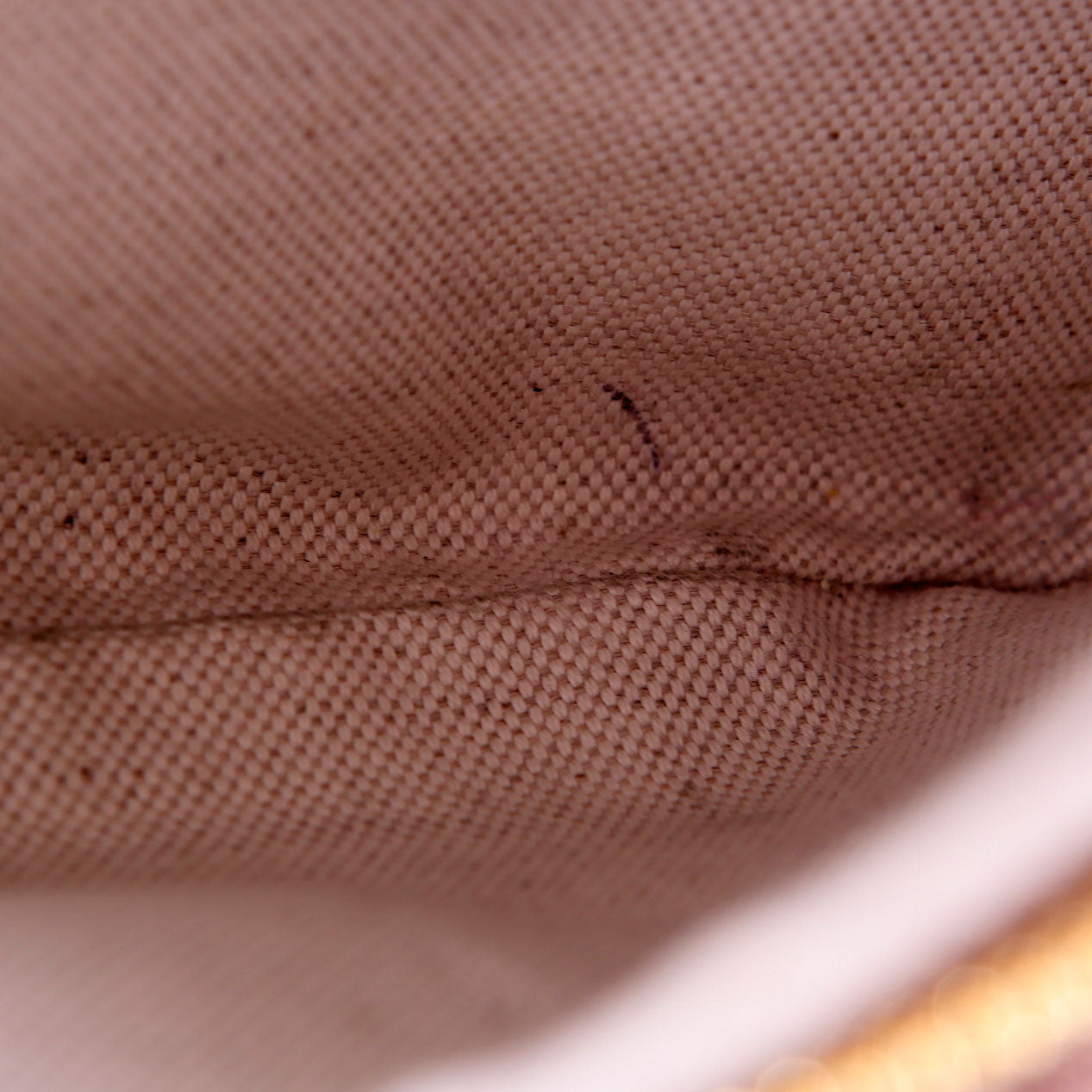 Exterior: The leather piping shows scuffs throughout. The exterior features two zip pockets.