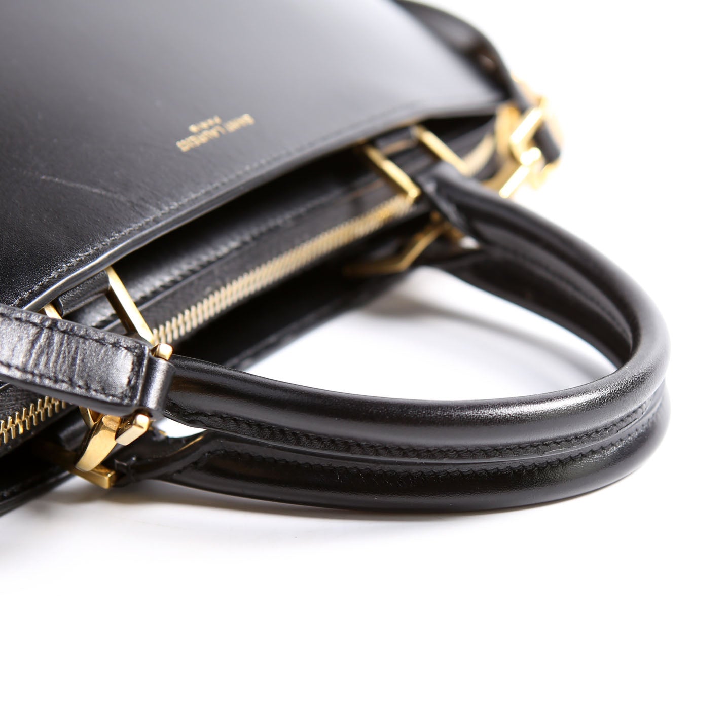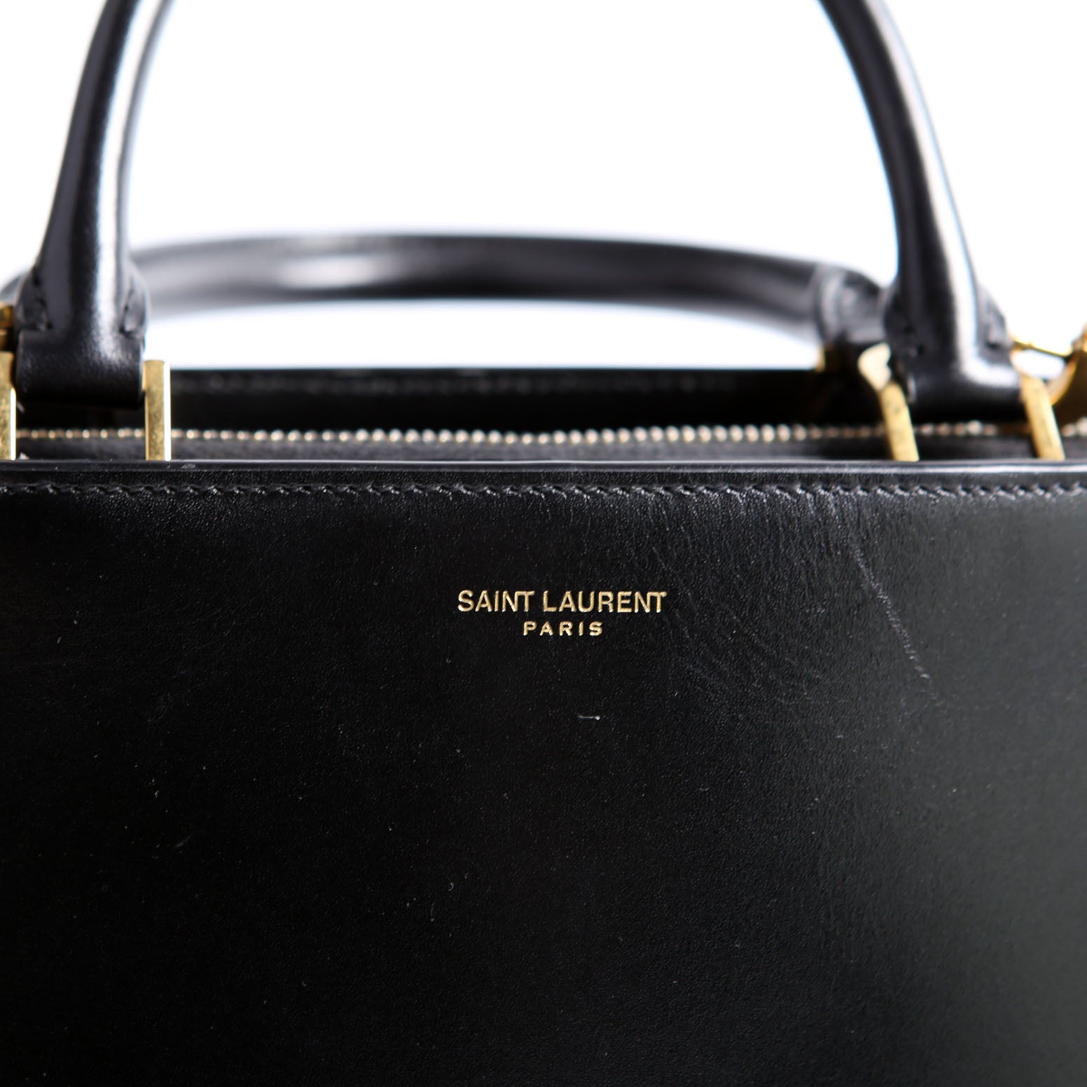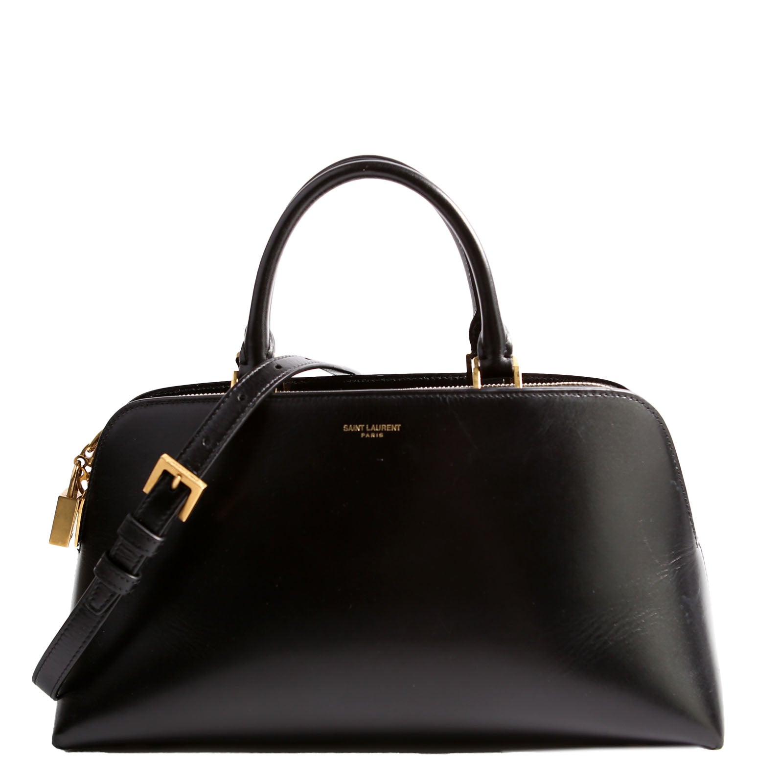 This pre-owned Saint Laurent Sac De Jour Small Duffle is guaranteed 100% authentic. The exterior is in the classic Saint Laurent leather.