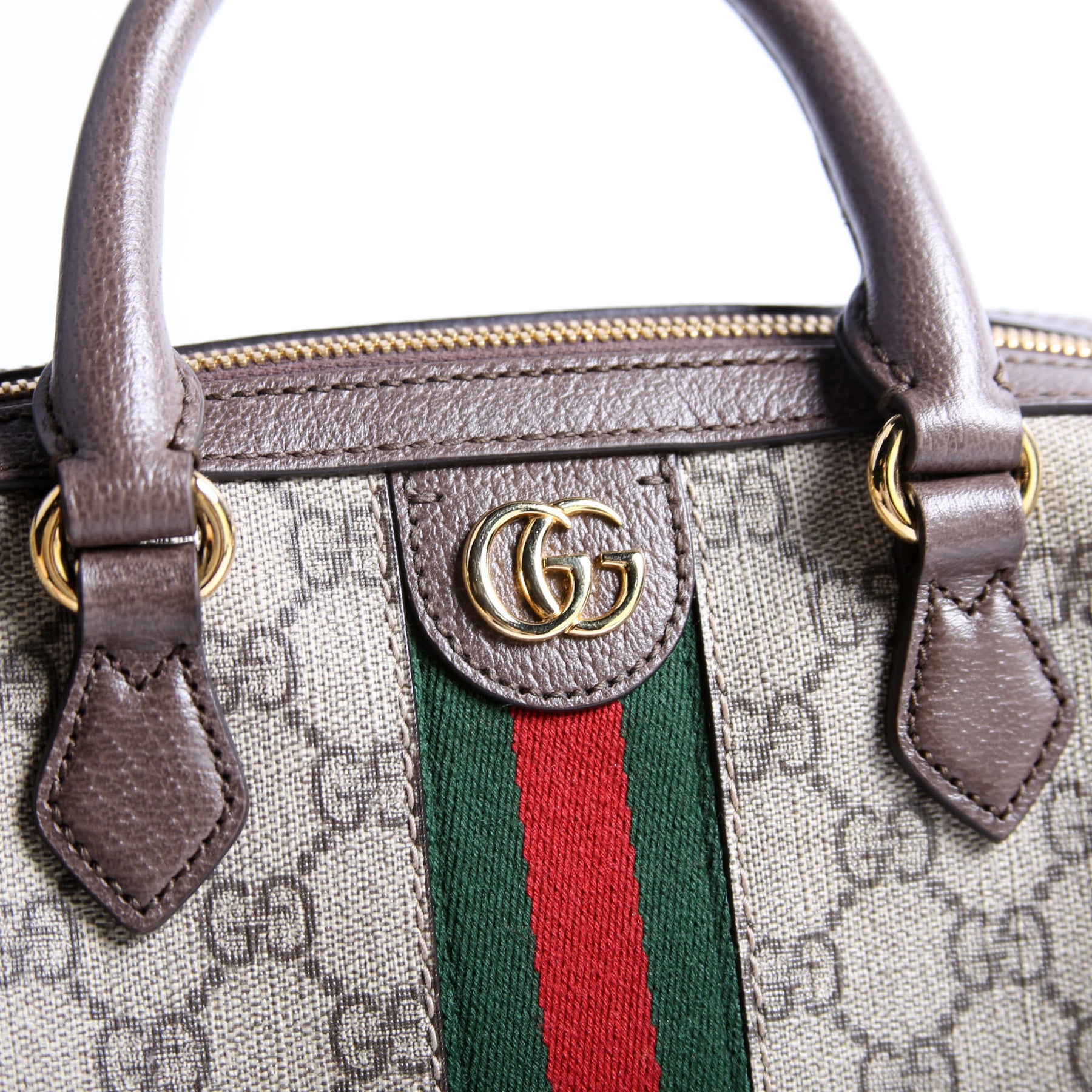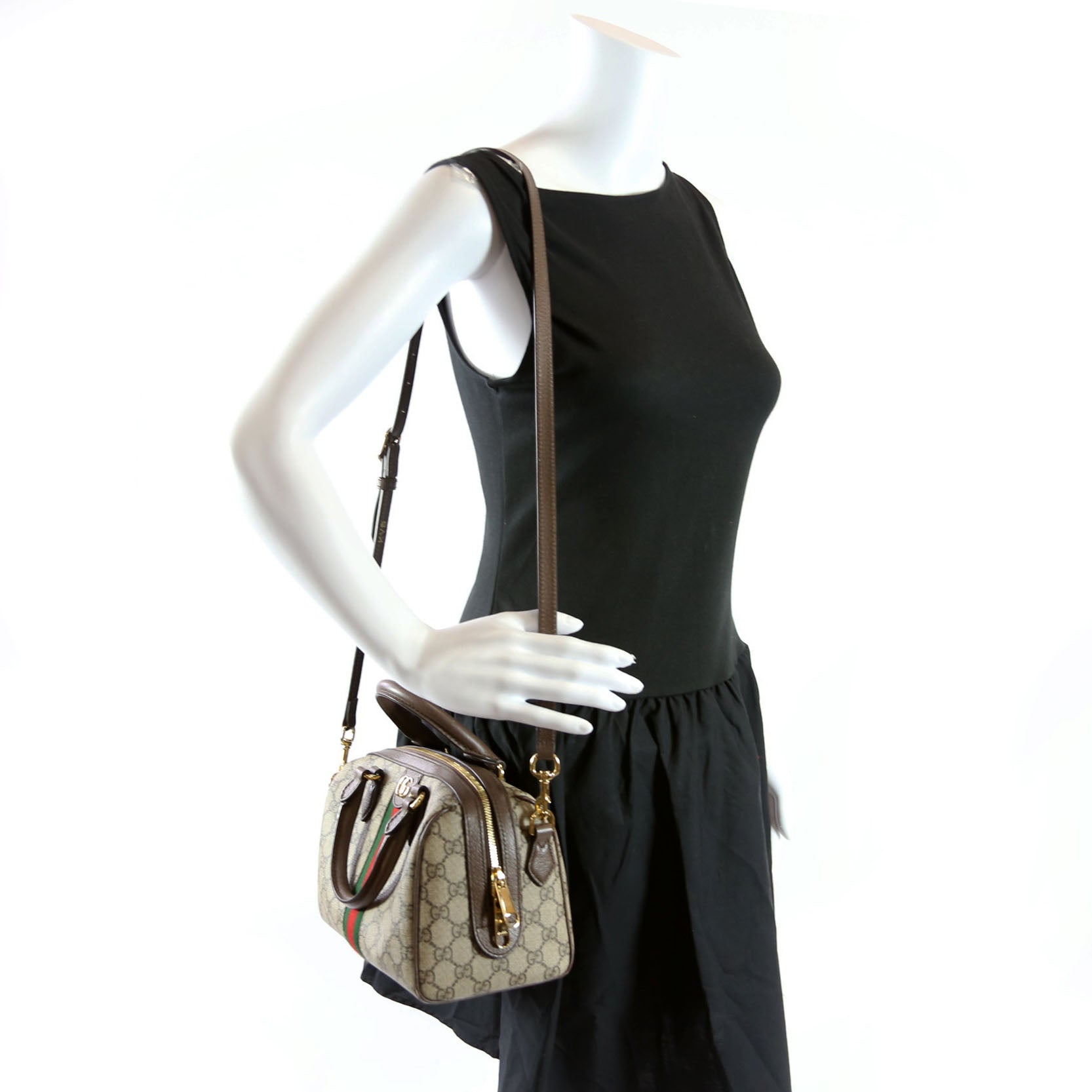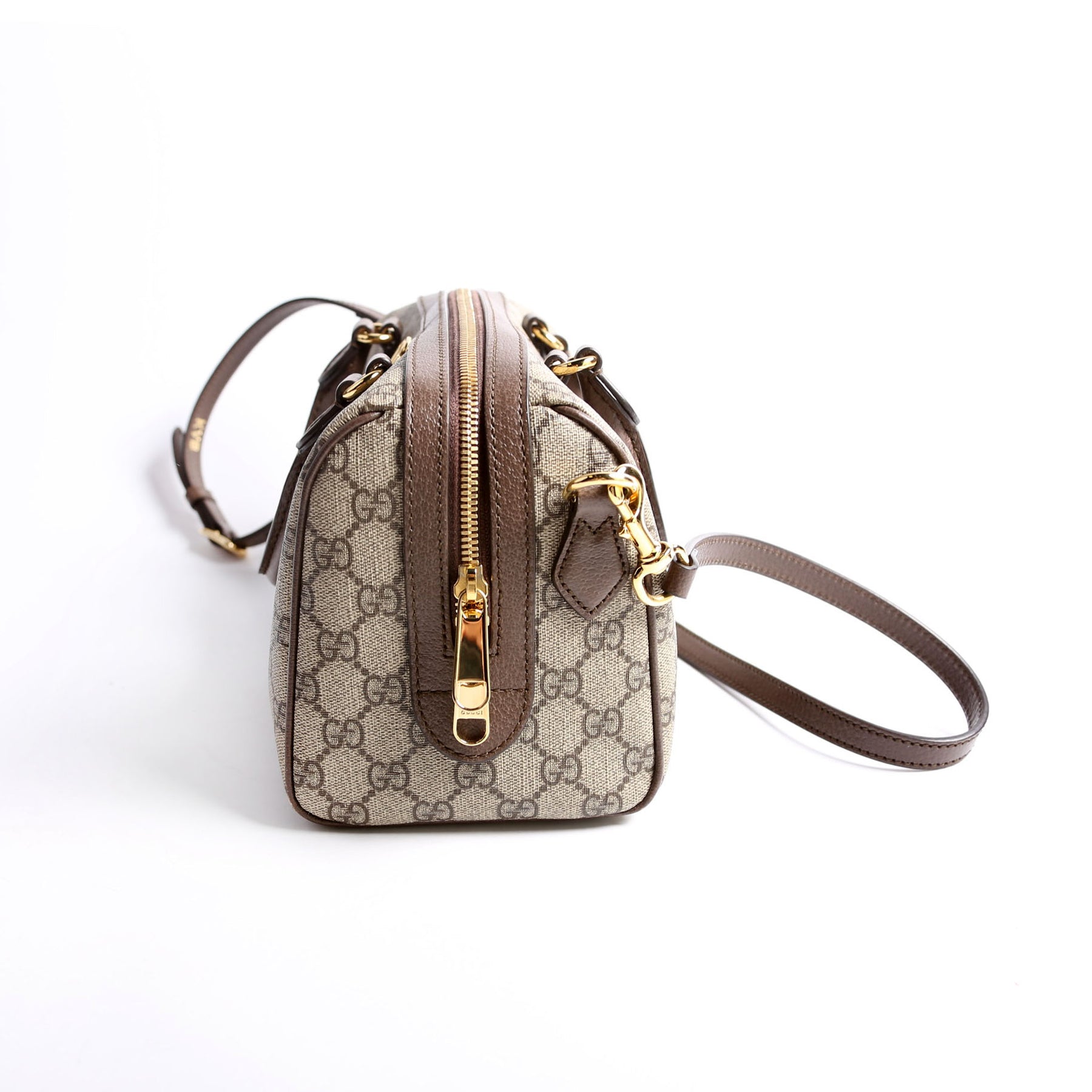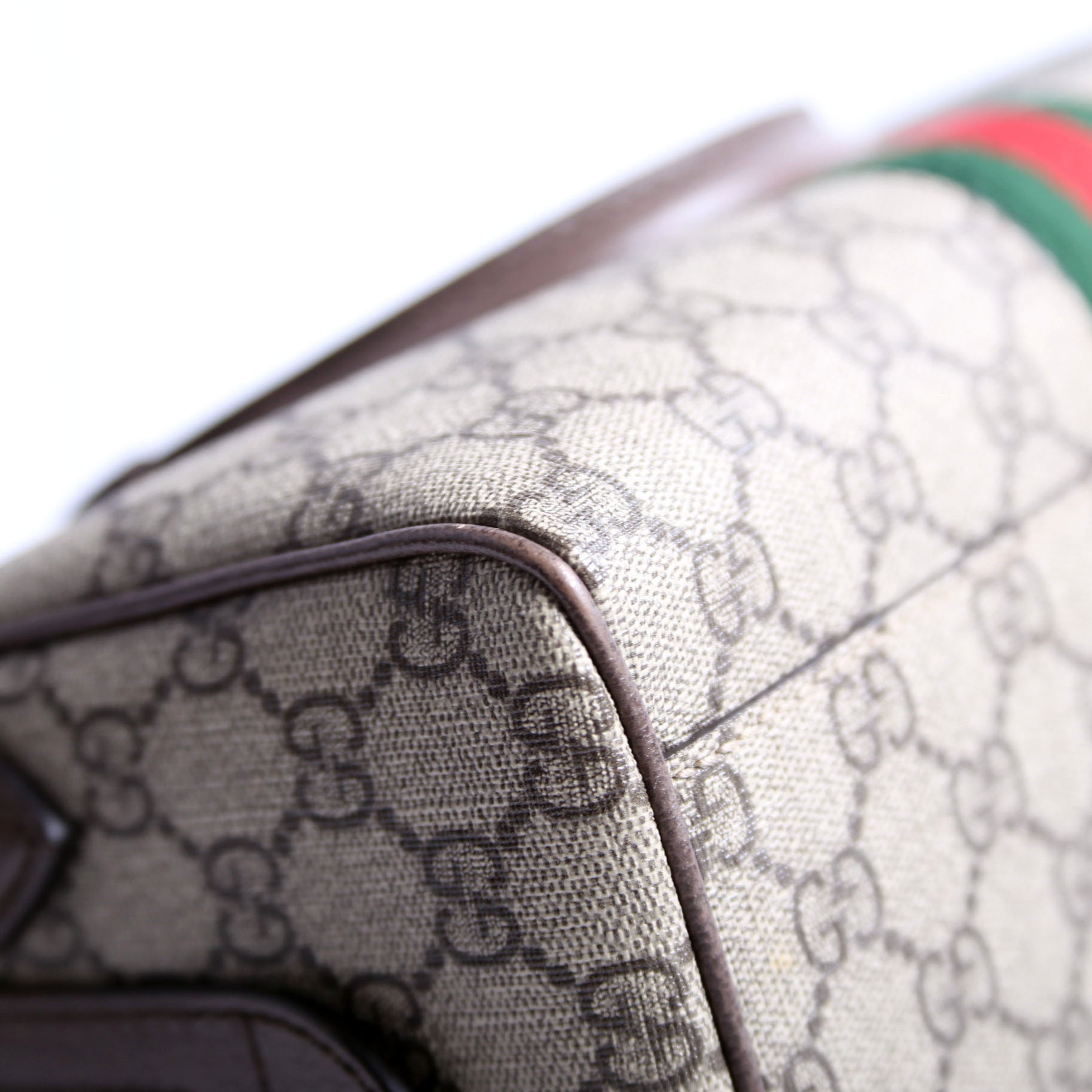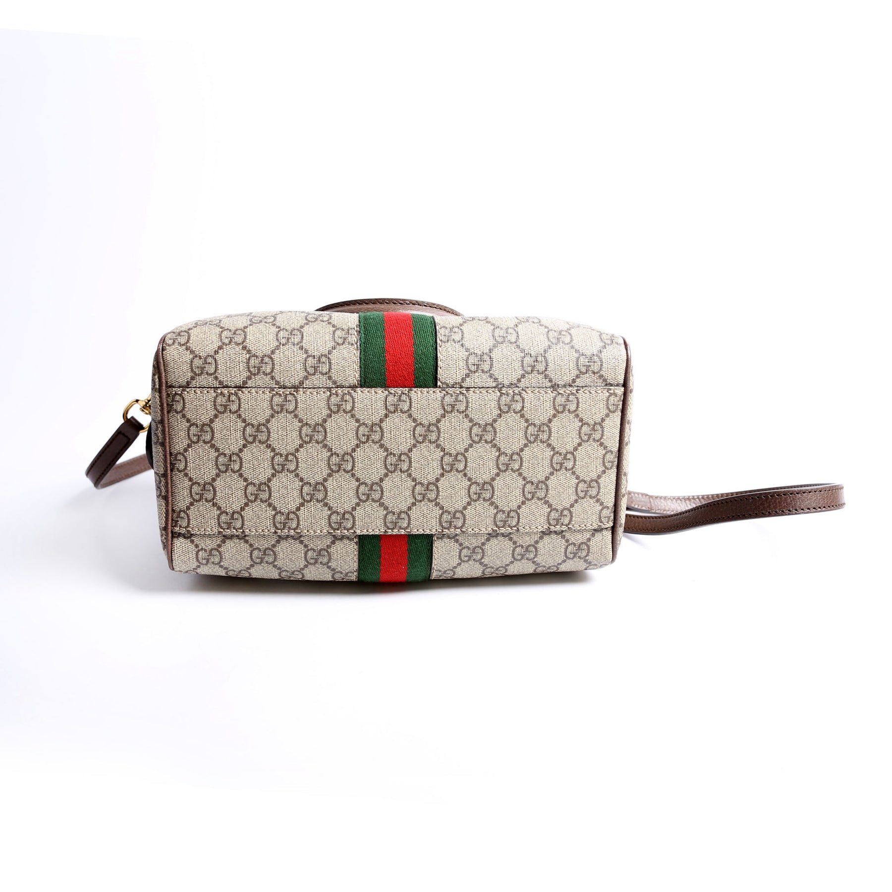 This pre-owned Gucci GG Supreme Small Ophidia Boston is guaranteed 100% authentic. The exterior is in the classic Gucci GG Supreme coated canvas.