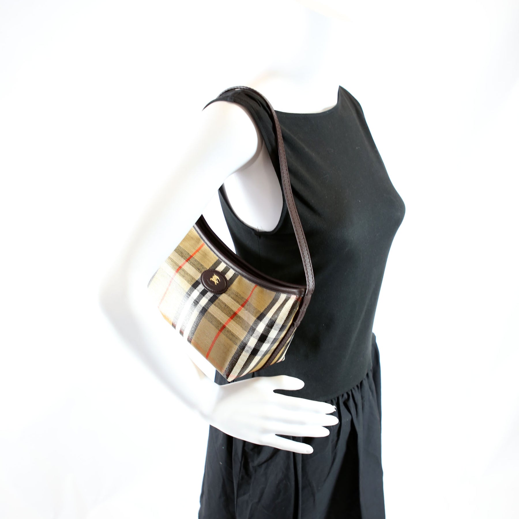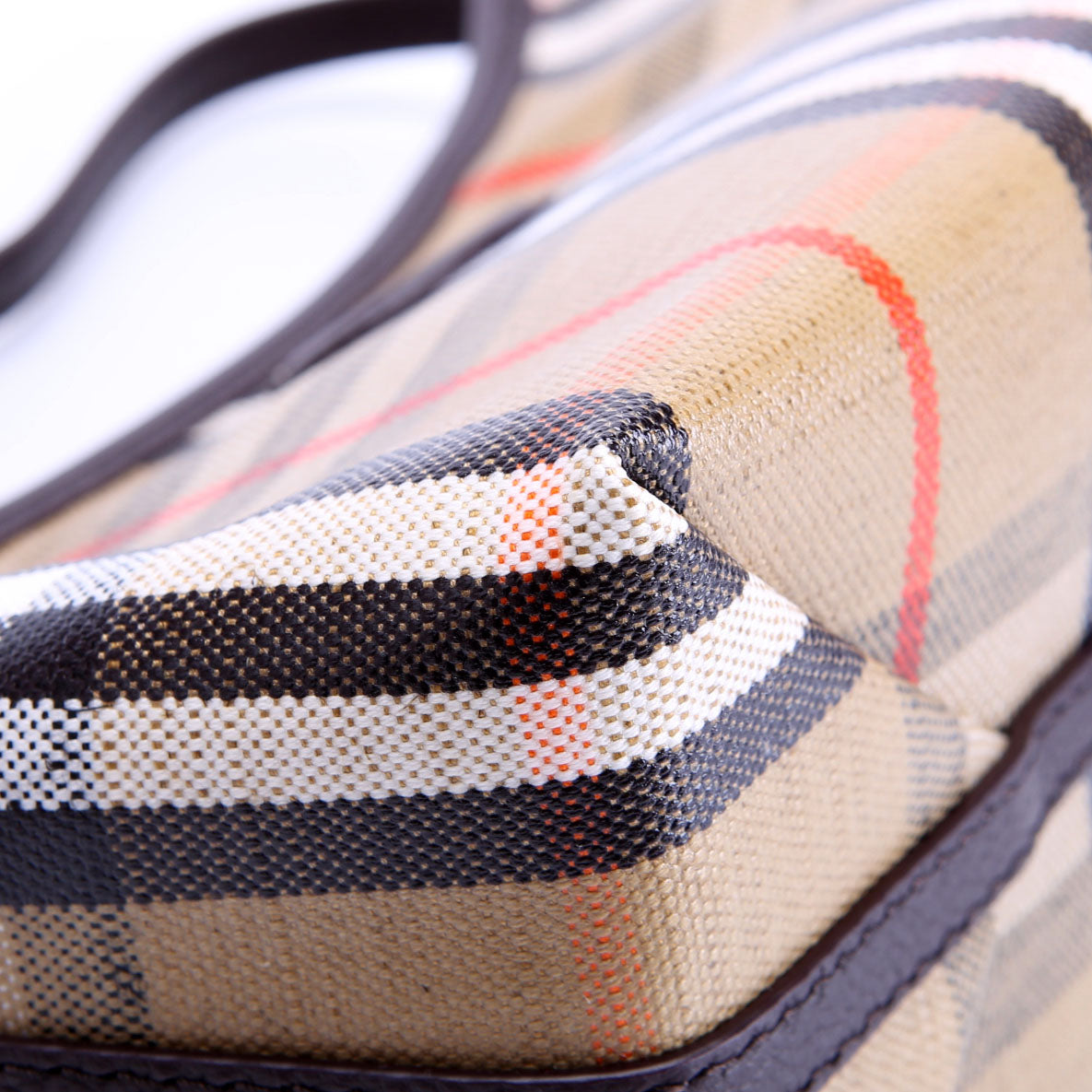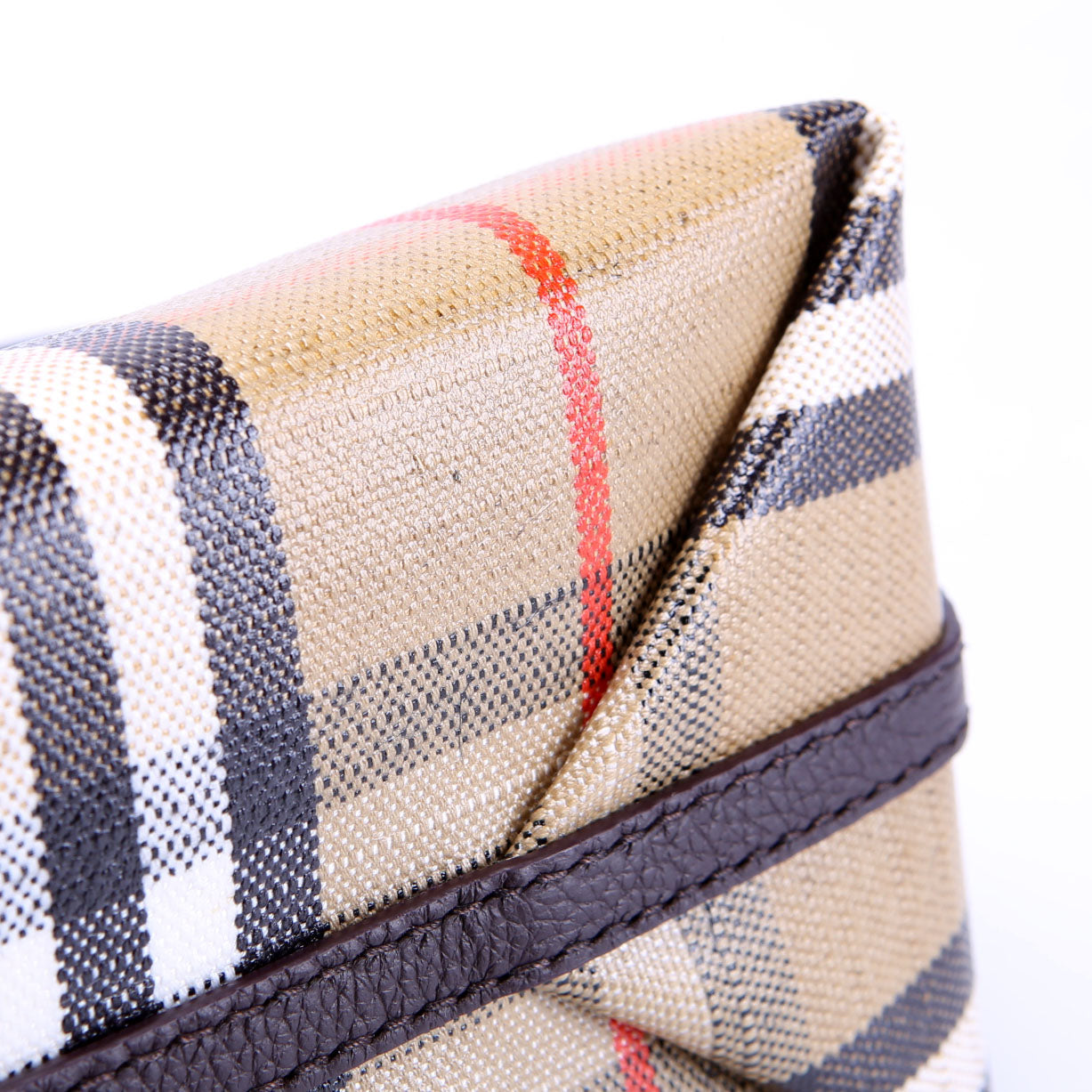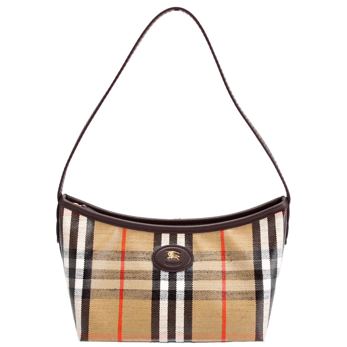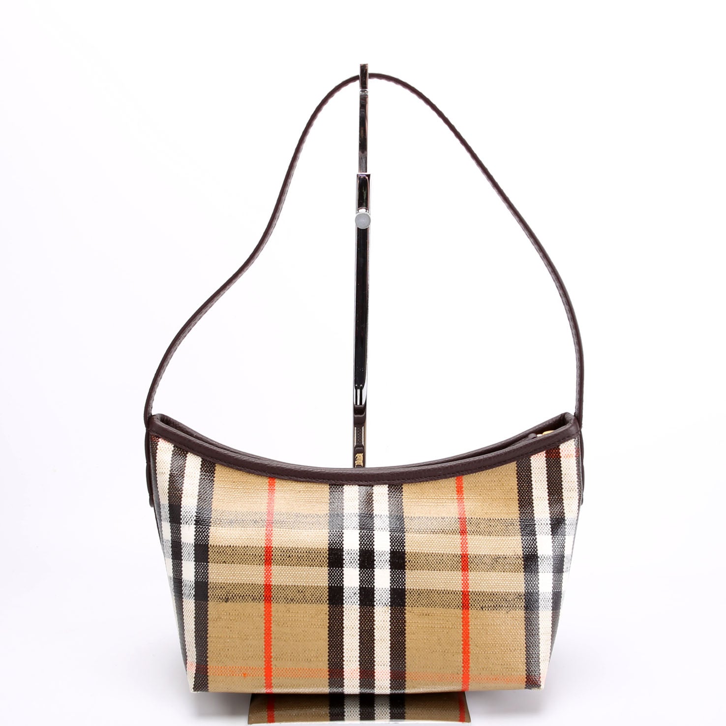 This pre-owned Burberry Mini Check Highlands Baguette is guaranteed 100% authentic.
