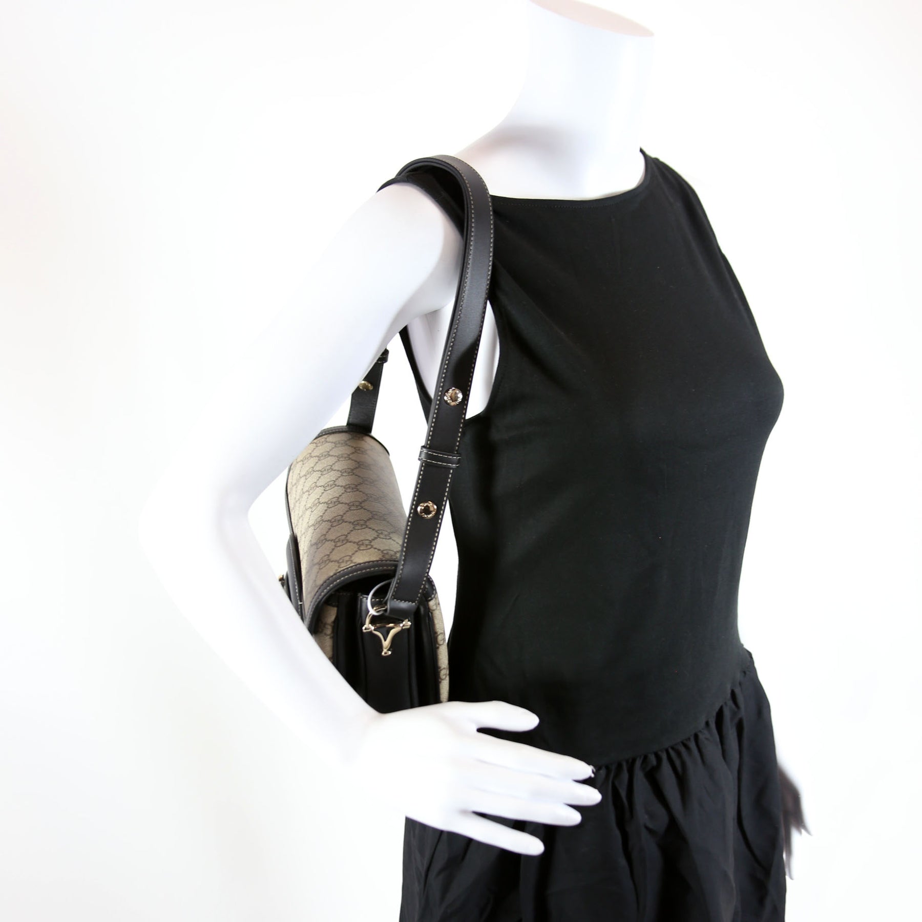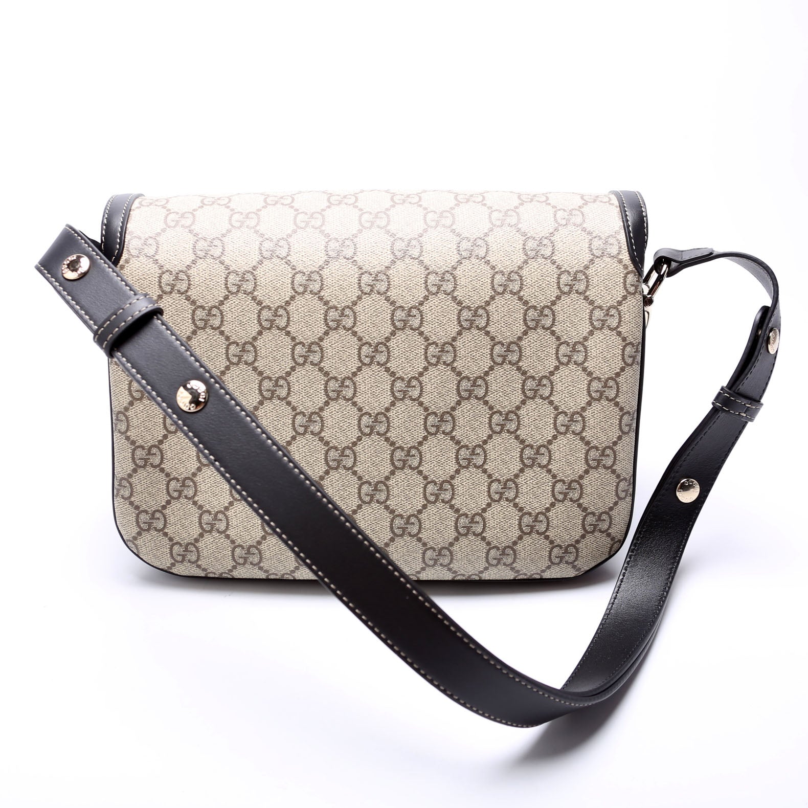 This pre-owned Gucci GG Supreme 1955 Horsebit Soft Medium Shoulder Bag is guaranteed 100% authentic.