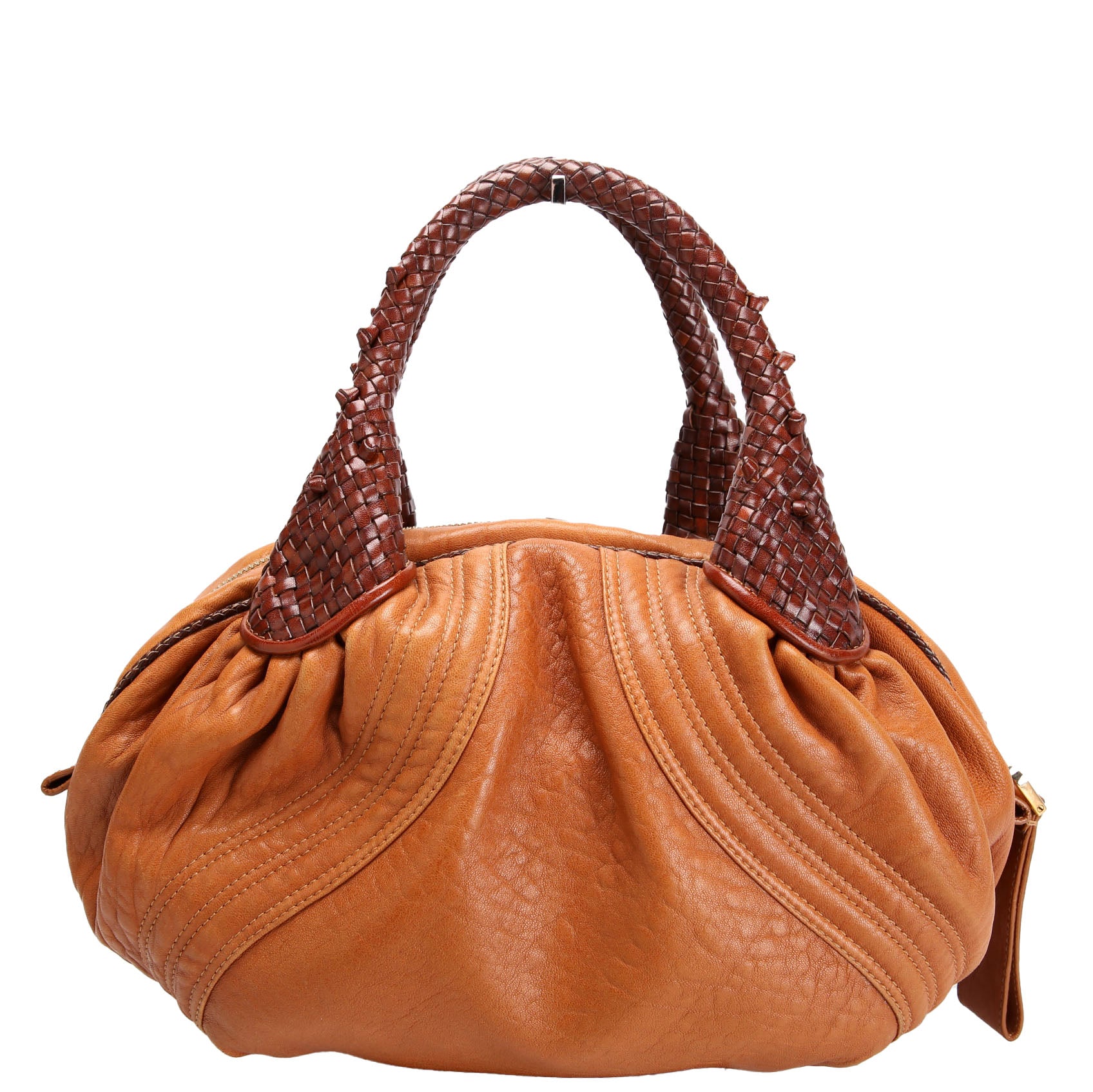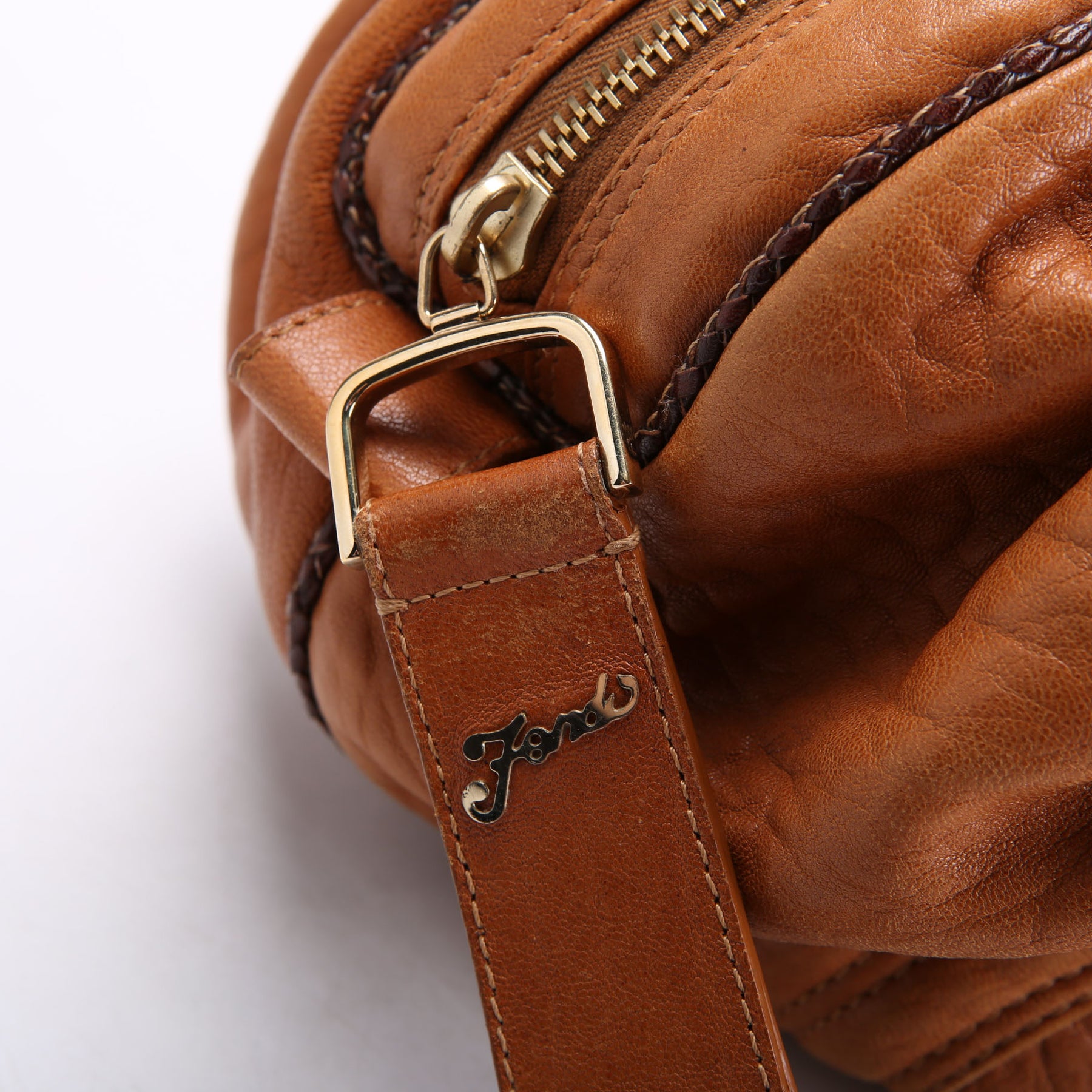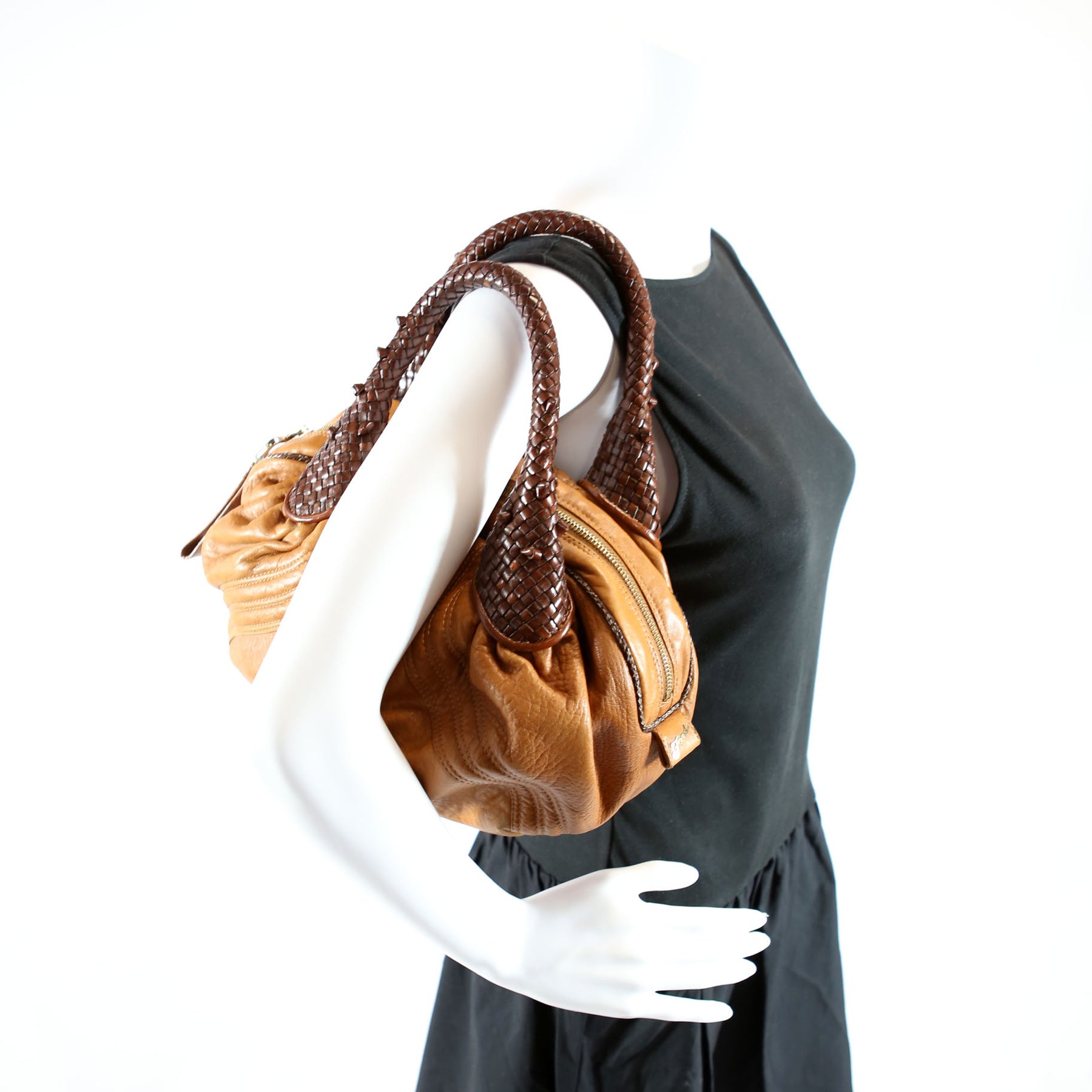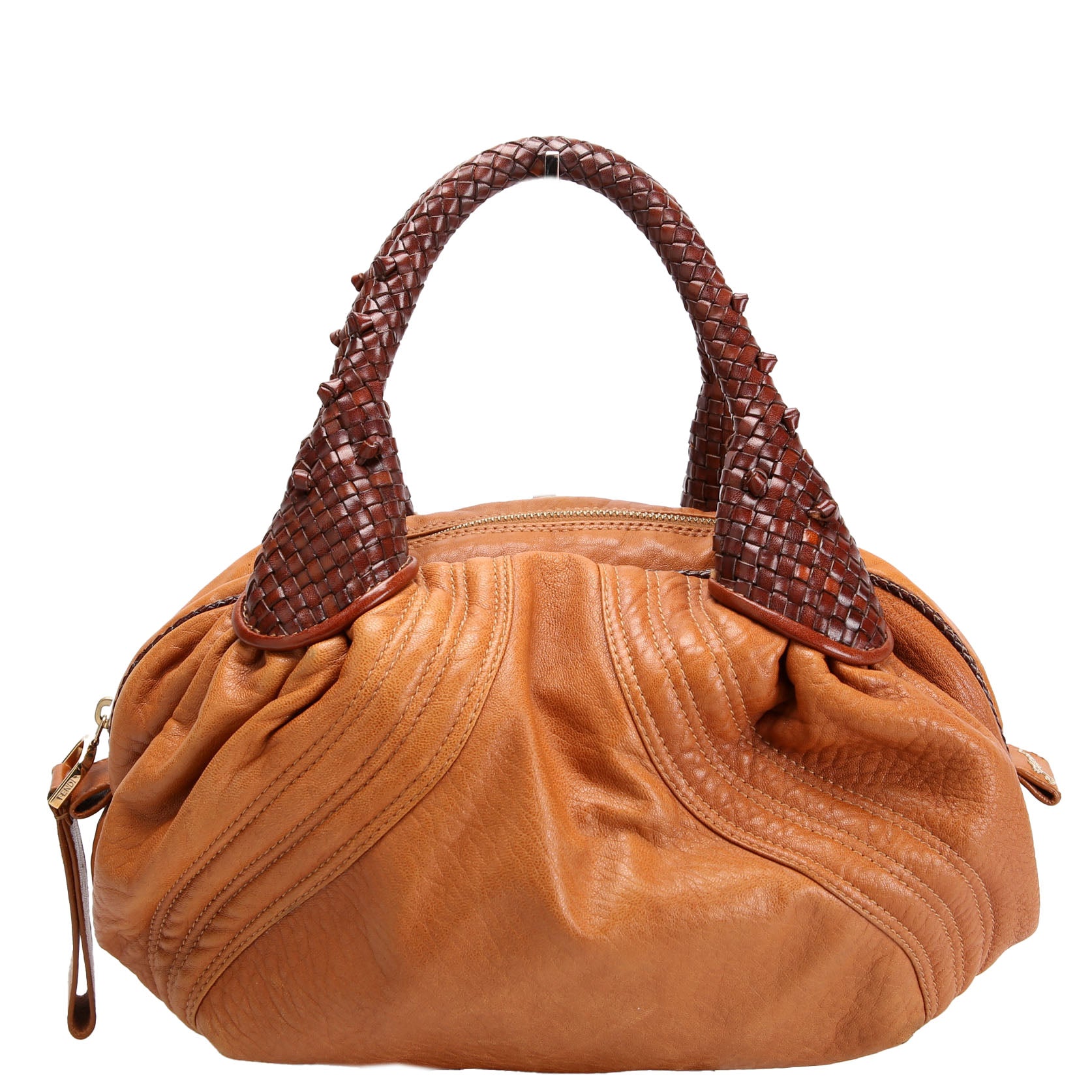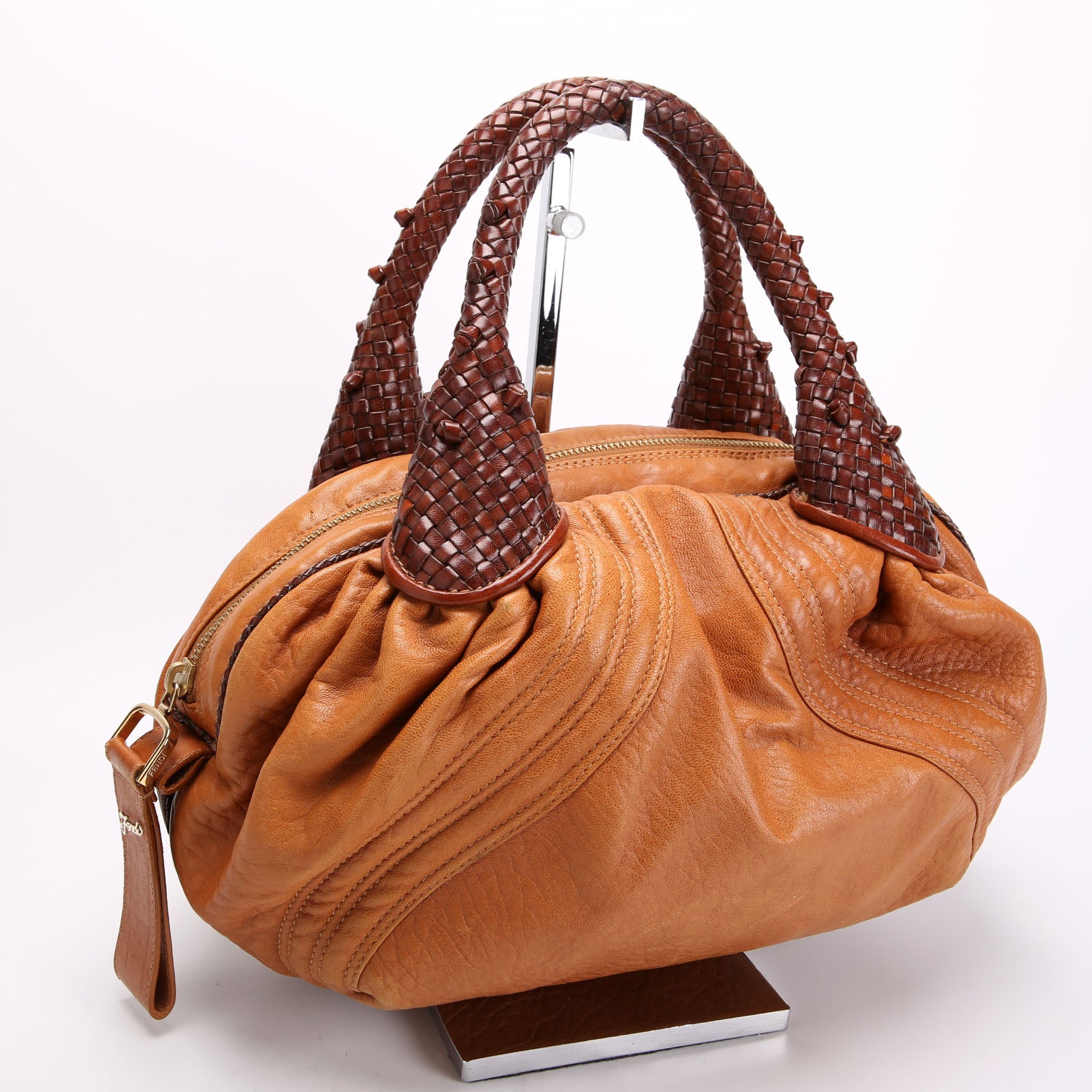 This pre-owned Fendi Baby Spy Bag is guaranteed 100% authentic. The exterior is in the classic Fendi Leather.