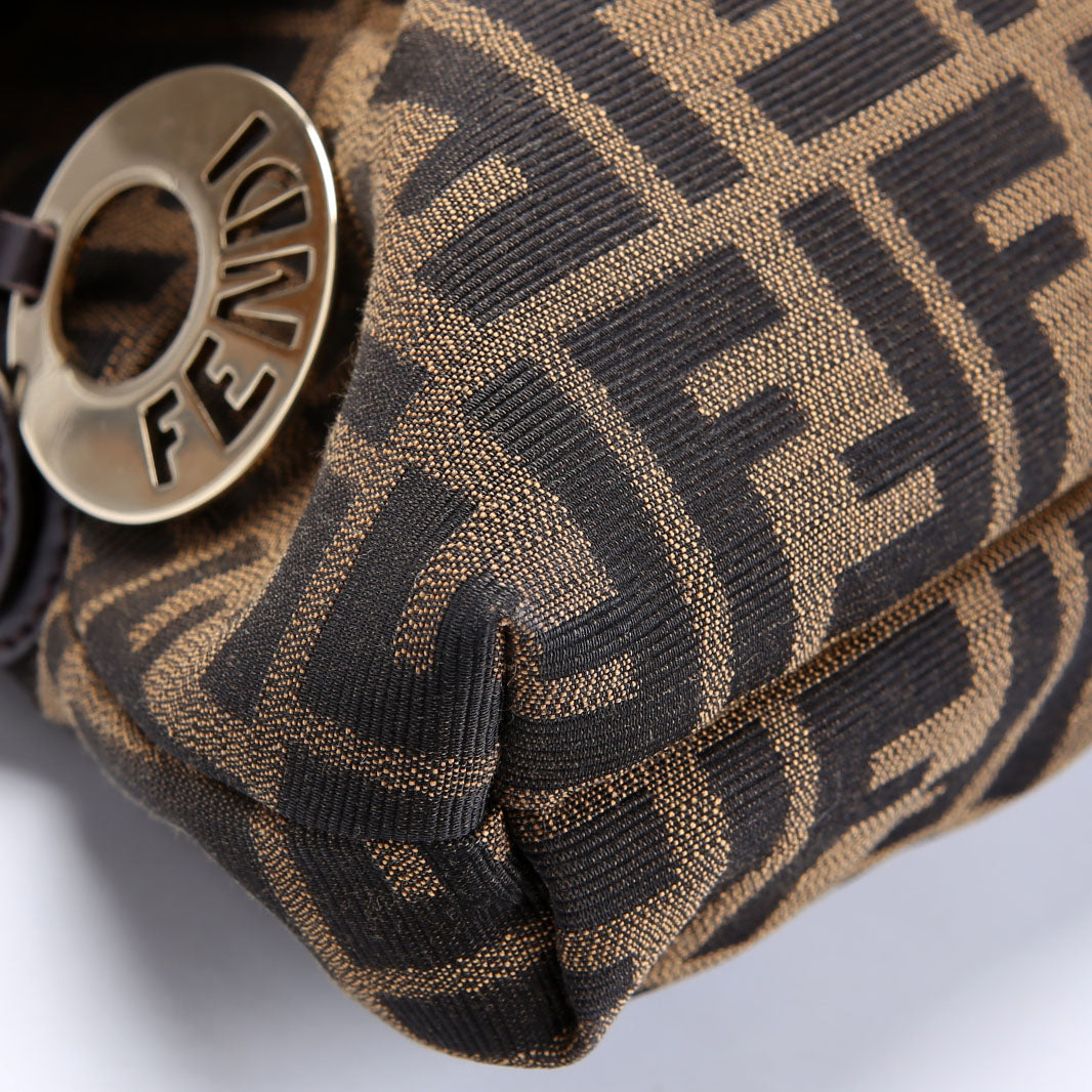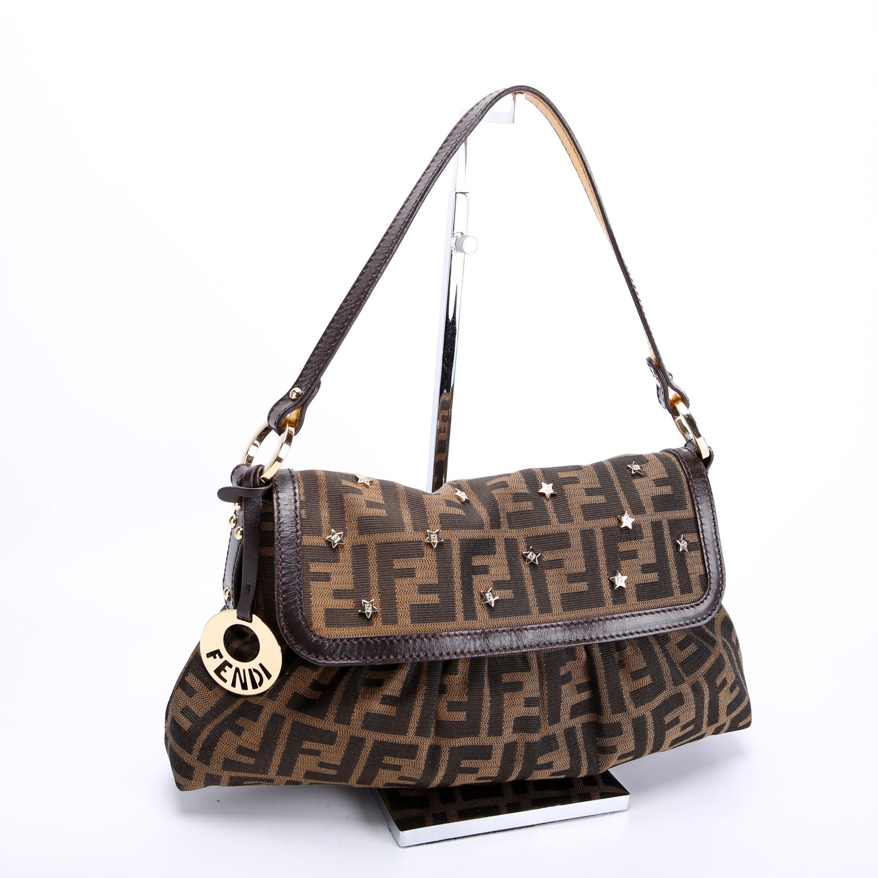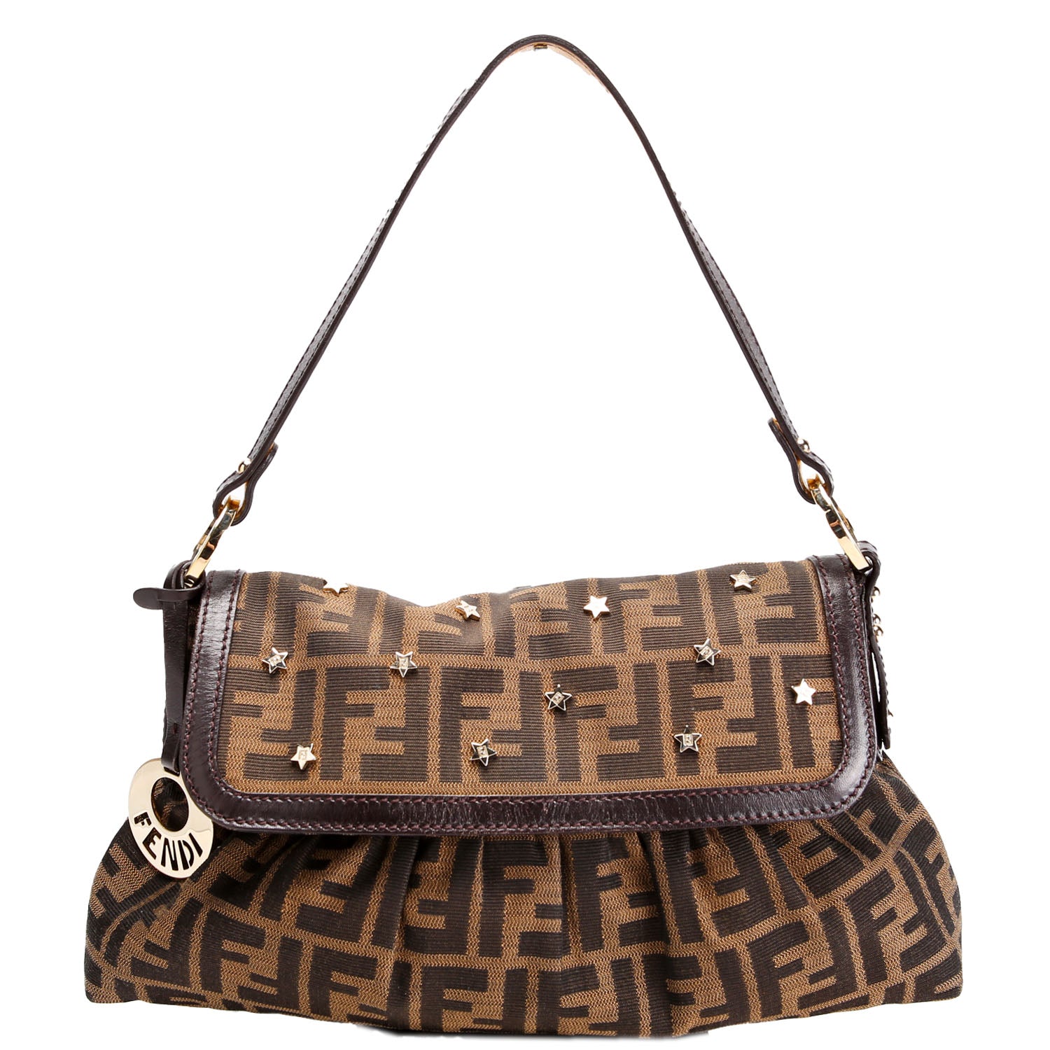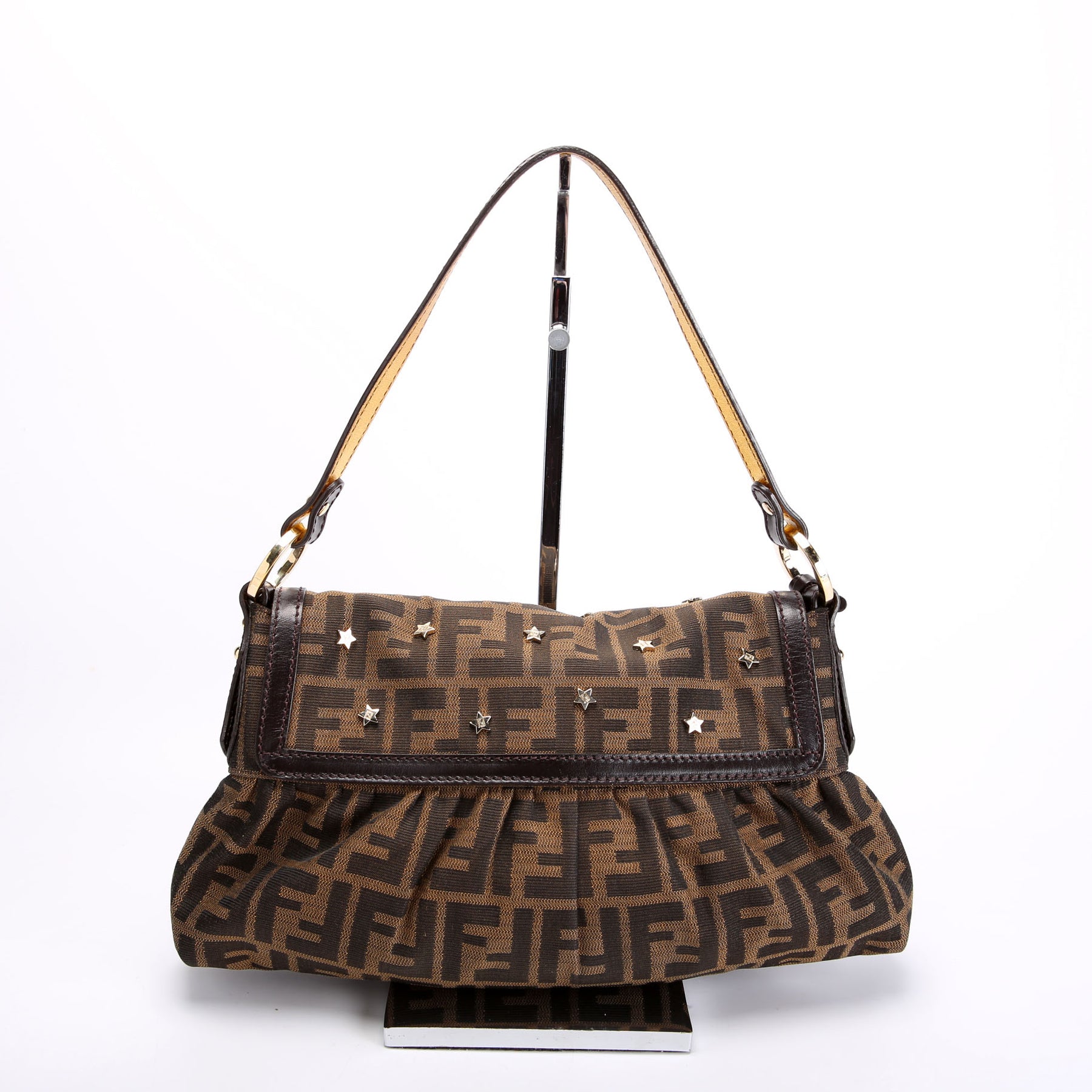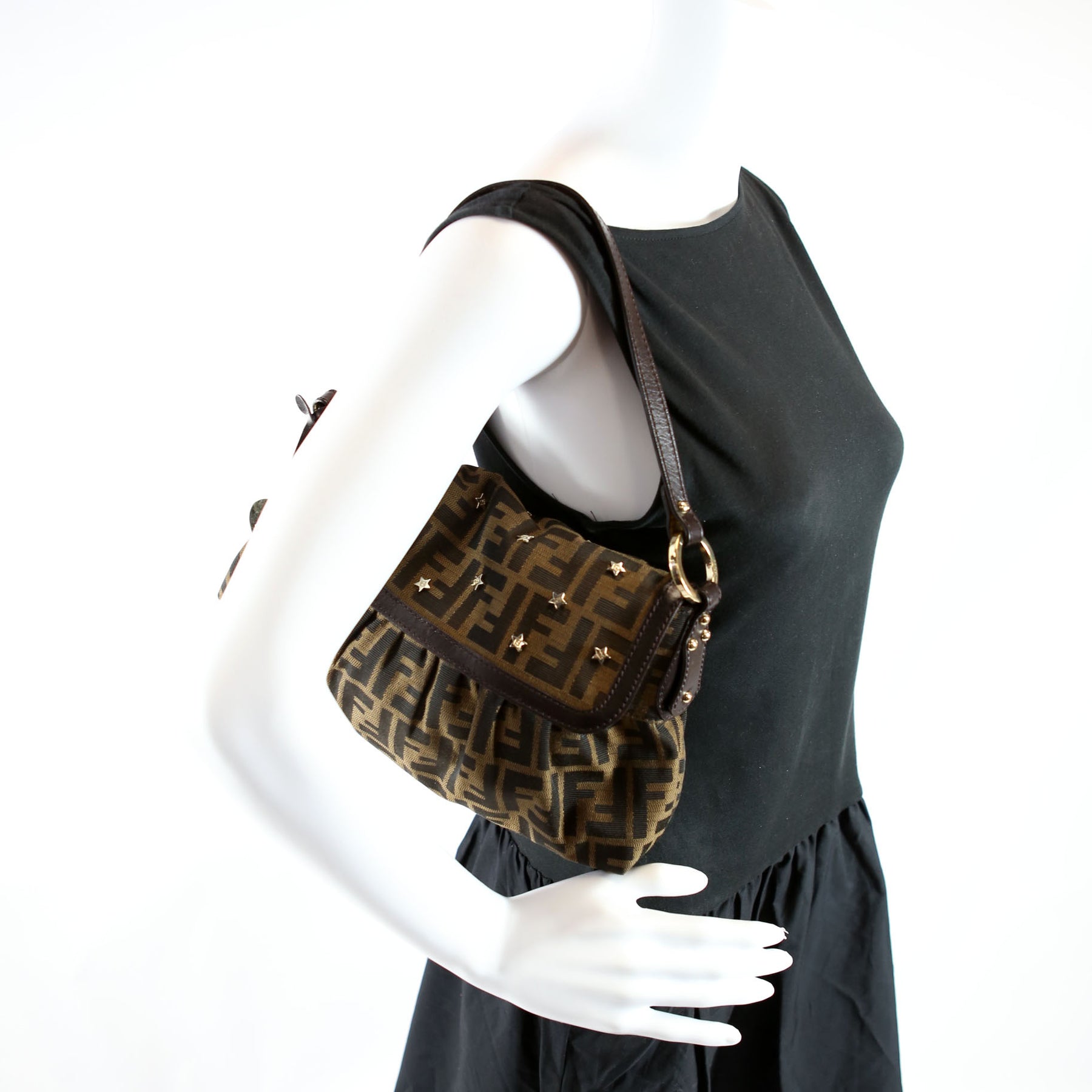 This pre-owned Fendi Zucca Star Stud Chef Bag is guaranteed 100% authentic. The exterior is in the classic Fendi Zucca FF Canvas.