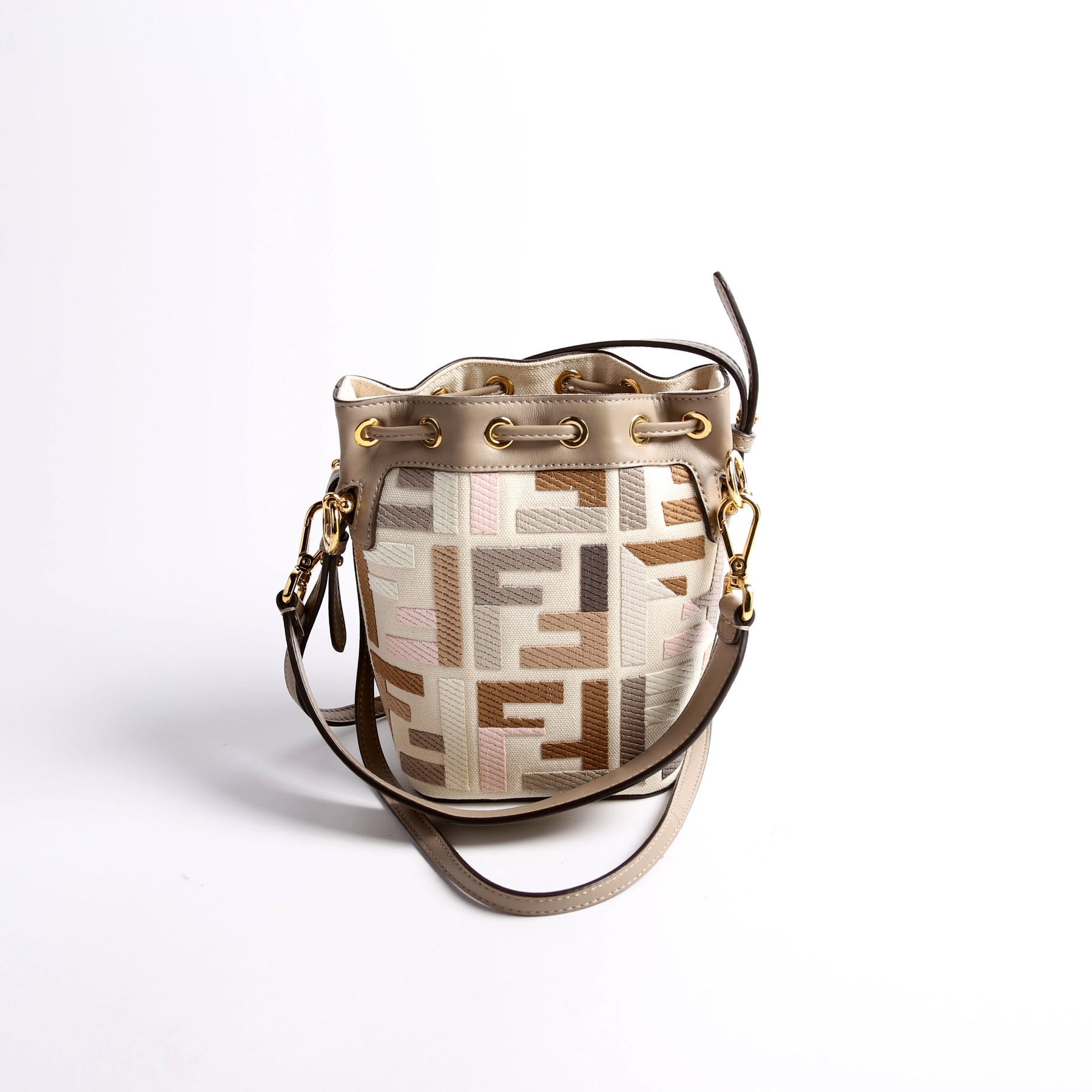 This pre-owned Fendi Mon Tresor Mini Bucket Leather Canvas FF is guaranteed 100% authentic.