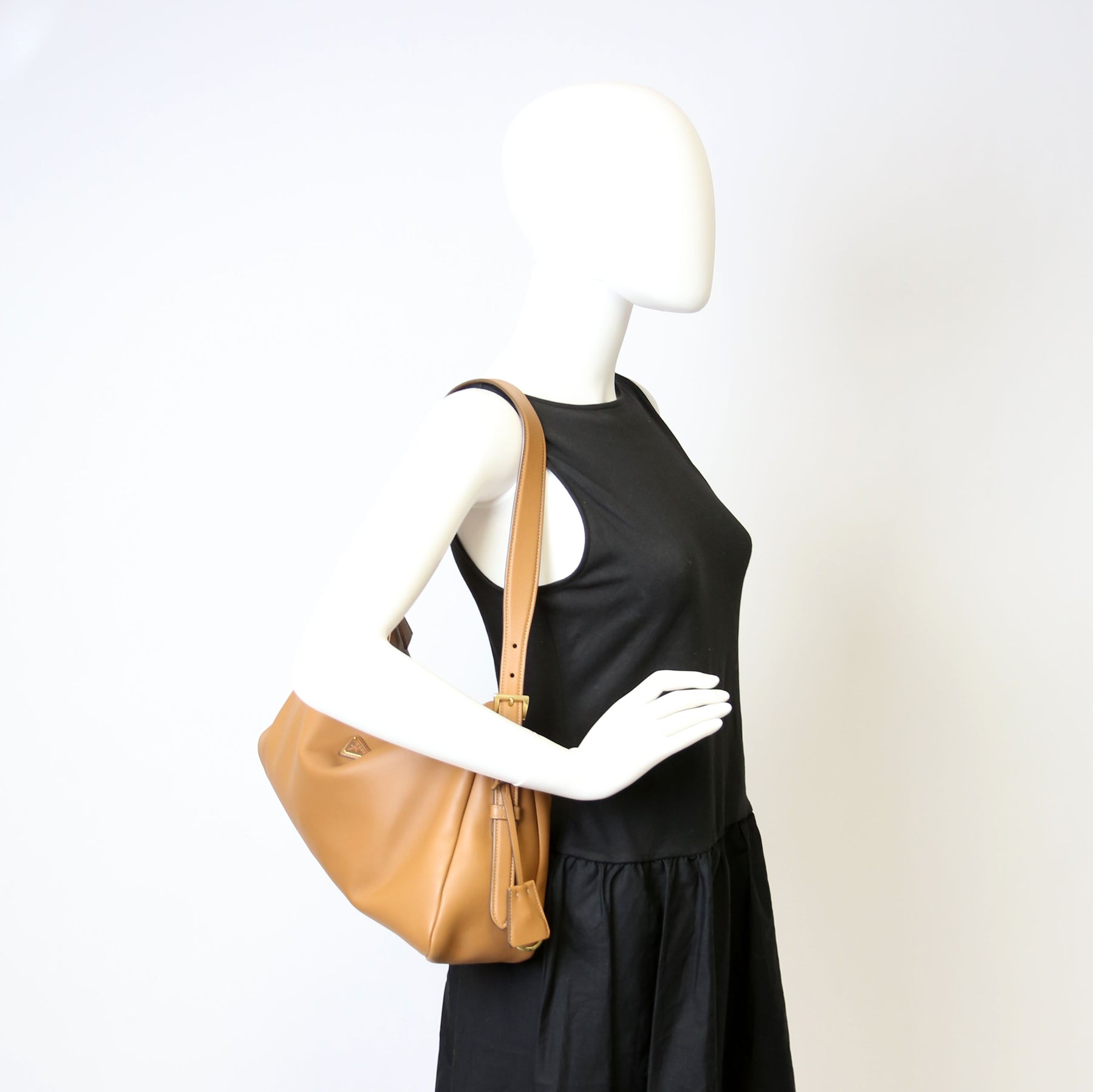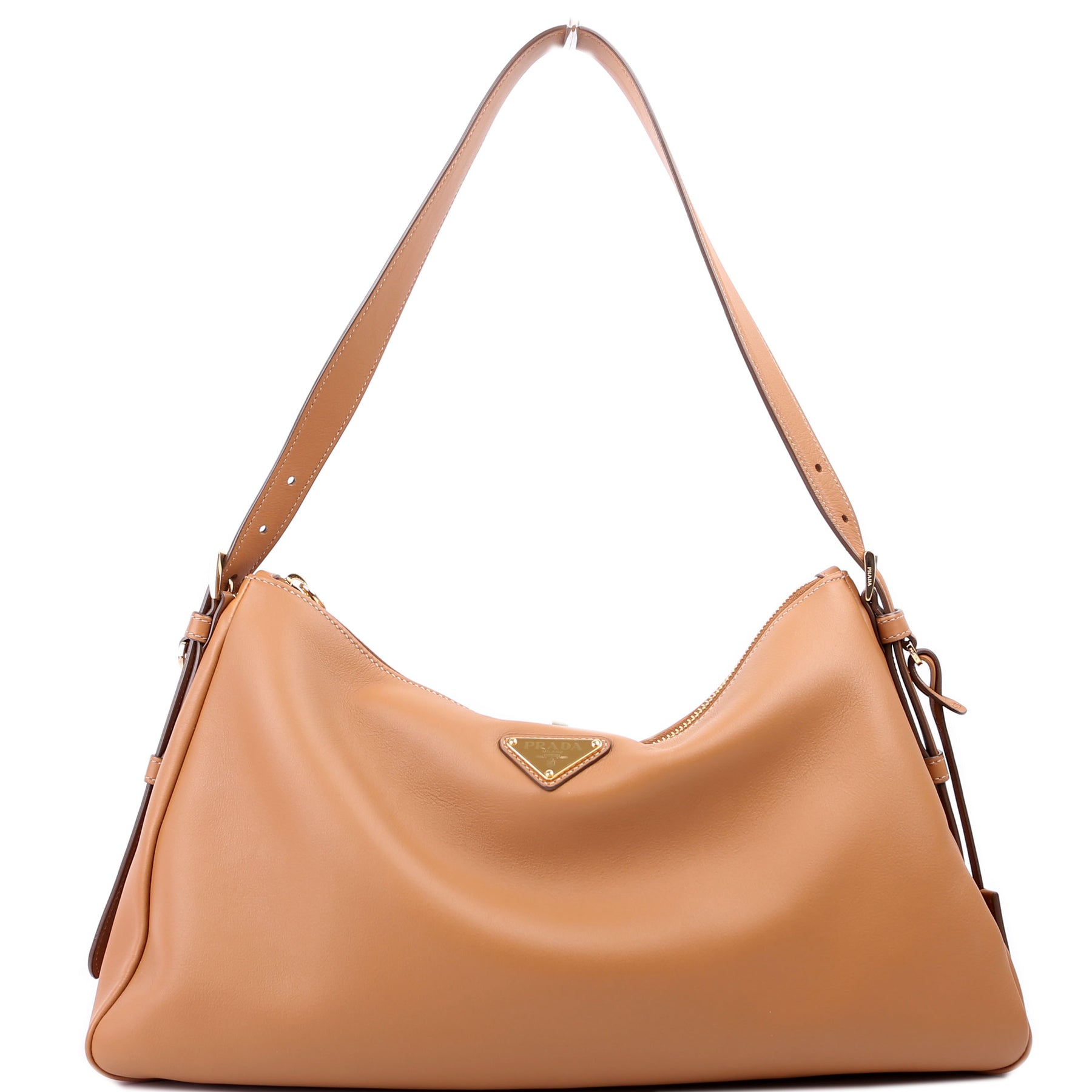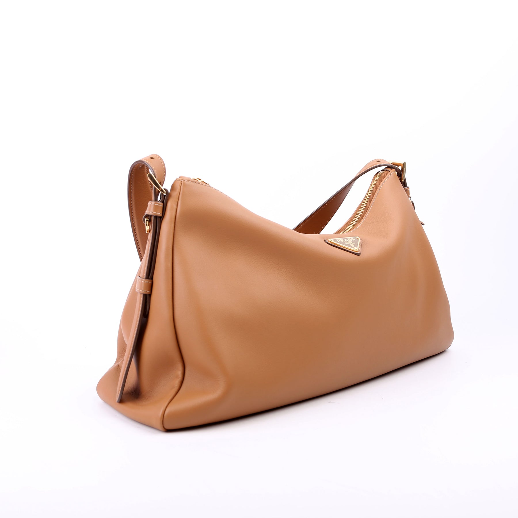 This pre-owned Prada Aimee Shoulder Bag is guaranteed 100% authentic. The exterior is in the classic Prada Soft Calfskin leather.