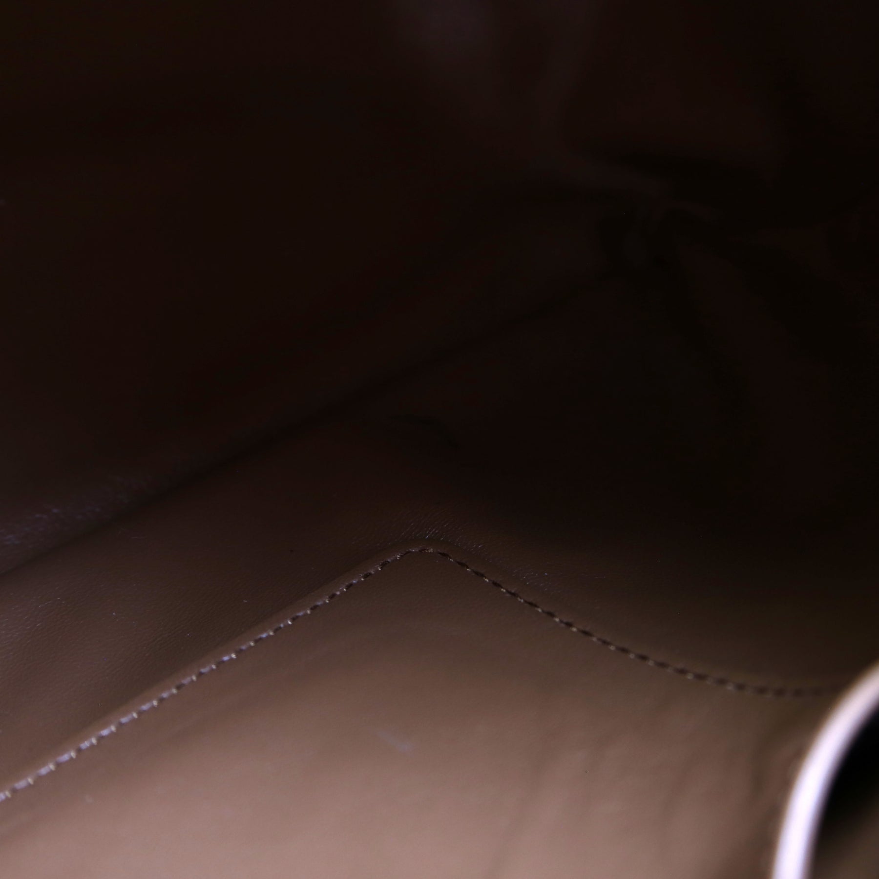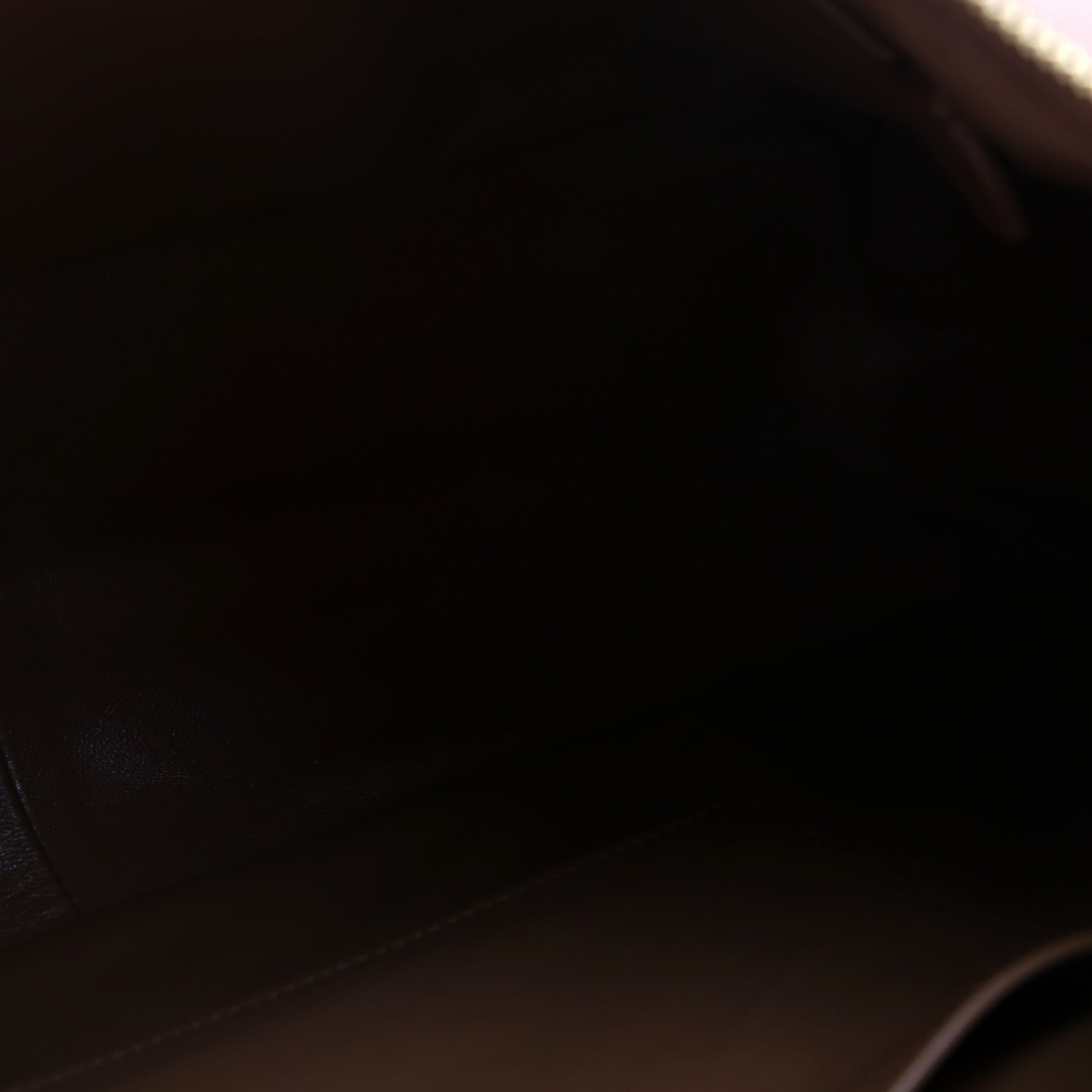 Interior: The interior leather has minor stains. It features one open pocket and one zip closure pocket.