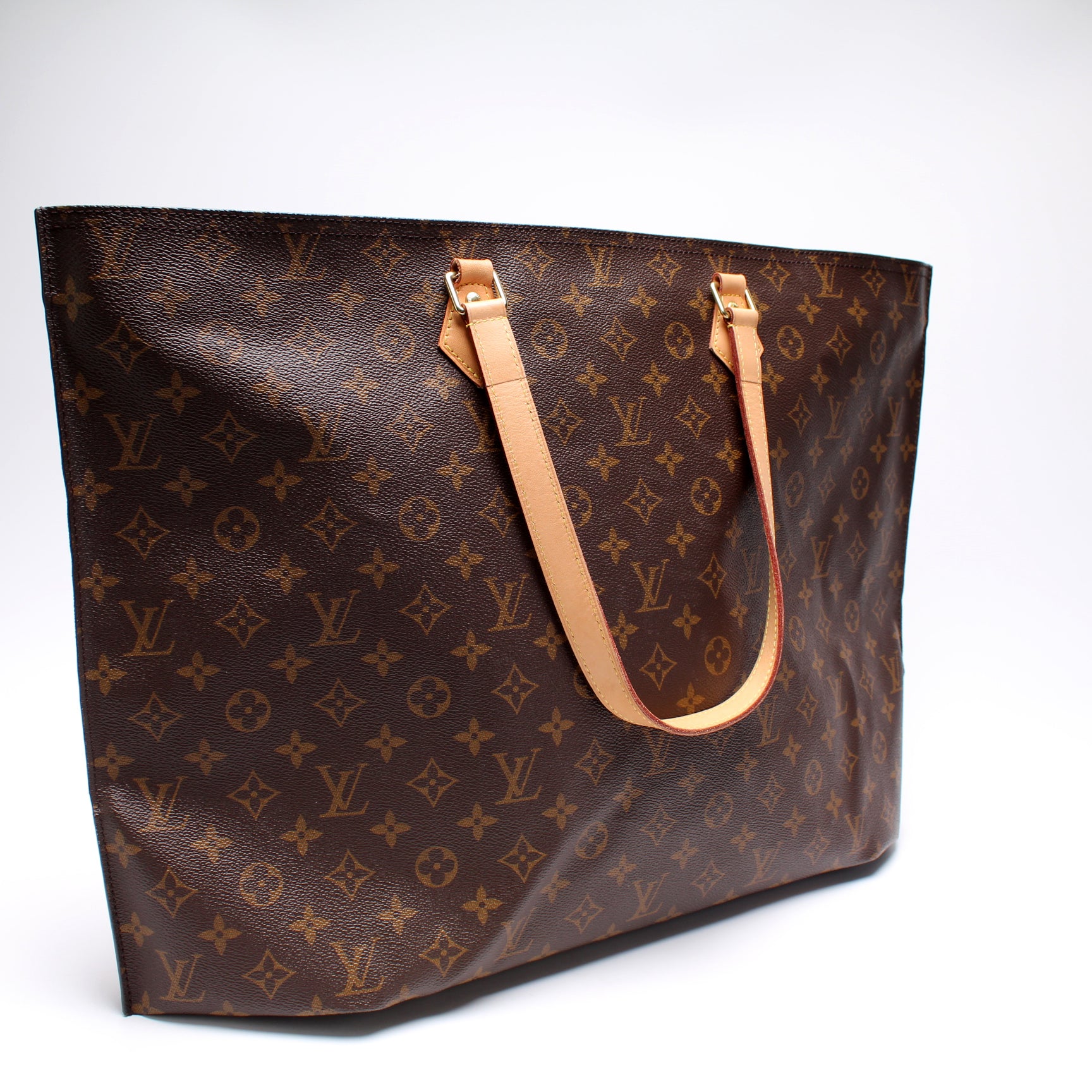 This pre-owned Louis Vuitton All-In MM is guaranteed 100% authentic. The exterior is in the classic Louis Vuitton Monogram coated canvas.