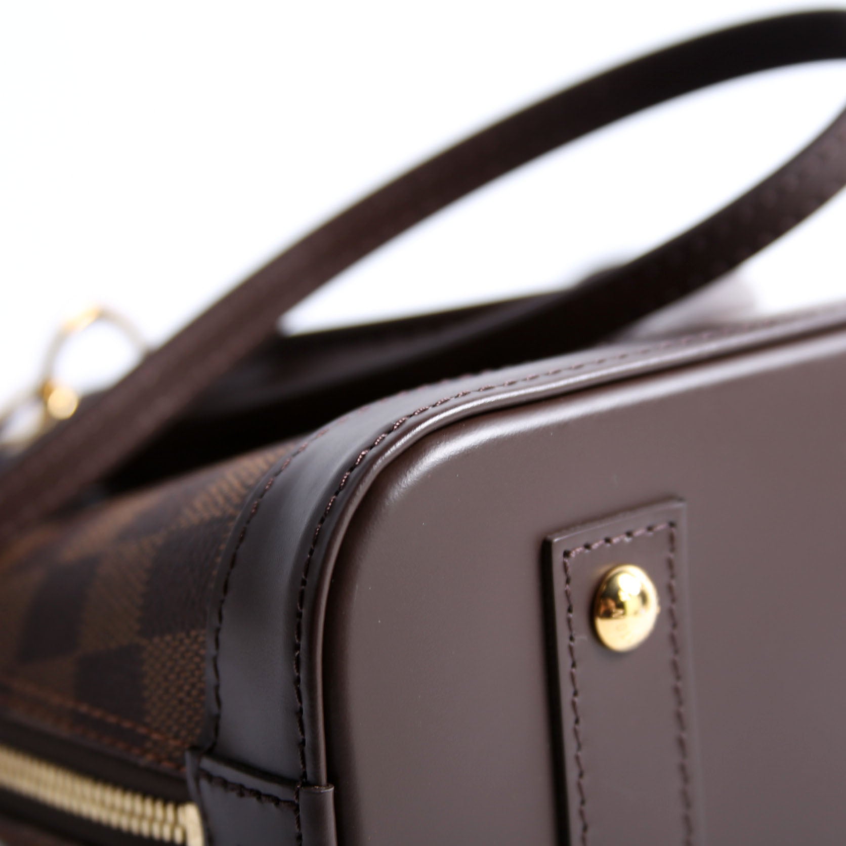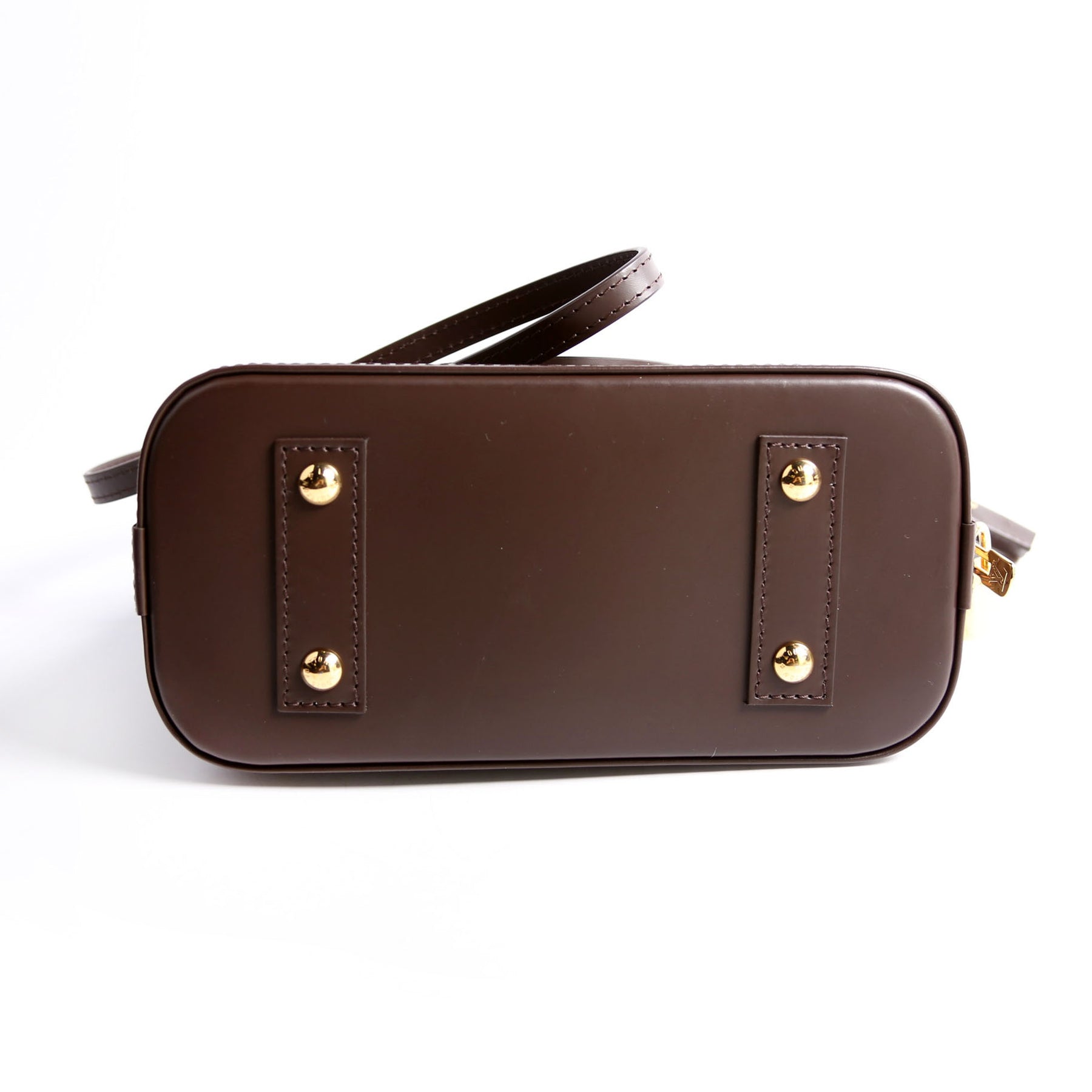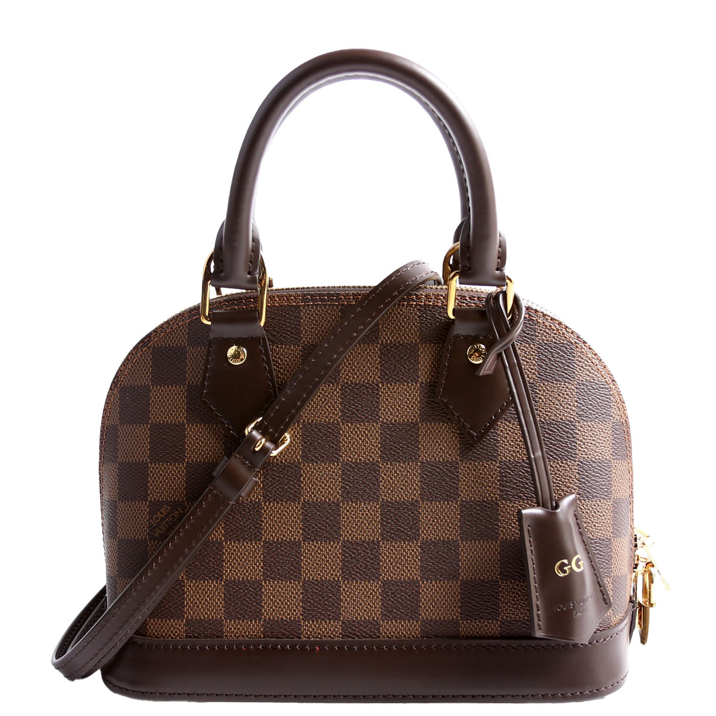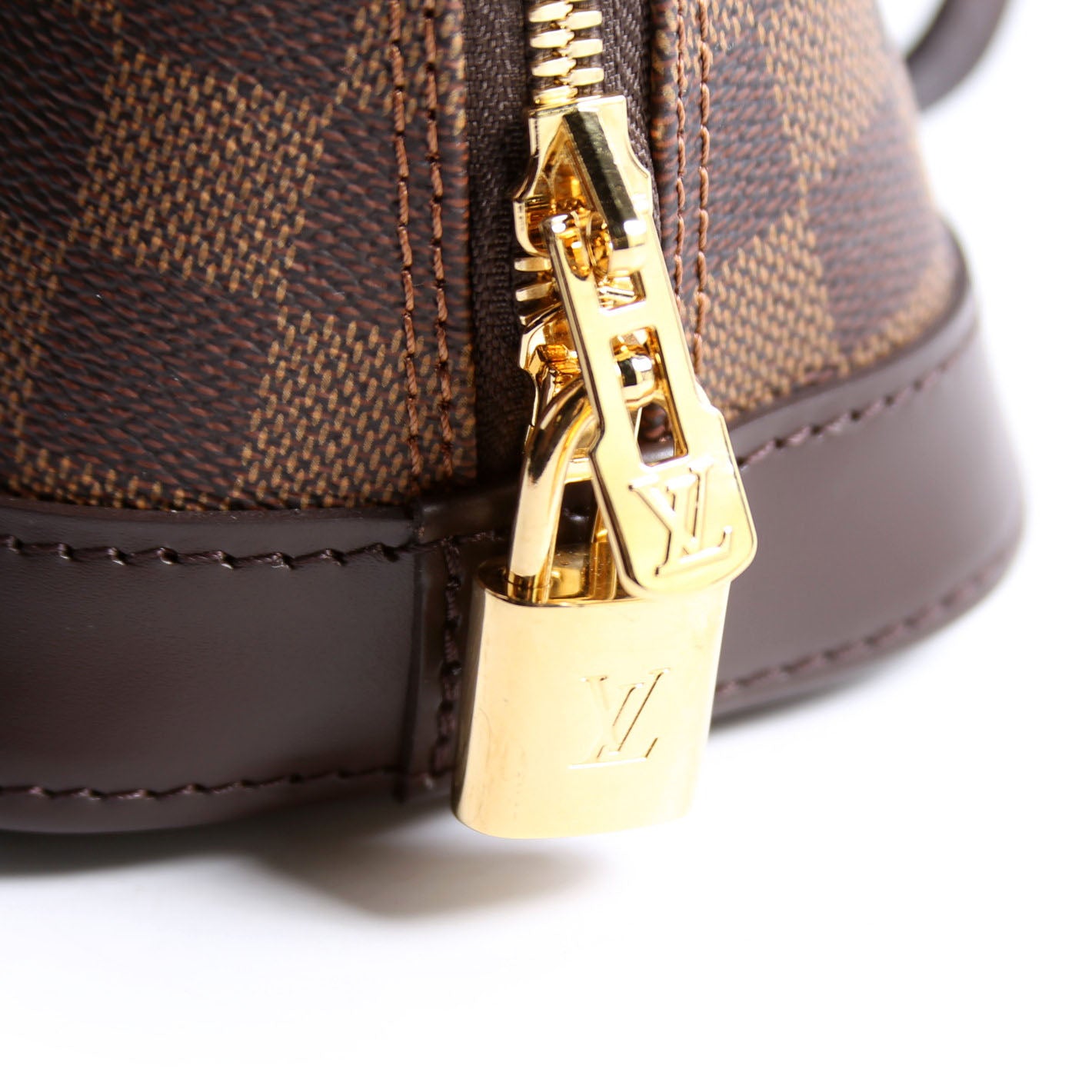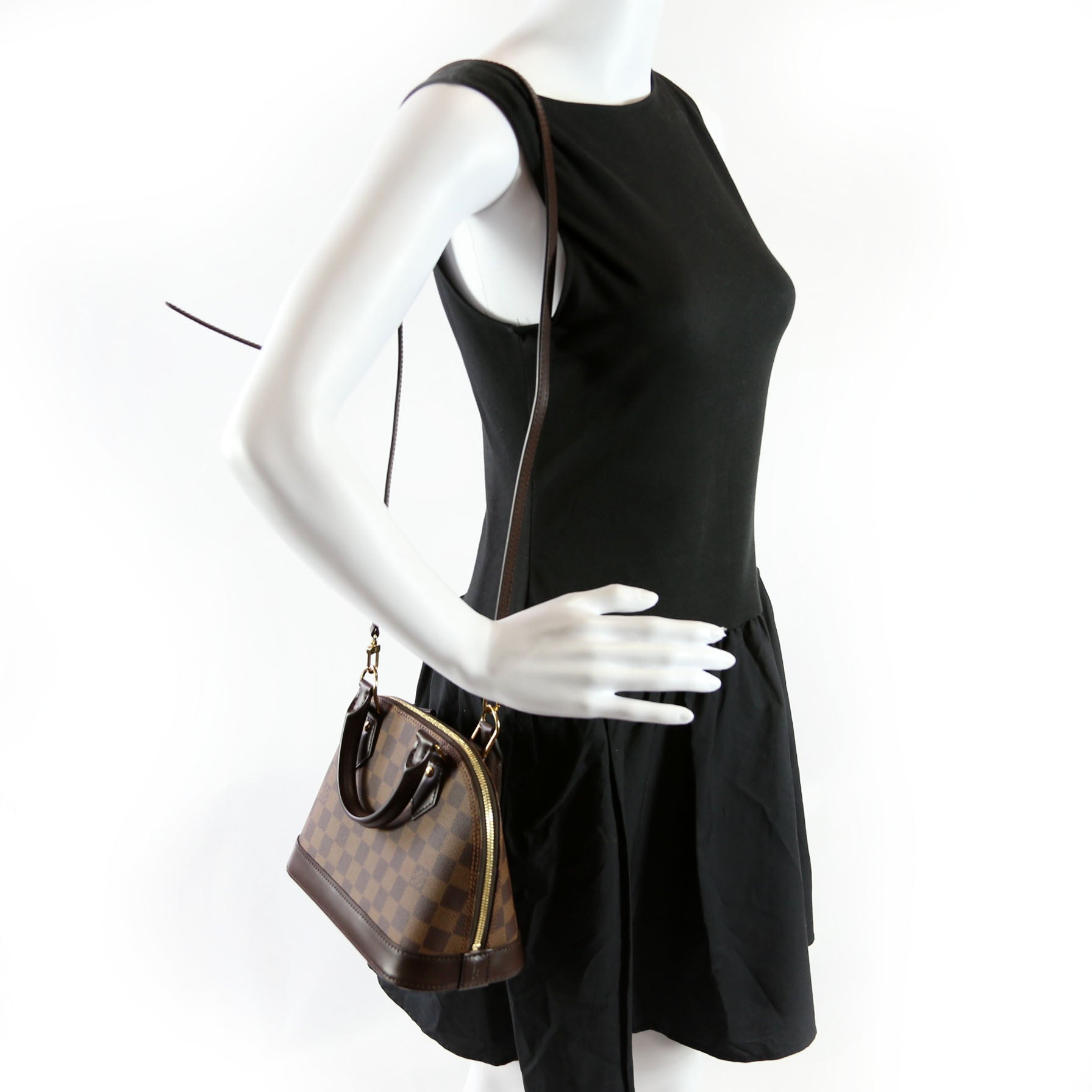 This pre-owned Louis Vuitton Alma BB Ebene is guaranteed 100% authentic. The exterior is in the classic Louis Vuitton Damier Ebene Coated Canvas.