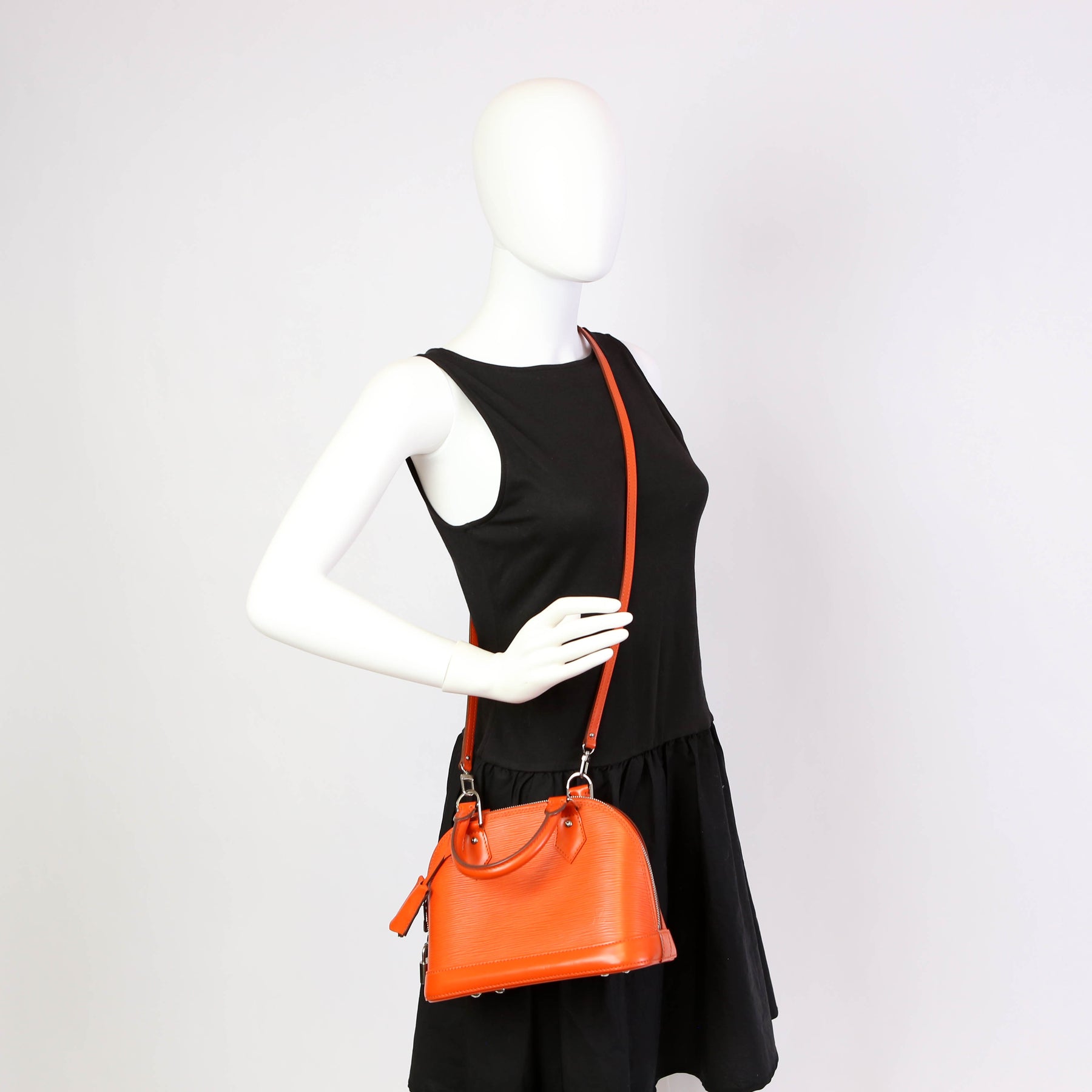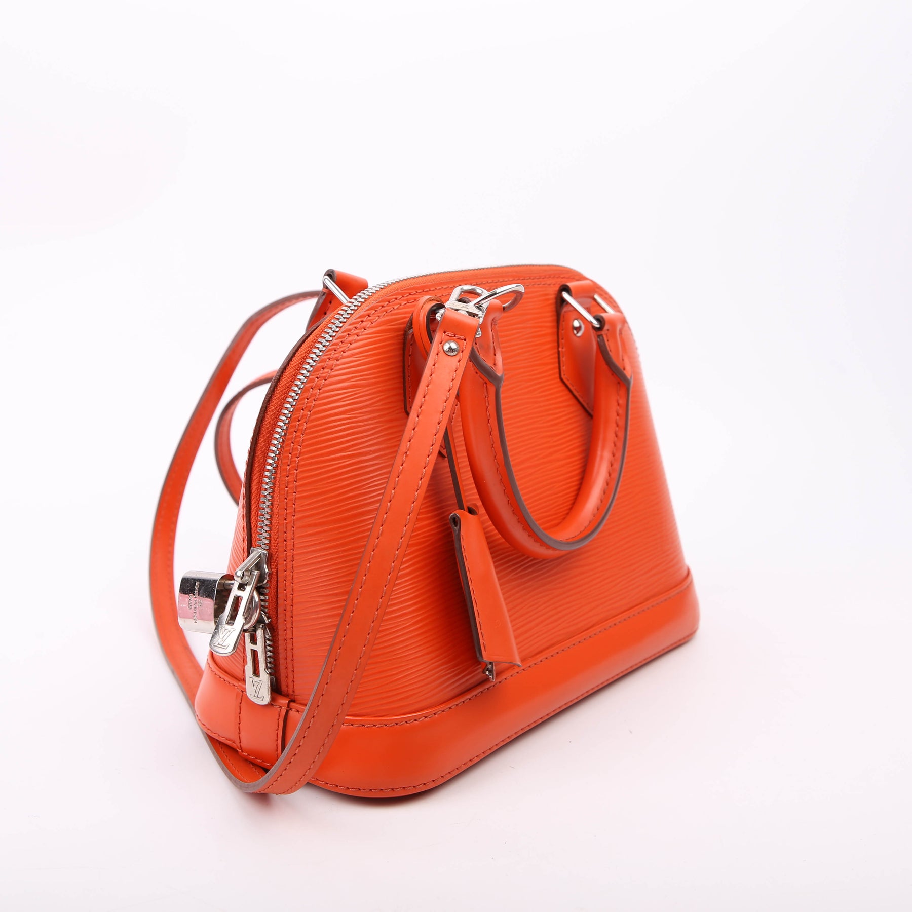 This pre-owned Louis Vuitton Alma BB W/ Strap is guaranteed 100% authentic. The exterior is in the classic Louis Vuitton Epi leather.