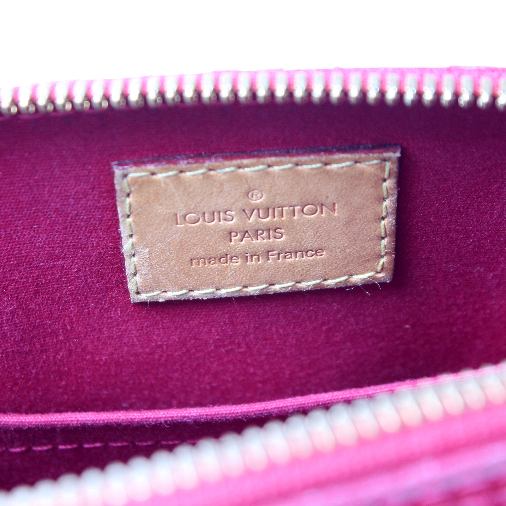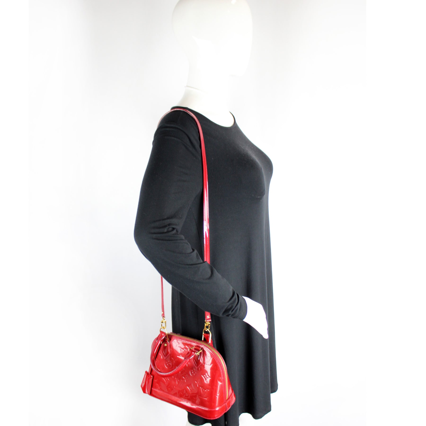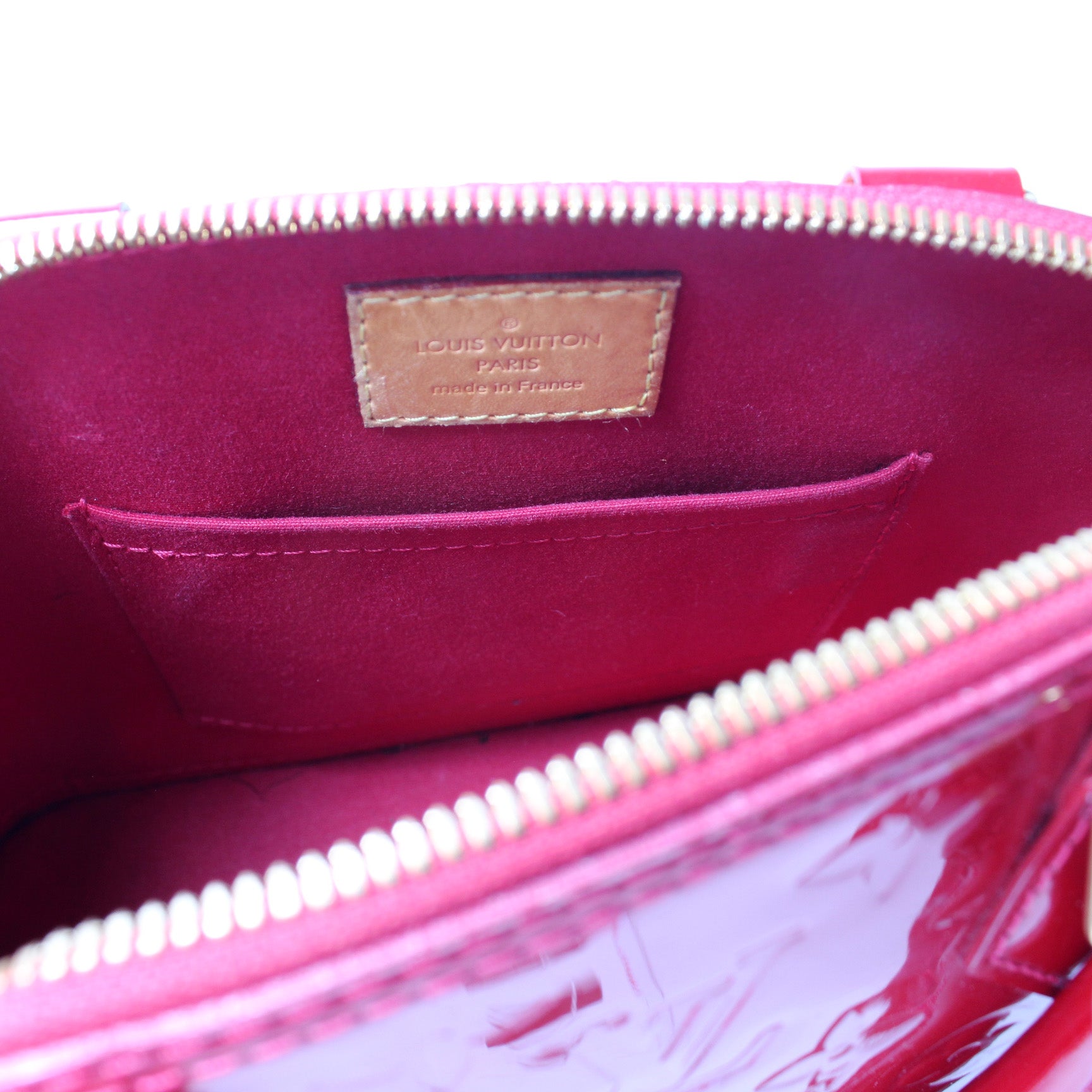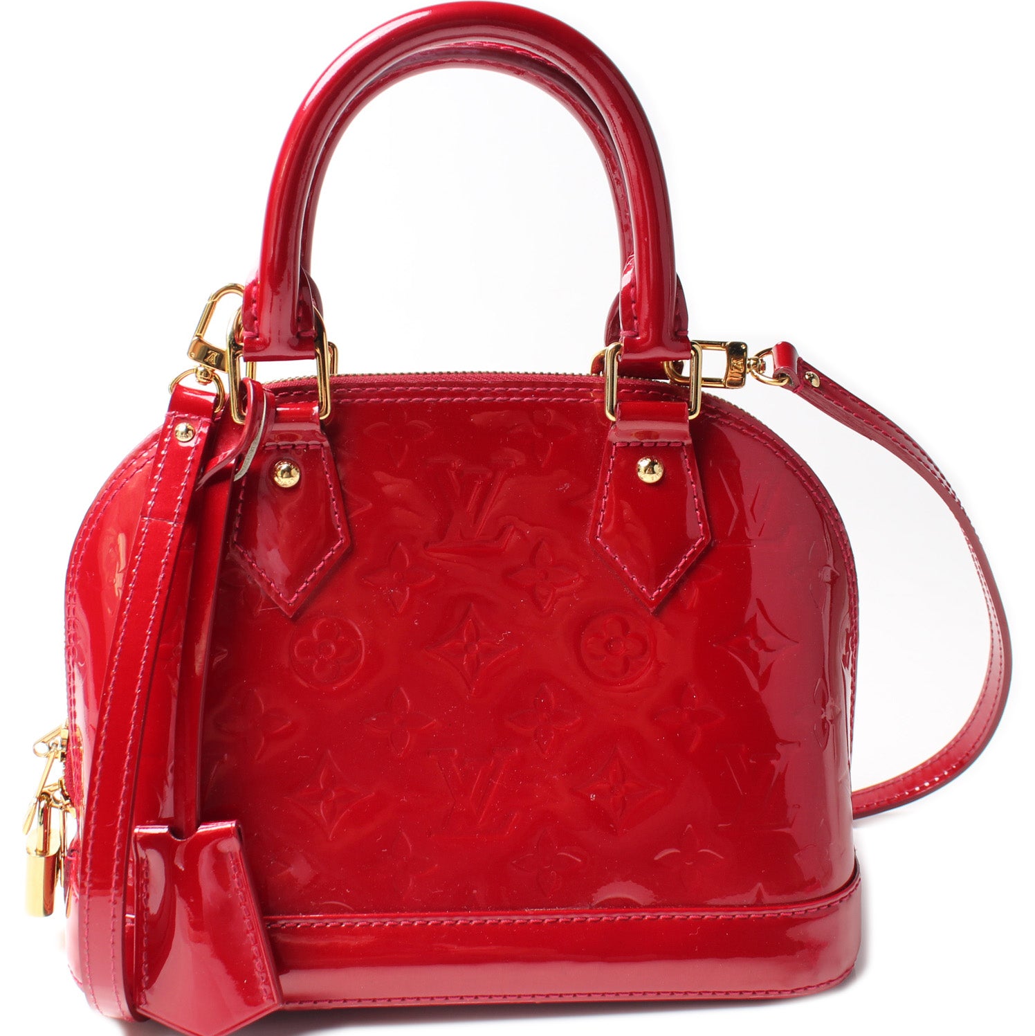 This pre-owned Louis Vuitton Alma BB is guaranteed 100% authentic. The exterior is in the classic Vernis patent leather.