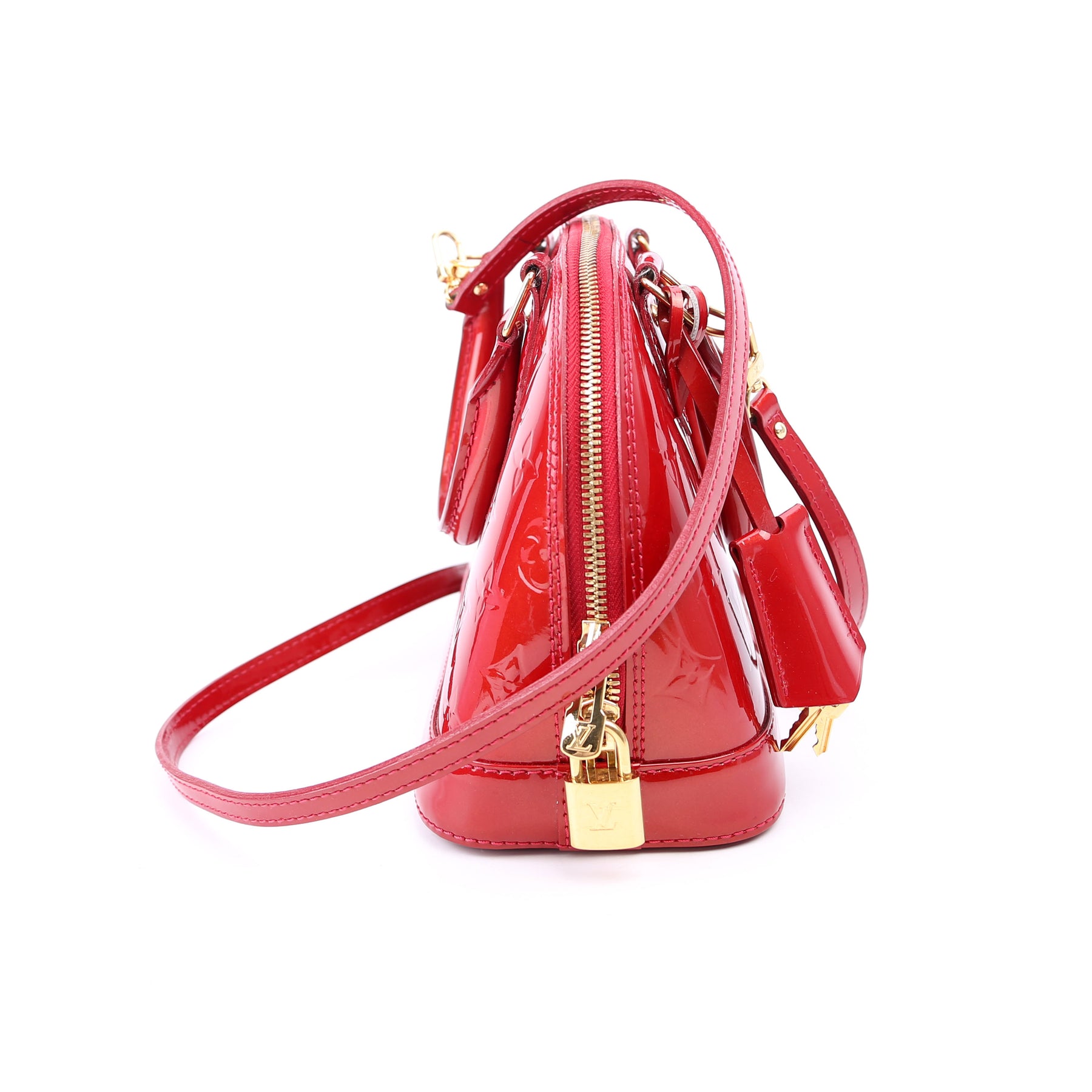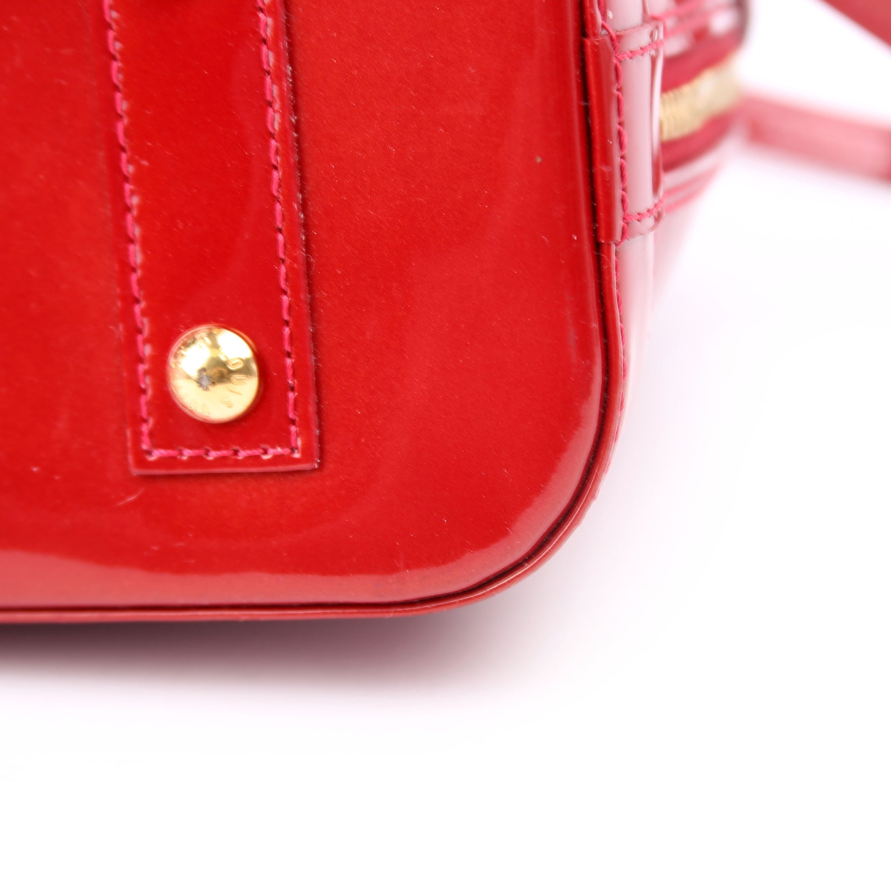 This pre-owned Louis Vuitton Alma BB is guaranteed 100% authentic. The exterior is in the classic Louis Vuitton Vernis leather.