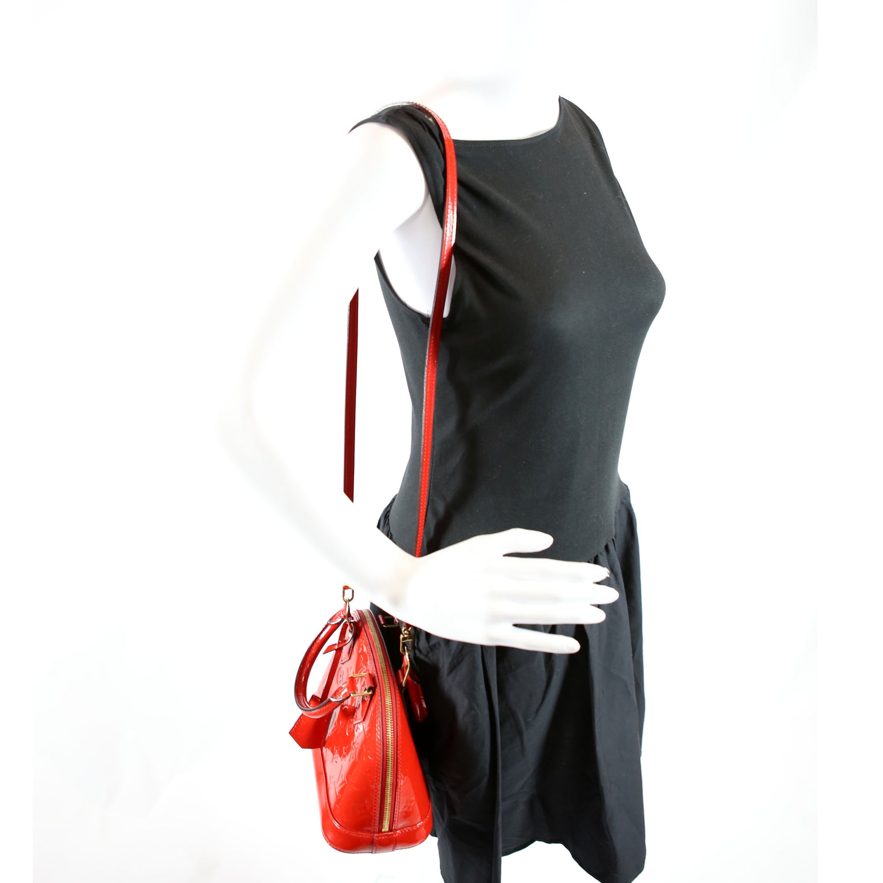 This pre-owned Louis Vuitton Alma BB Vernis is guaranteed 100% authentic. The exterior is in the classic Louis Vuitton Patent material.