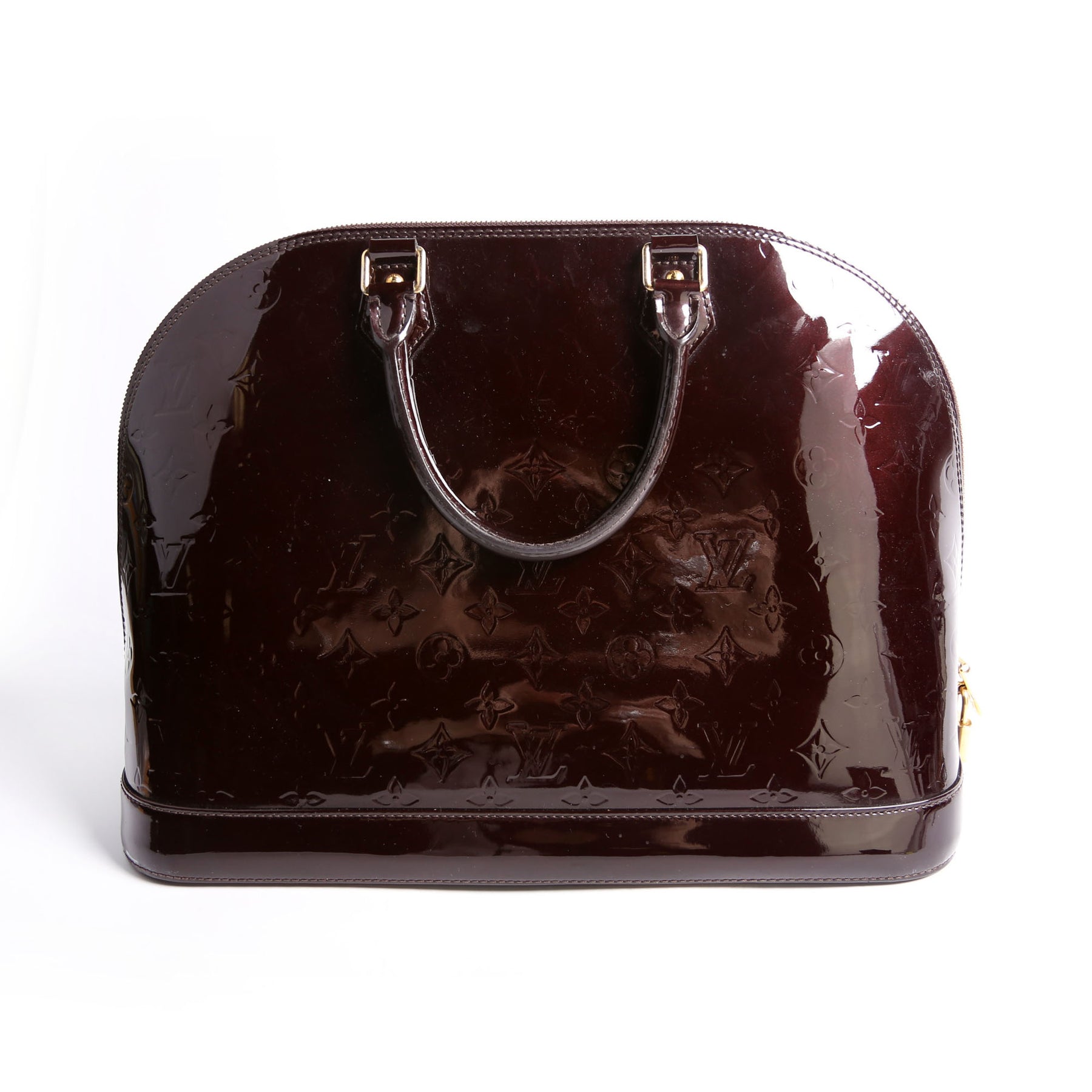 This pre-owned Louis Vuitton Alma GM is guaranteed 100% authentic. The exterior is in the classic Louis Vuitton Vernis leather.