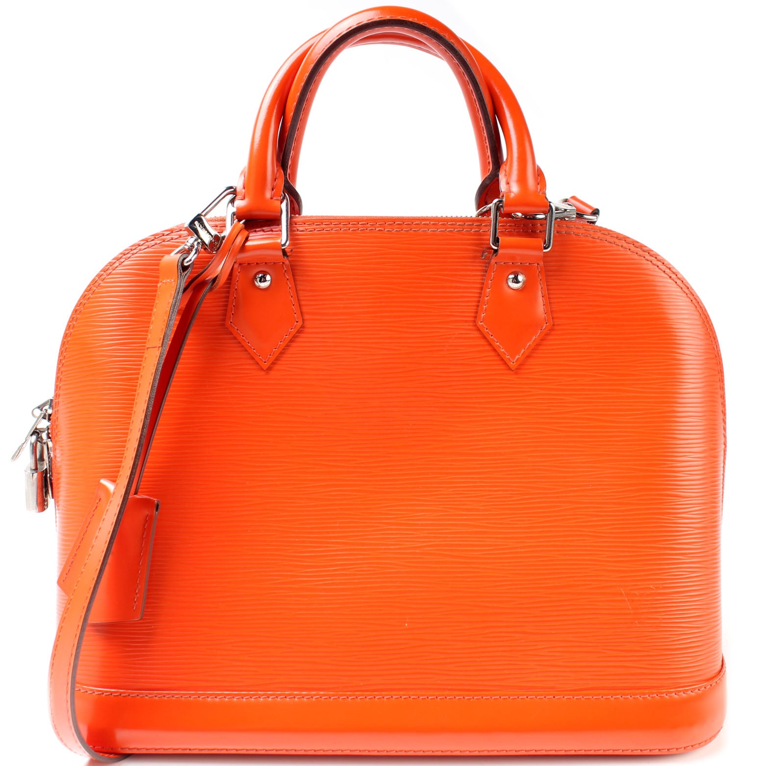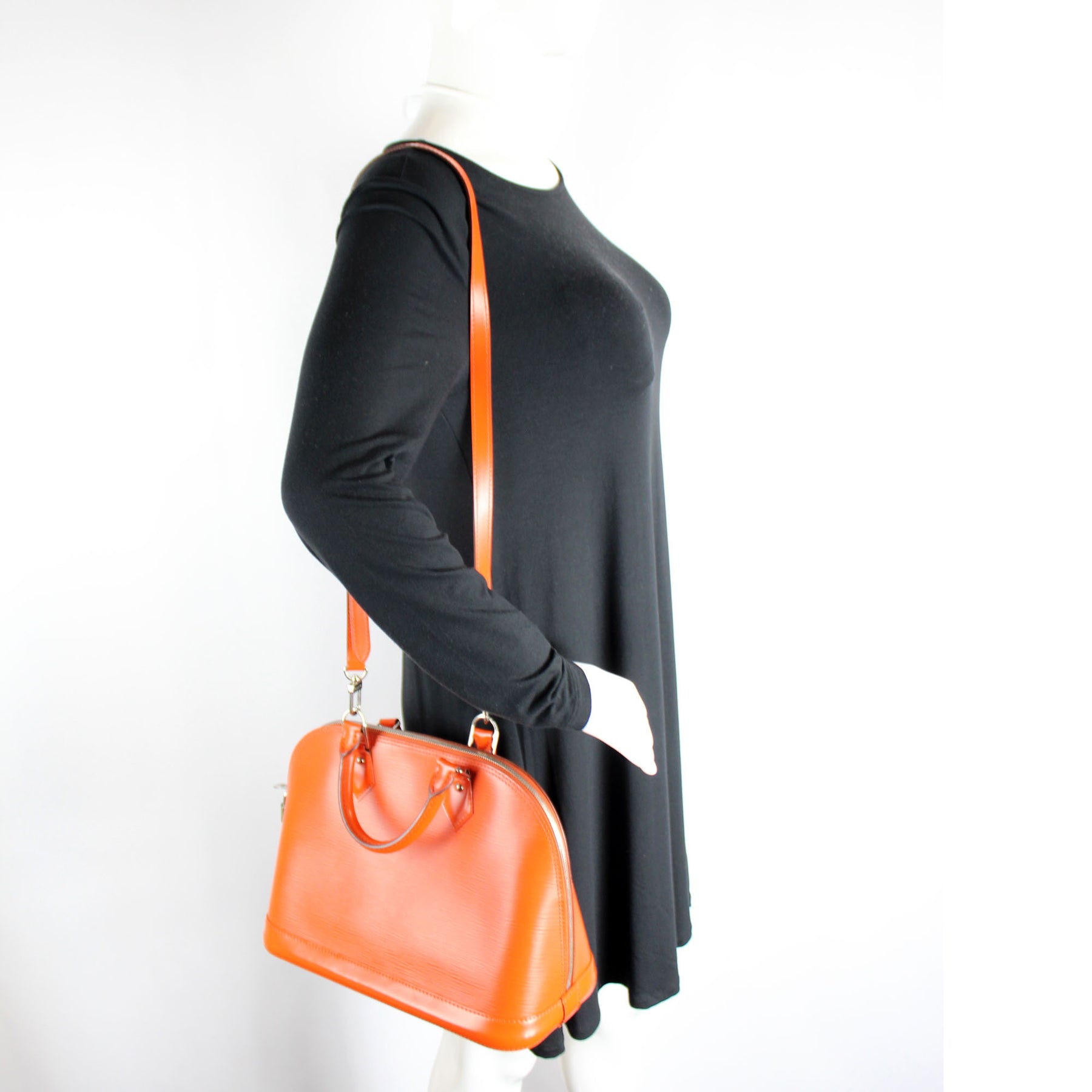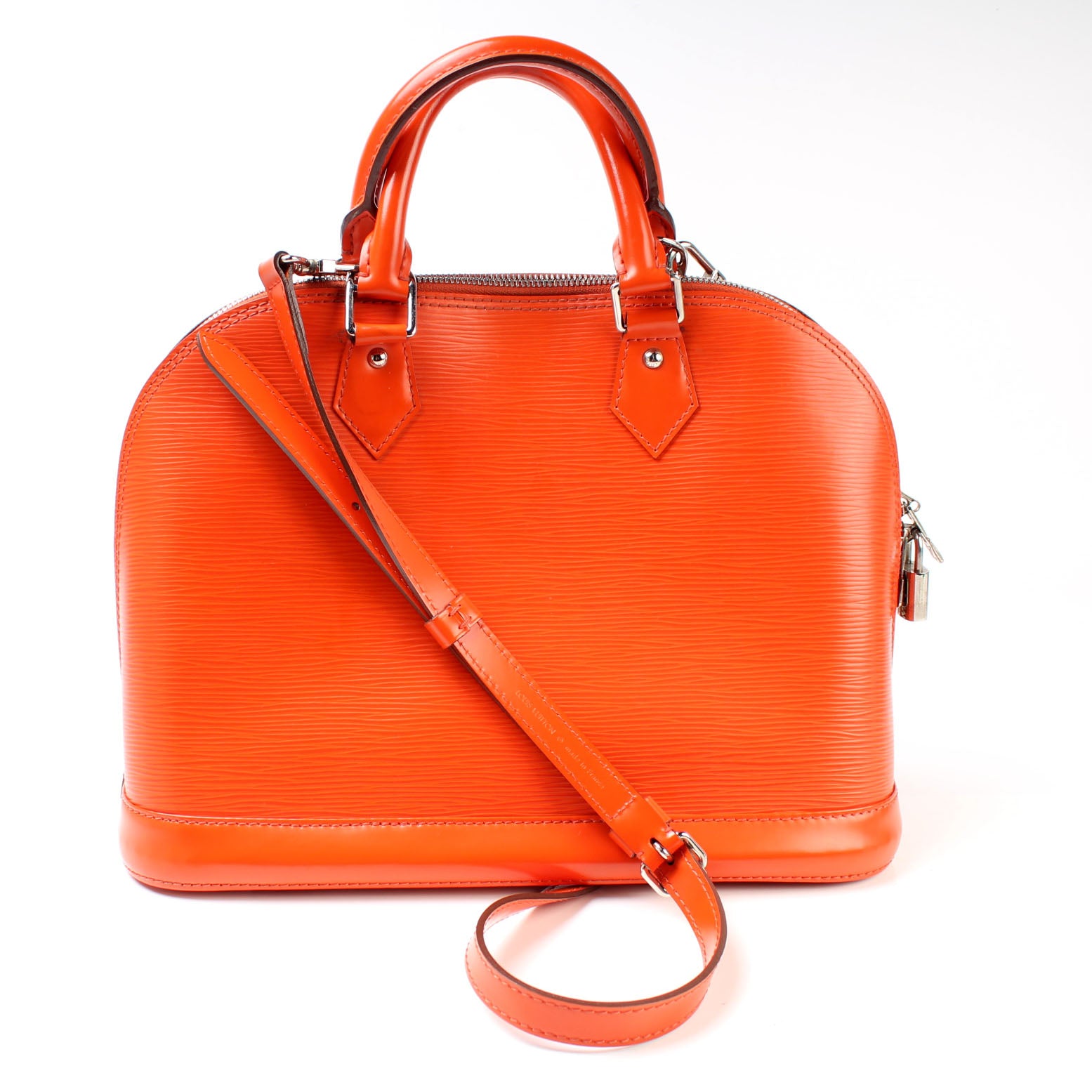 This pre-owned Louis Vuitton Alma PM Newer W/ Strap is guaranteed 100% authentic. The exterior is in the classic Epi leather.