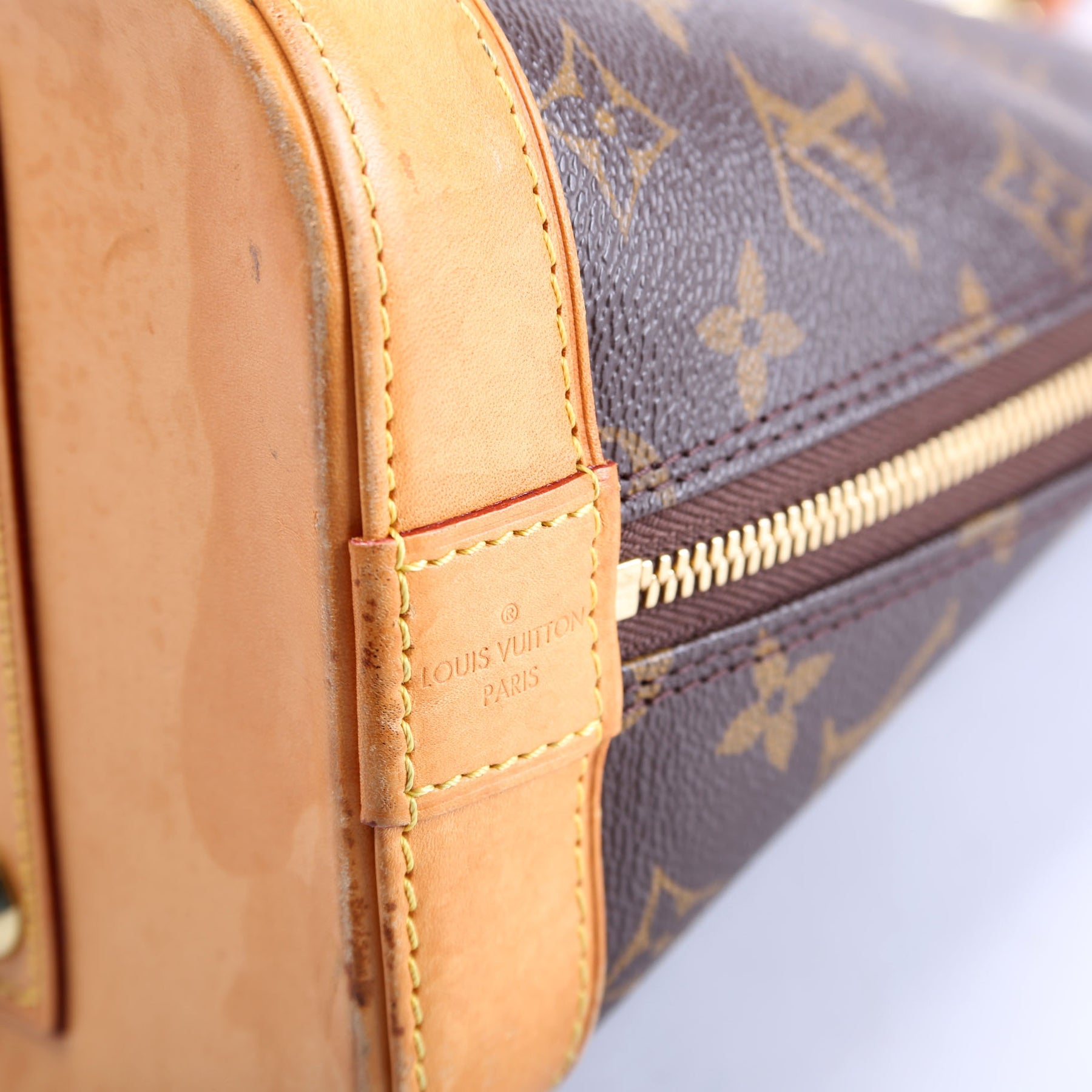 This pre-owned Louis Vuitton Alma PM Newer is guaranteed 100% authentic. The exterior is in the classic Louis Vuitton Monogram coated canvas.