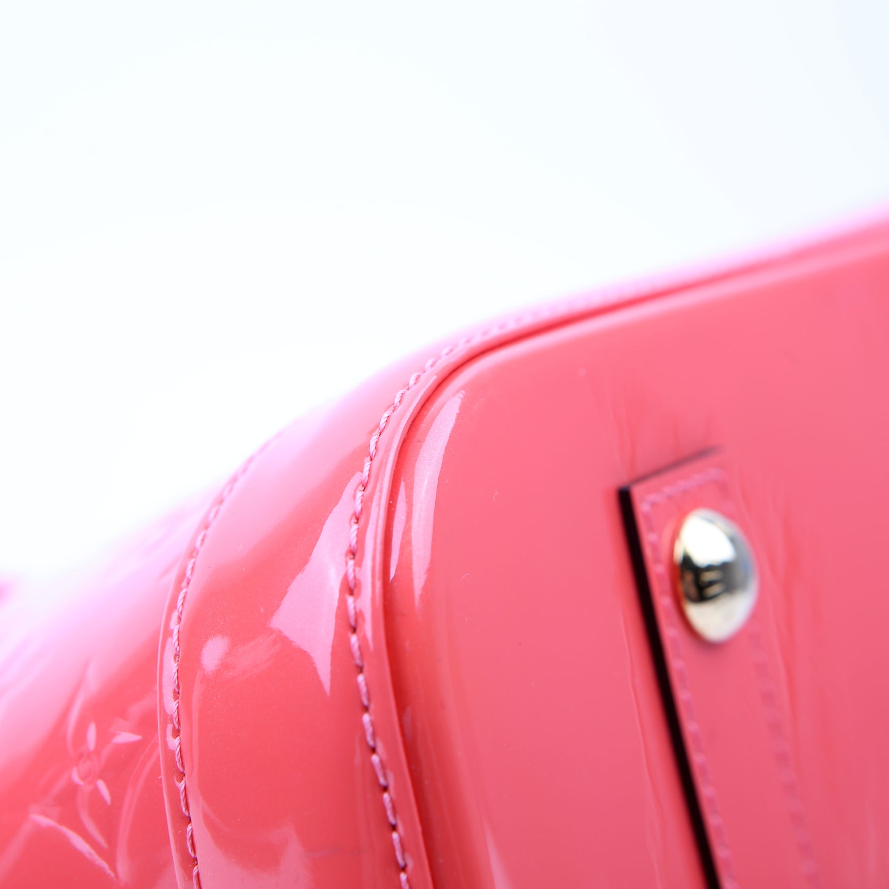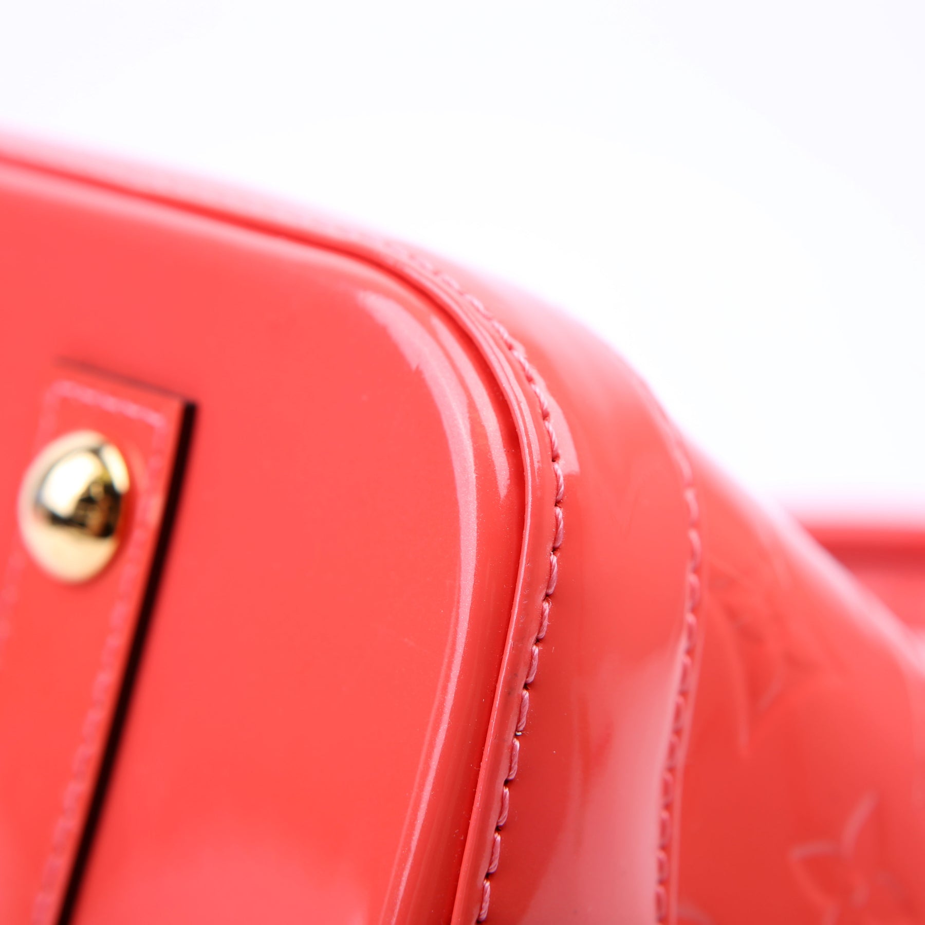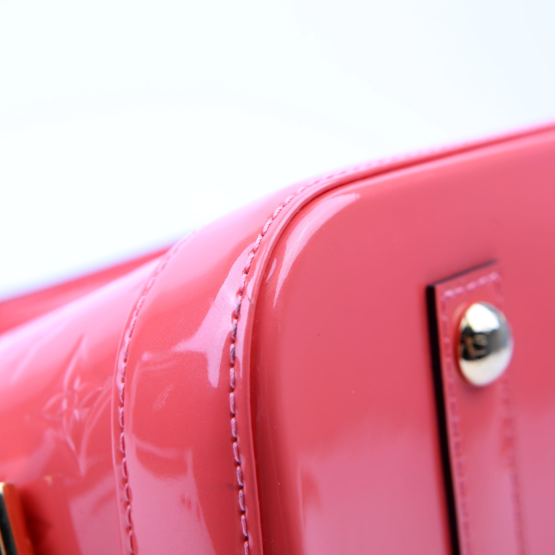 This pre-owned Louis Vuitton Alma PM is guaranteed 100% authentic. The exterior is in the classic Louis Vuitton Vernis leather.