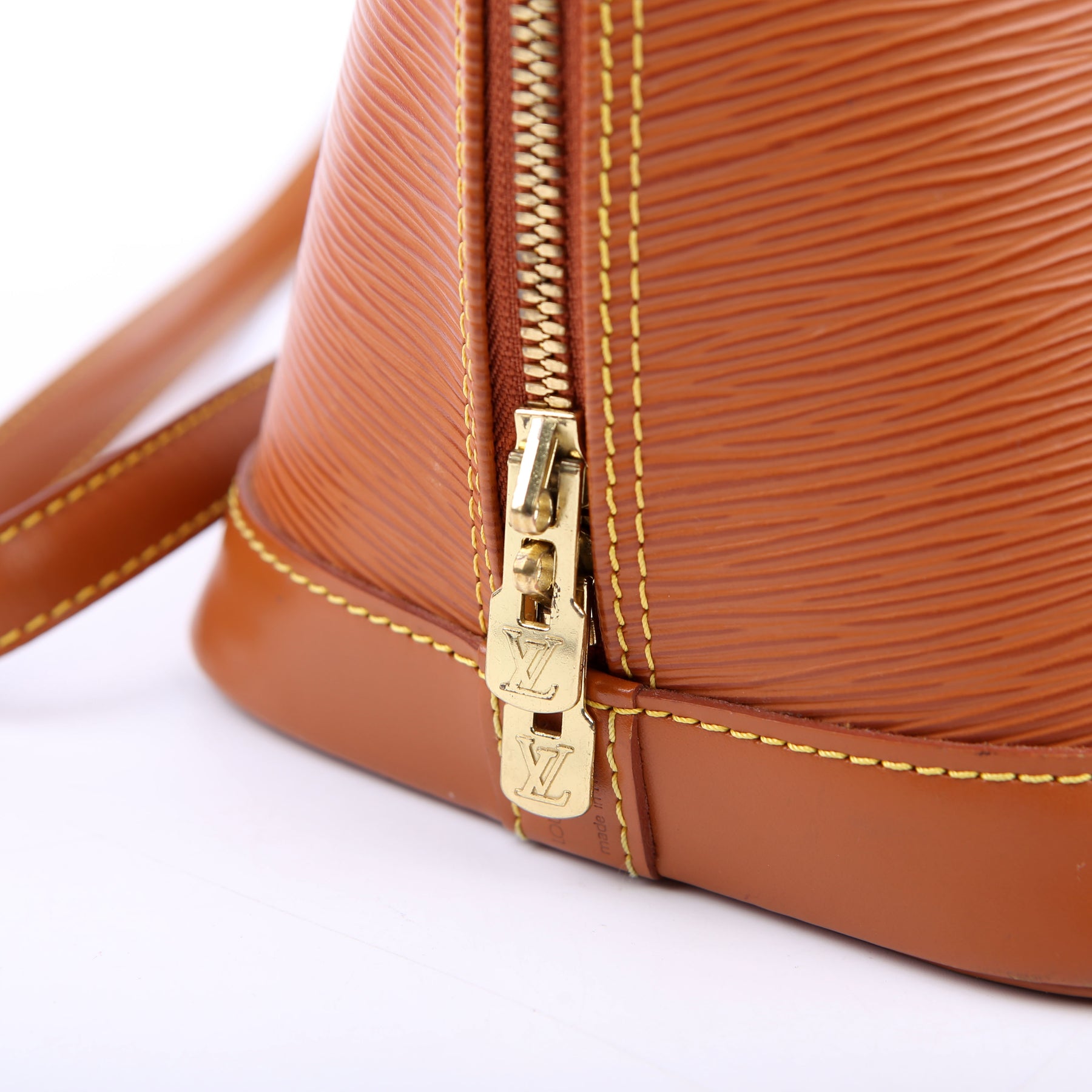 This pre-owned Louis Vuitton Alma With Strap PM Older is guaranteed 100% authentic. The exterior is in the classic Louis Vuitton Epi leather.