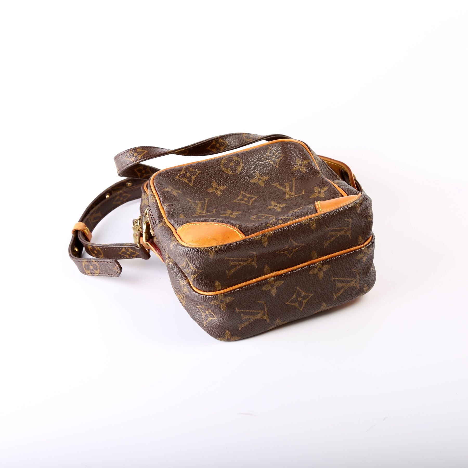 This pre-owned Louis Vuitton Amazone is guaranteed 100% authentic. The exterior is in the classic Louis Vuitton Monogram coated canvas.