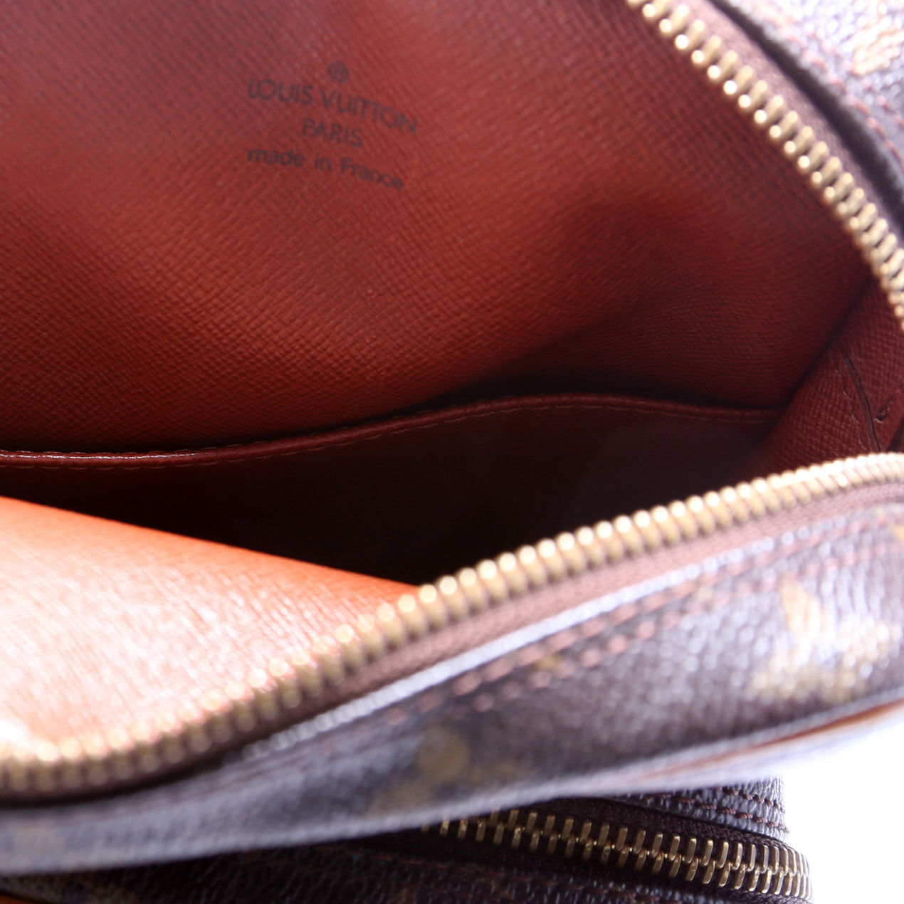 This pre-owned Louis Vuitton Amazone is guaranteed 100% authentic. The exterior is in the classic Louis Vuitton Monogram coated canvas.