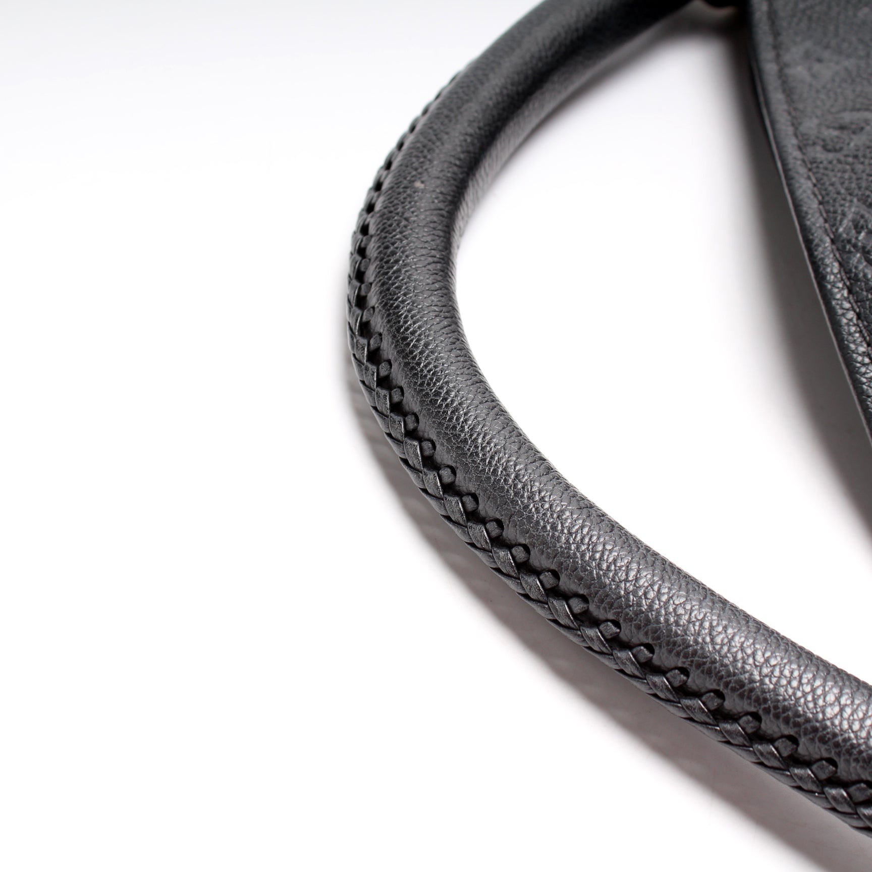 Exterior: The exterior leather is free from any rips or cracks. The corners show minor wear. The leather has minor scuffs.
