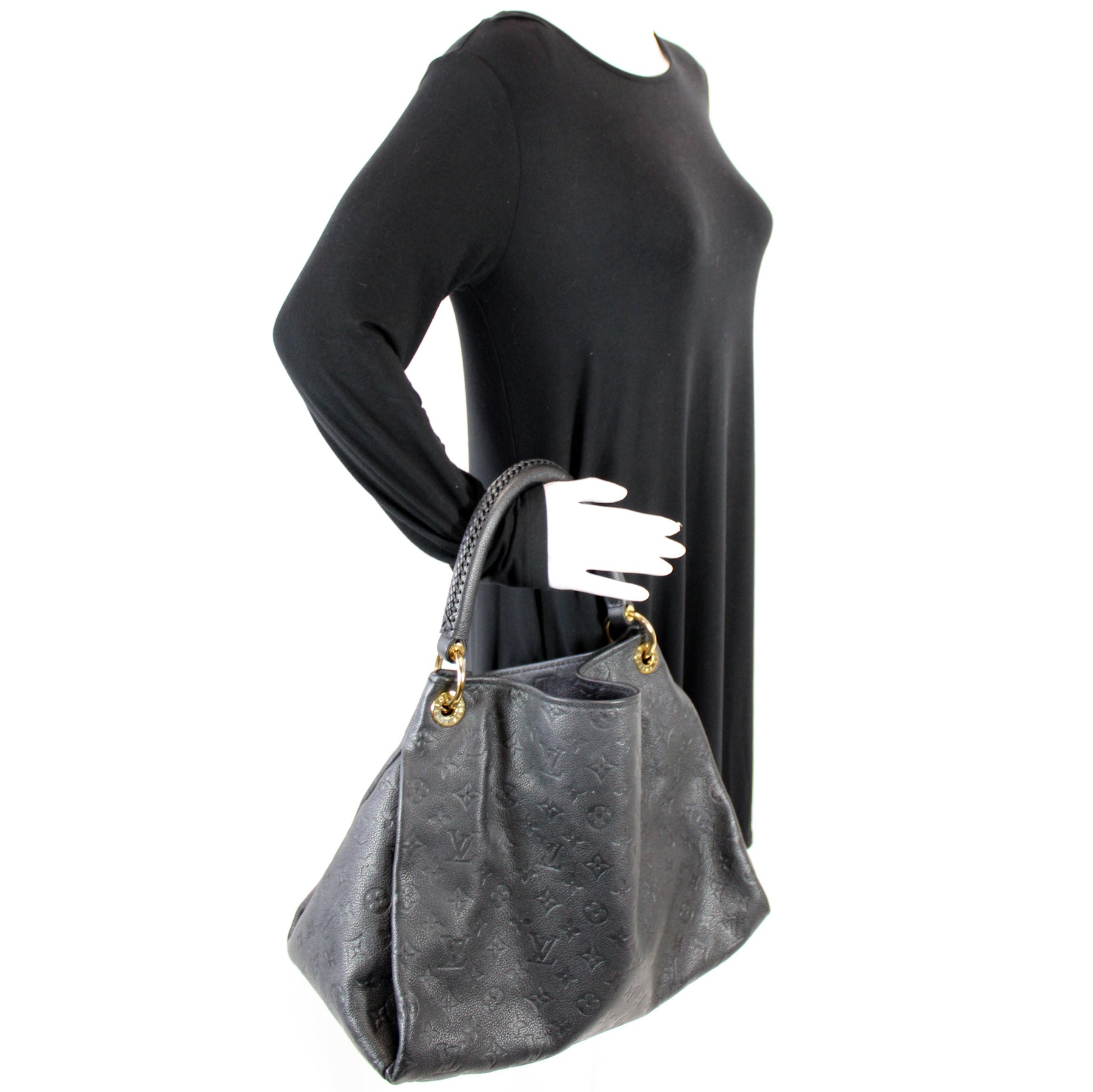 This pre-owned Louis Vuitton Artsy MM is guaranteed 100% authentic. The exterior is in the classic Louis Vuitton Empreinte leather.