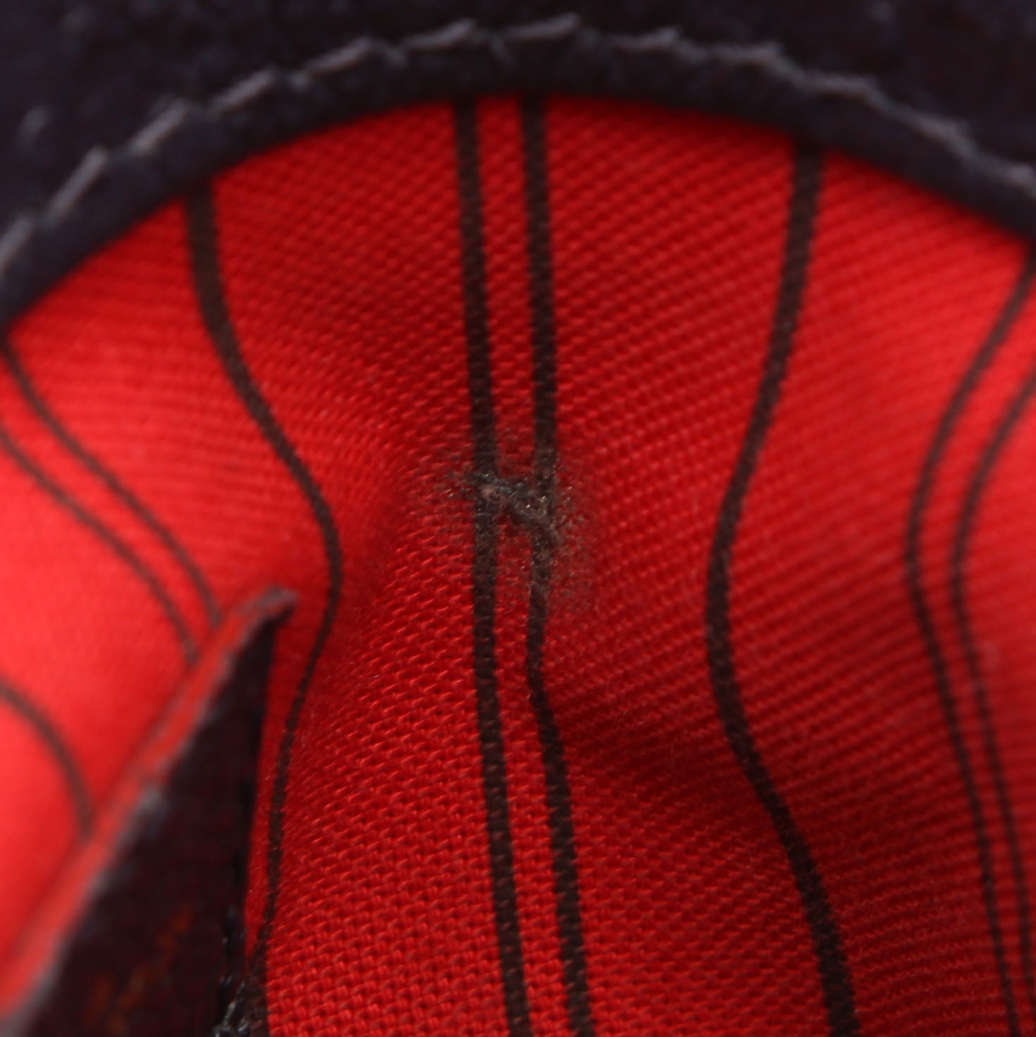 Interior: The interior has minor stains and wear throughout. The interior features six open pockets and one zip closure pocket.