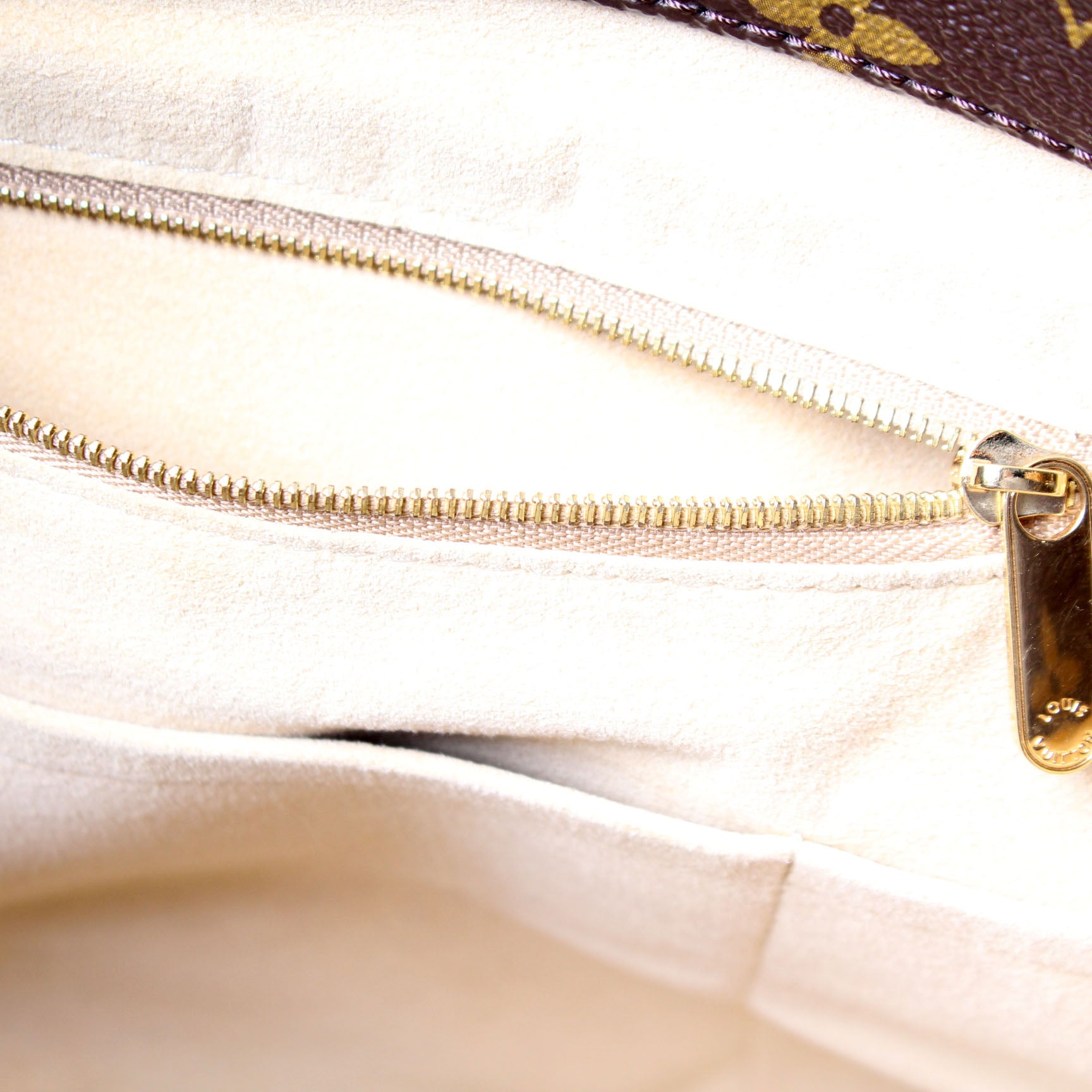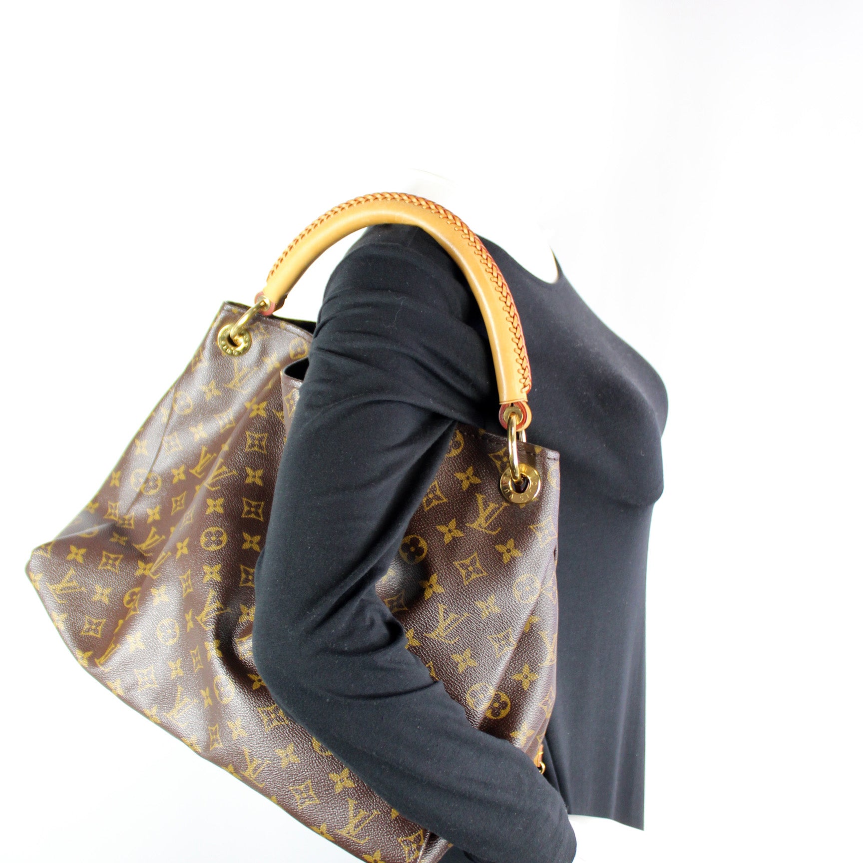 This pre-owned Louis Vuitton Artsy MM is guaranteed 100% authentic. The exterior is in the classic Louis Vuitton Monogram coated canvas.