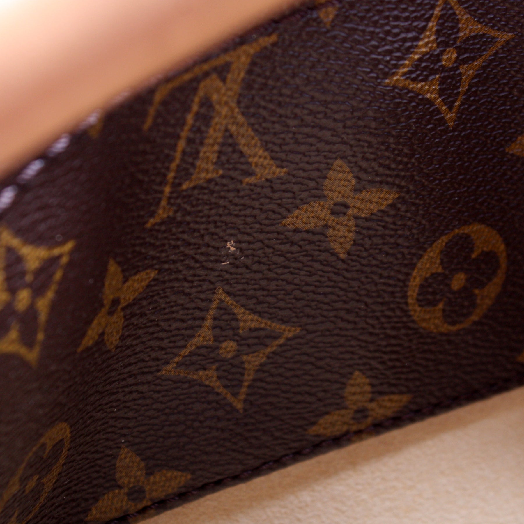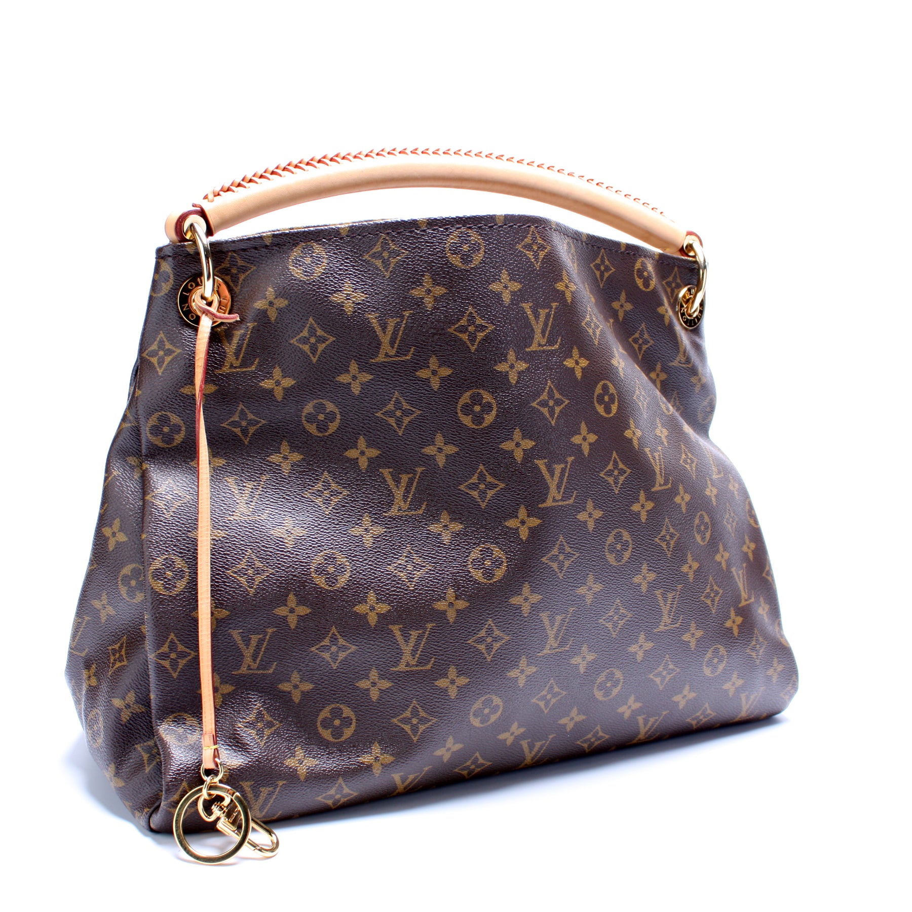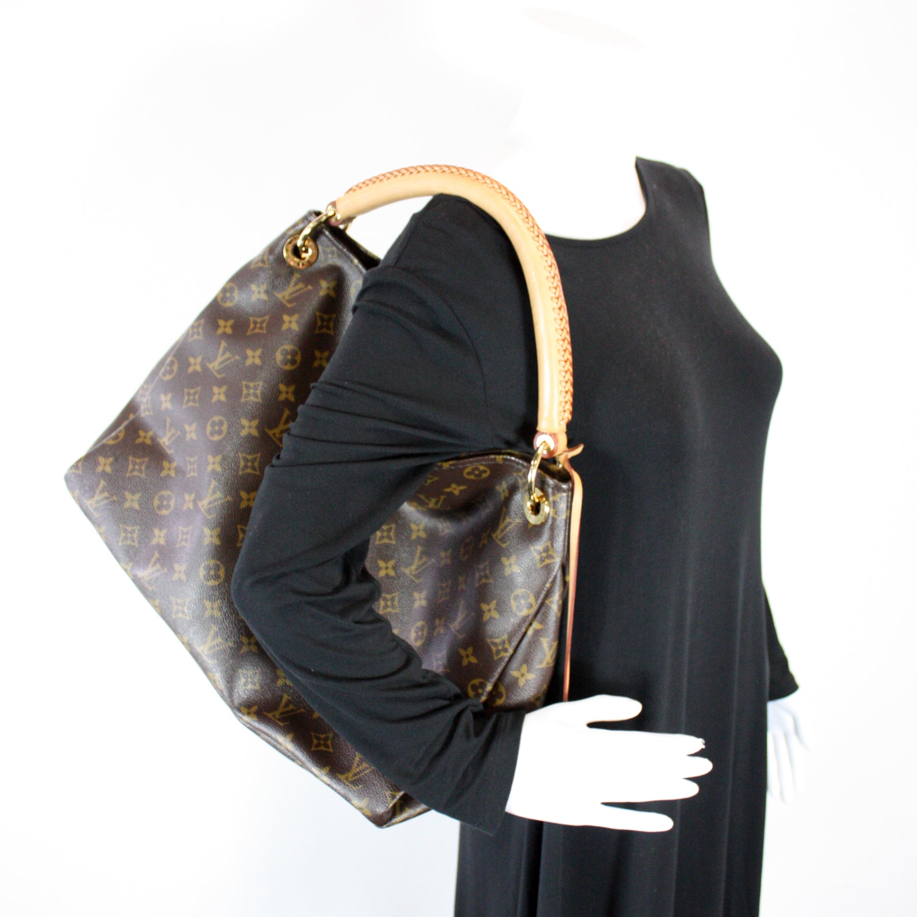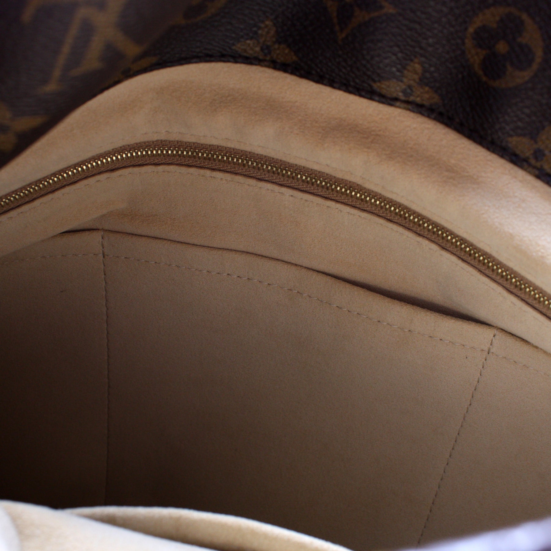 This pre-owned Louis Vuitton Artsy MM is guaranteed 100% authentic. The exterior is in the classic Louis Vuitton Monogram coated canvas.