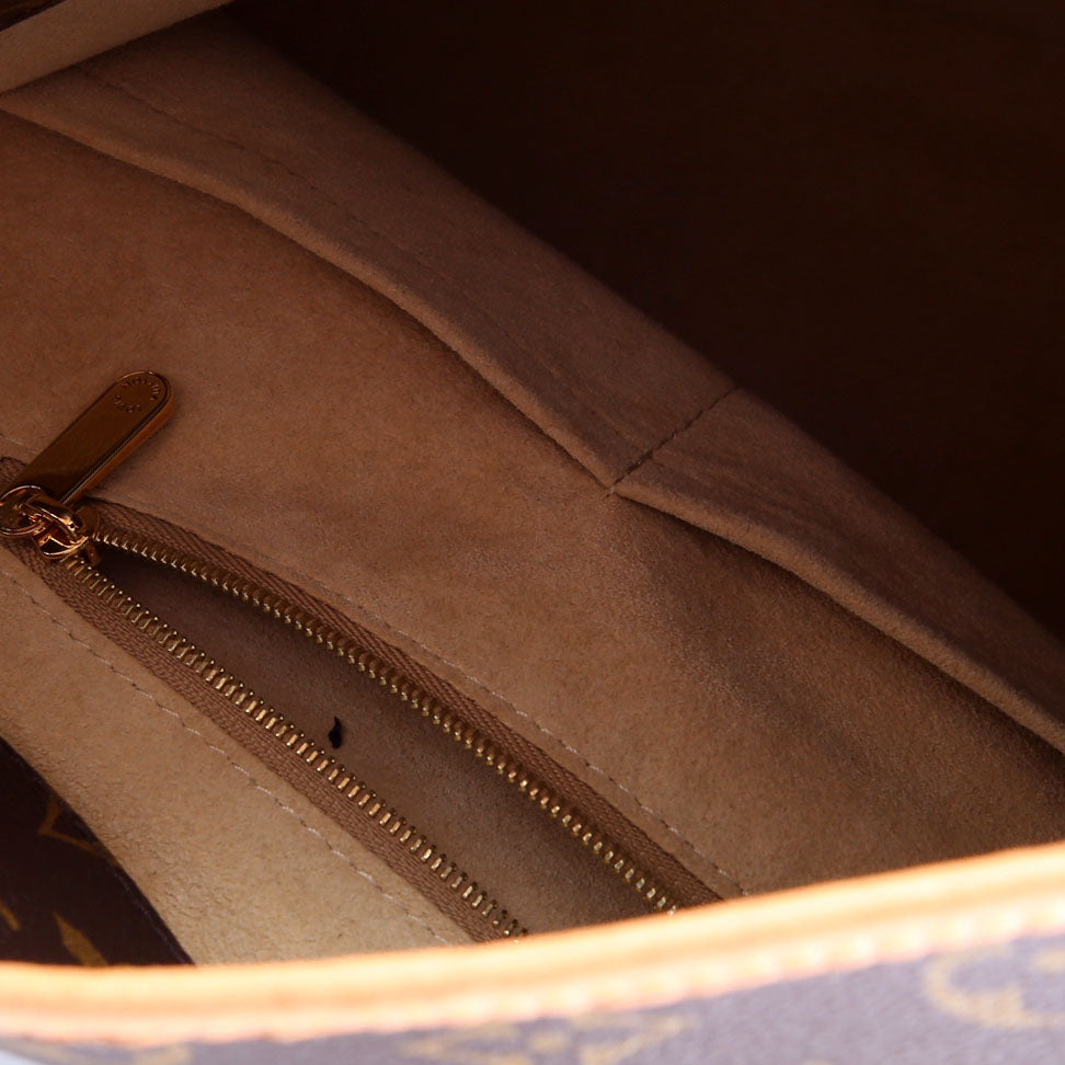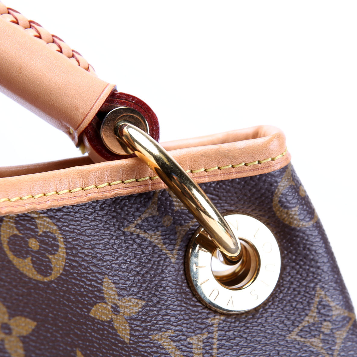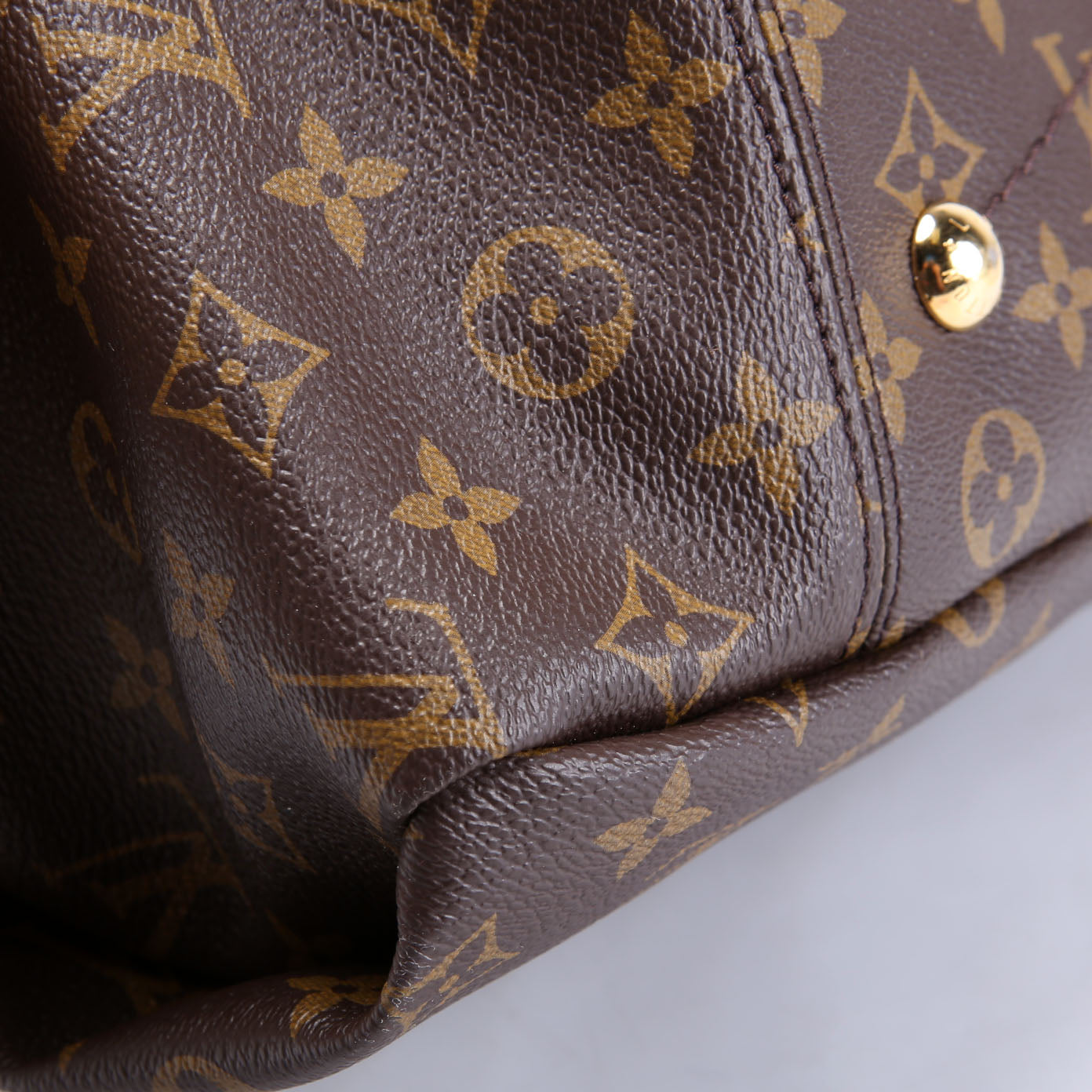 These pre-owned Louis Vuitton Artsy MM are guaranteed 100% authentic. The exterior is in the classic Louis Vuitton Monogram coated canvas.