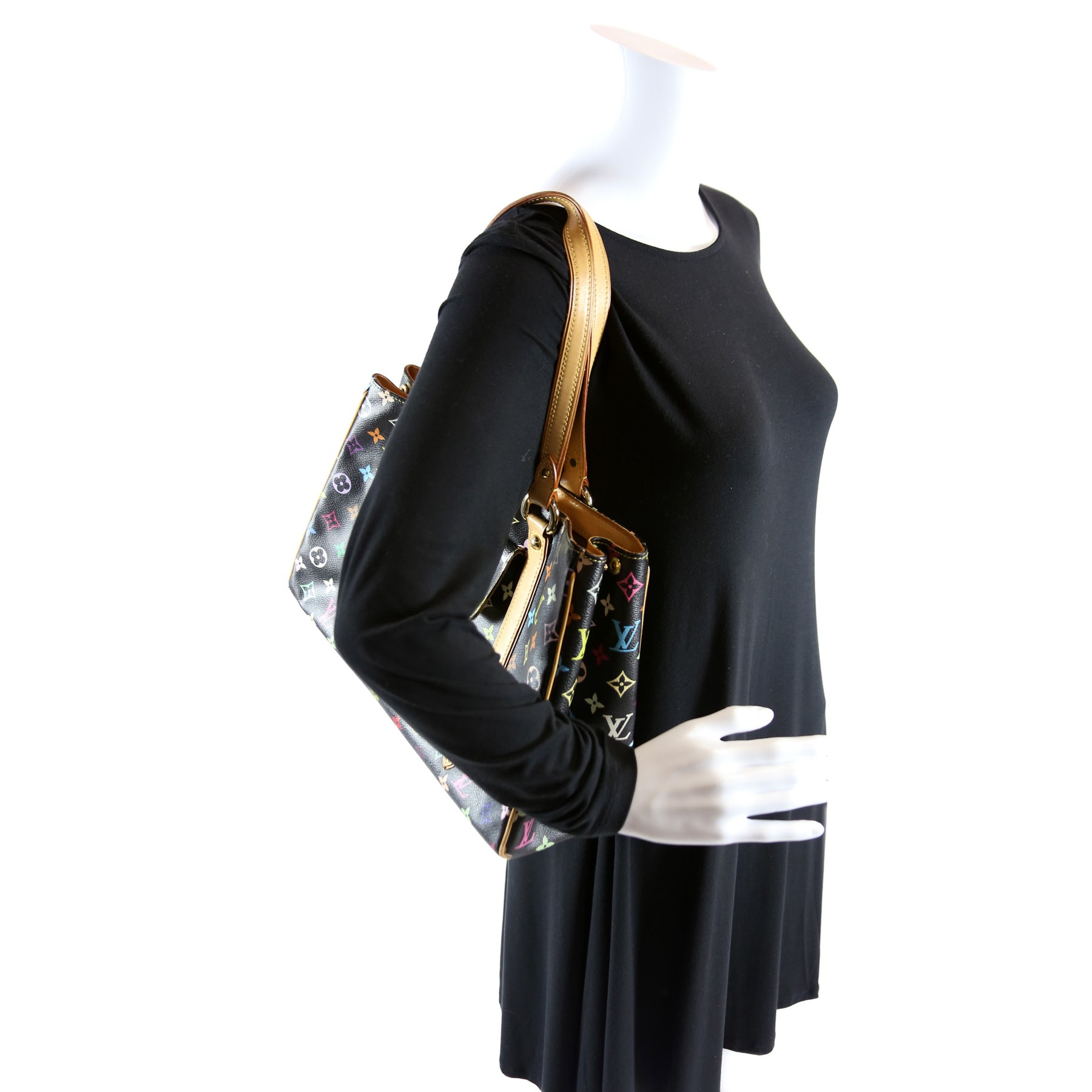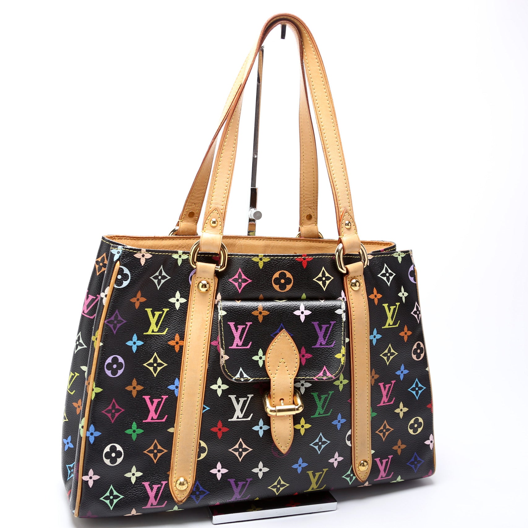This pre-owned Louis Vuitton Aurelia MM is guaranteed 100% authentic. The exterior is in the classic Louis Vuitton Multicolor Monogram coated canvas.