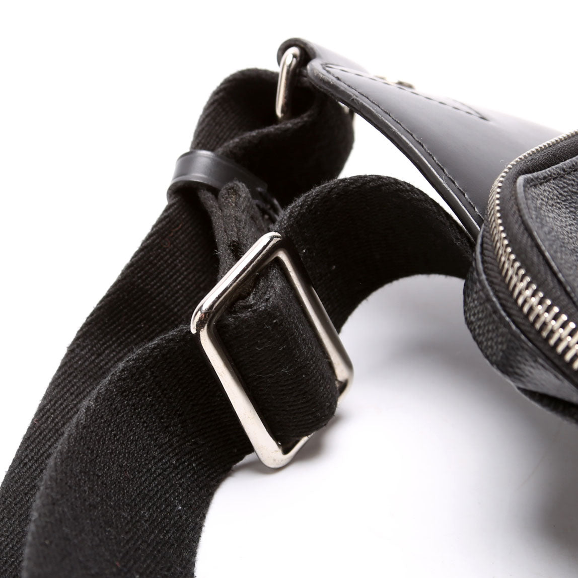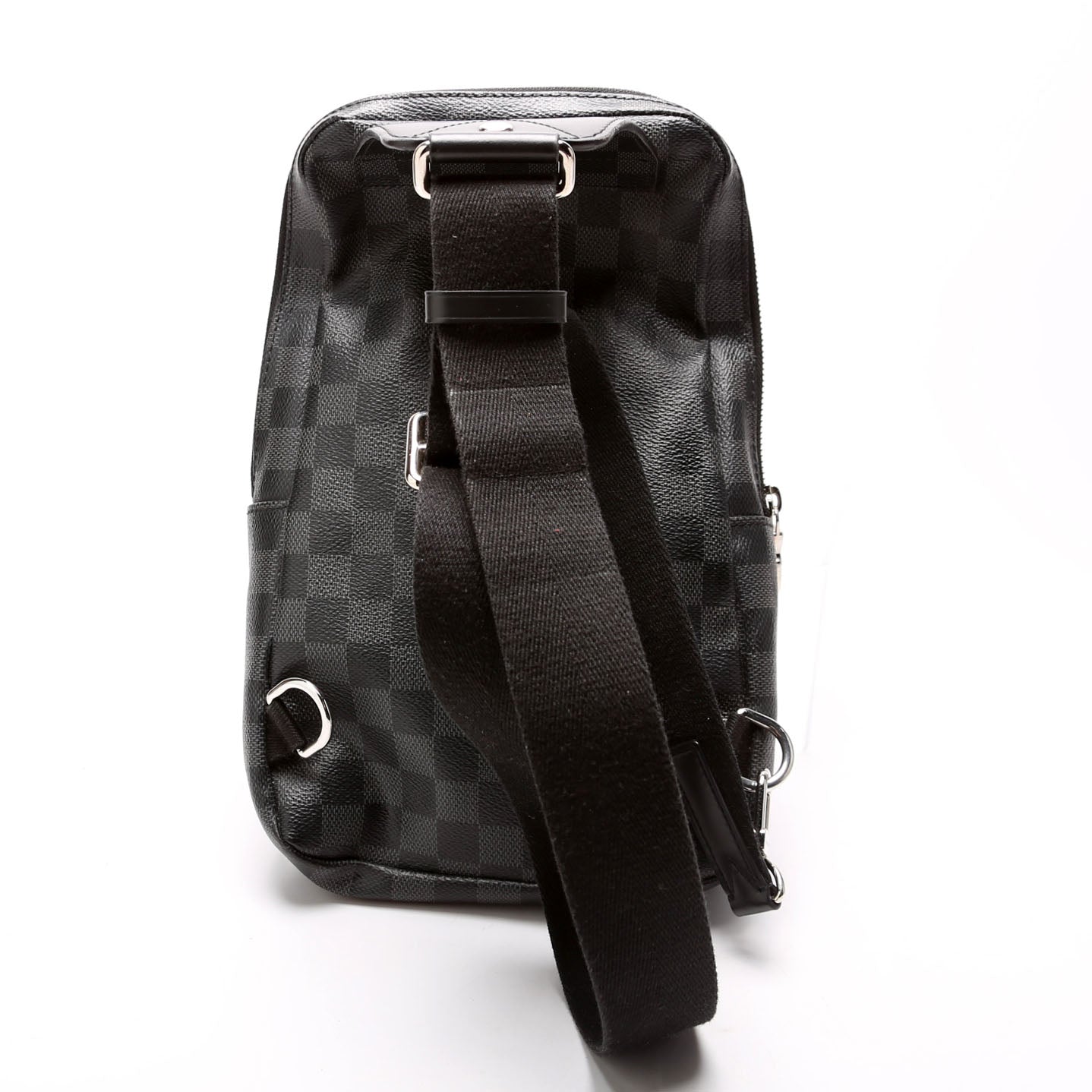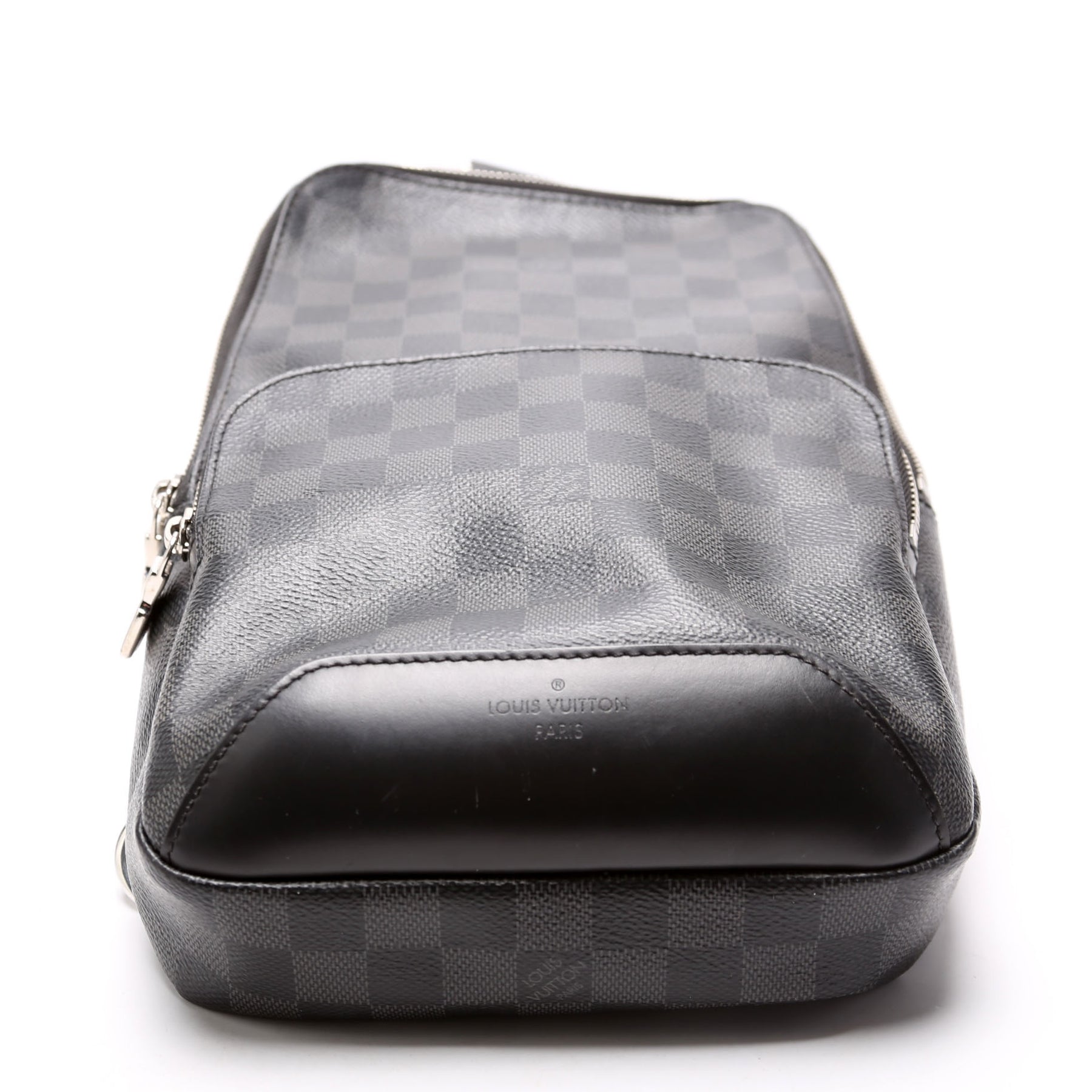 This pre-owned Louis Vuitton Avenue Sling Bag is guaranteed 100% authentic. The exterior is the Damier Graphite coated canvas.