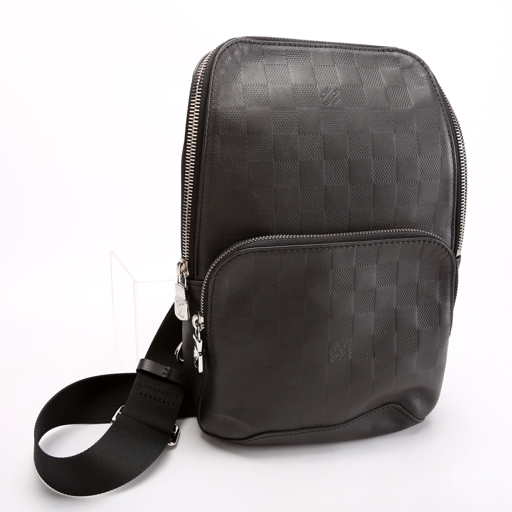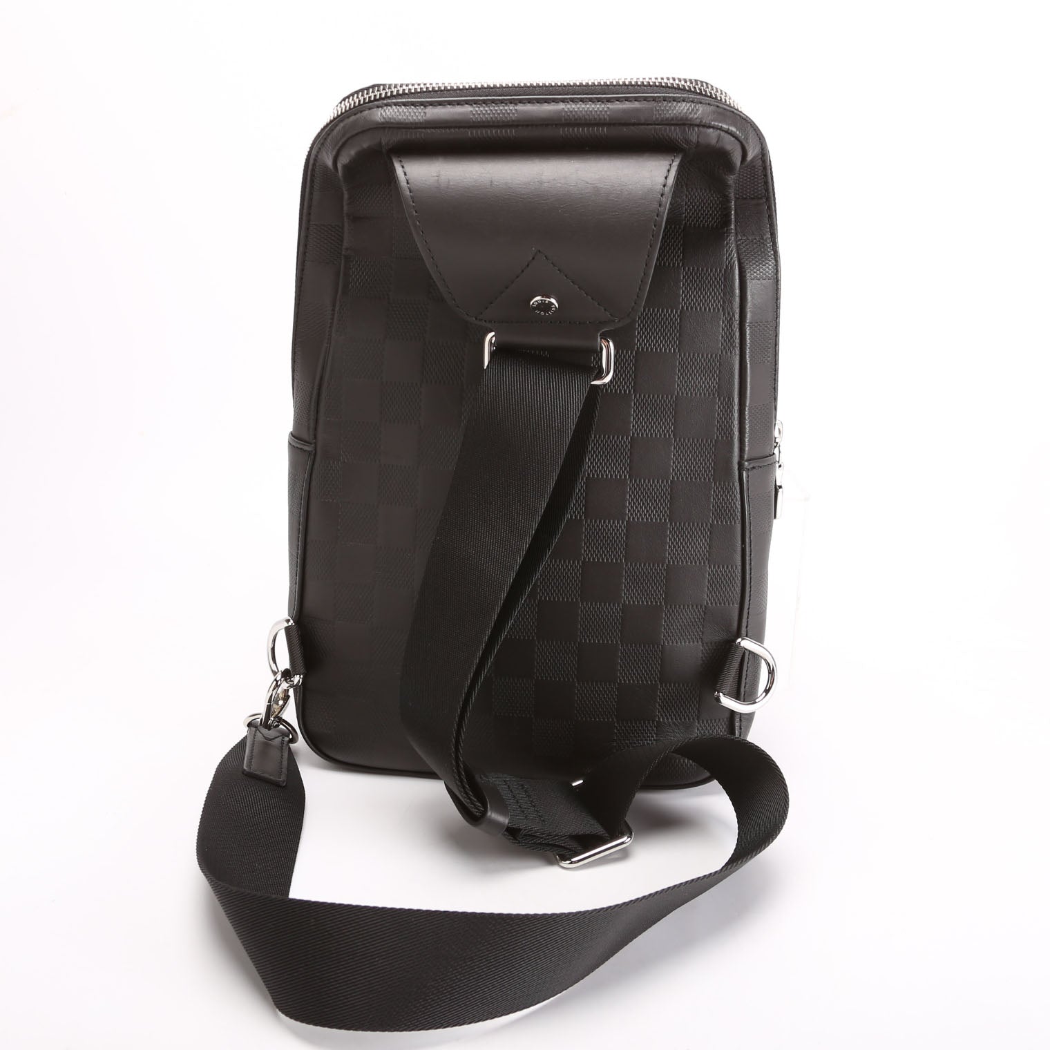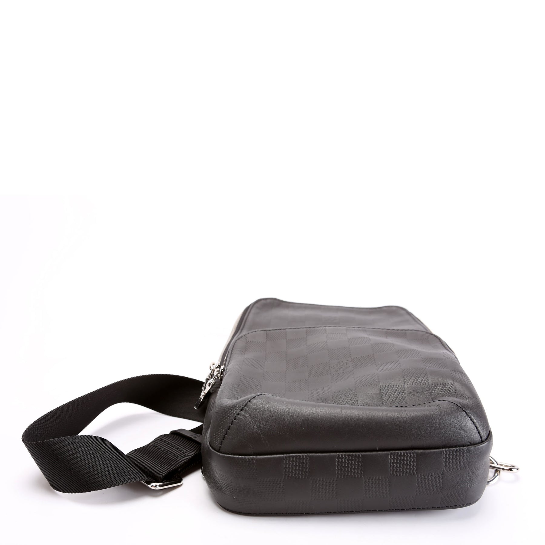 This pre-owned Louis Vuitton Avenue Sling Bag is guaranteed 100% authentic. The exterior is the Damier Graphite coated canvas.