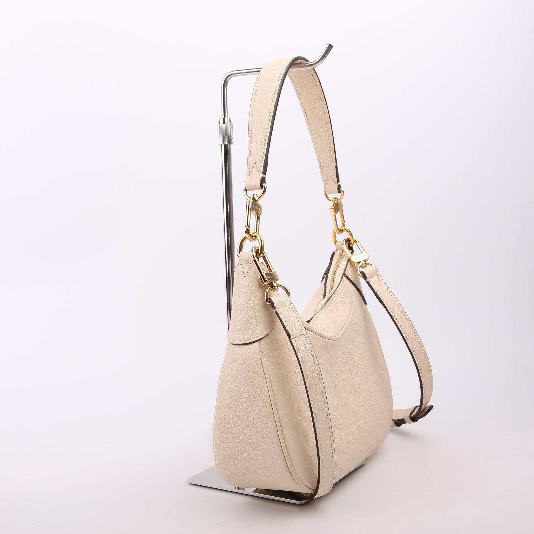 This pre-owned Louis Vuitton Bagatelle NM is guaranteed 100% authentic. The exterior is in the classic Louis Vuitton Empreinte leather.