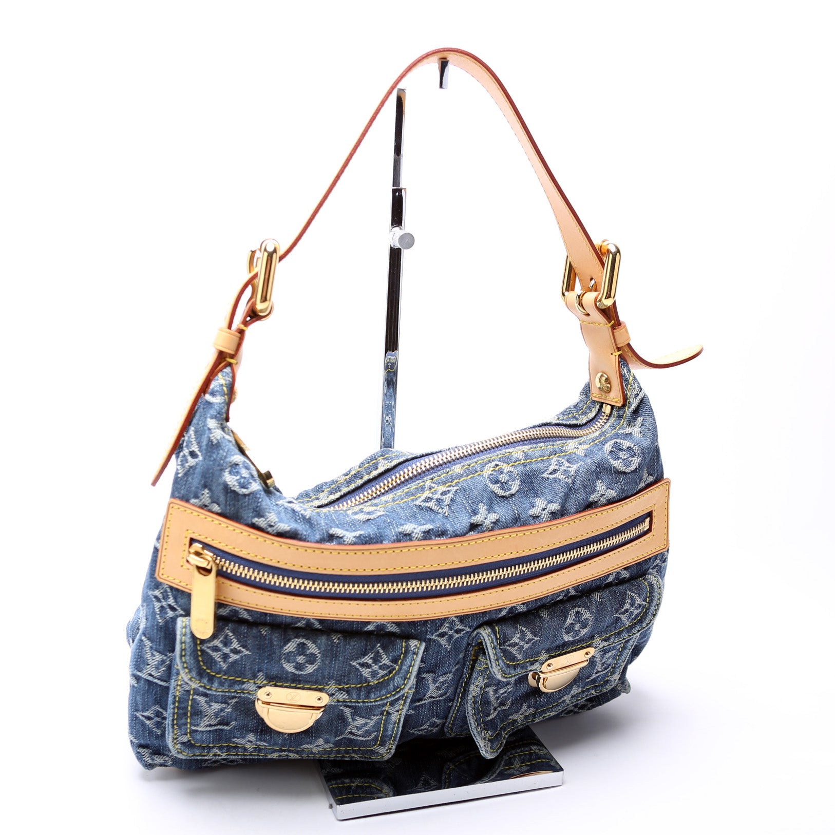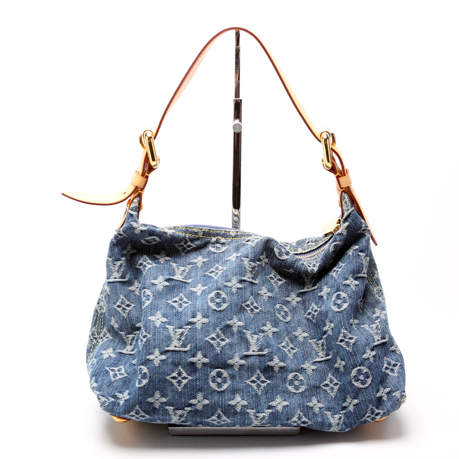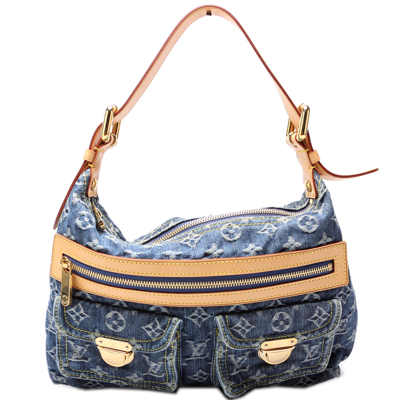 This pre-owned Louis Vuitton Baggy PM Denim is guaranteed 100% authentic. The exterior is in the classic Louis Vuitton denim and vachetta leather.