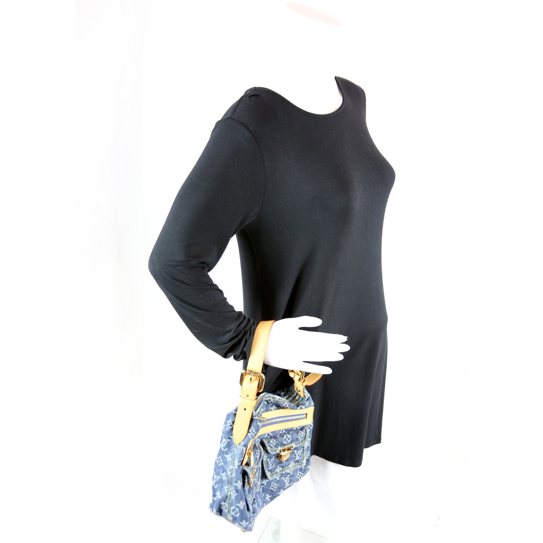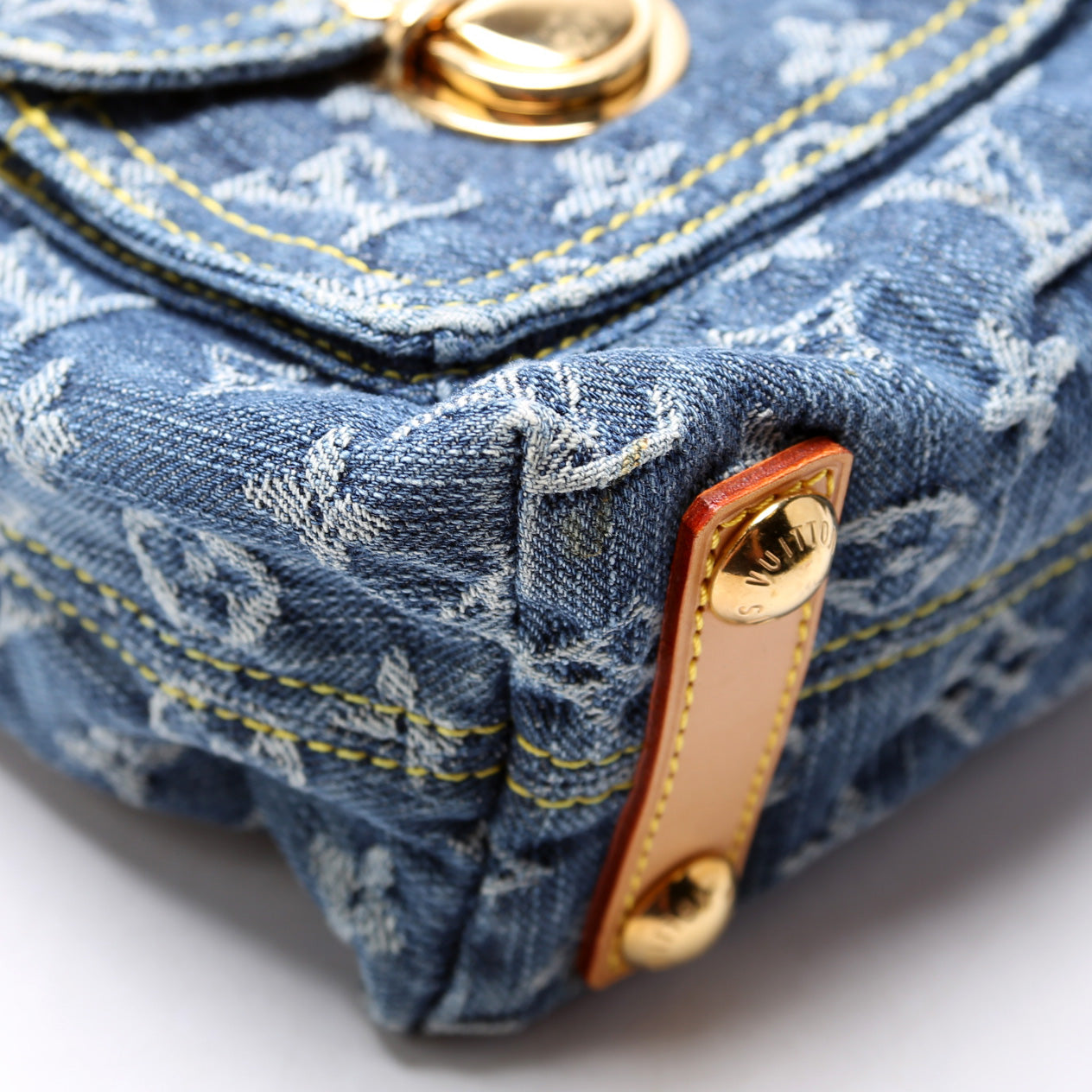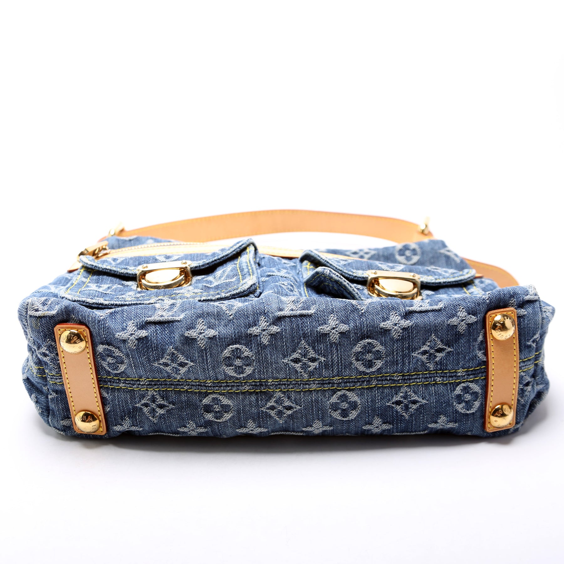 This pre-owned Louis Vuitton Baggy PM Denim is guaranteed 100% authentic. The exterior is in the classic Louis Vuitton denim and vachetta leather.