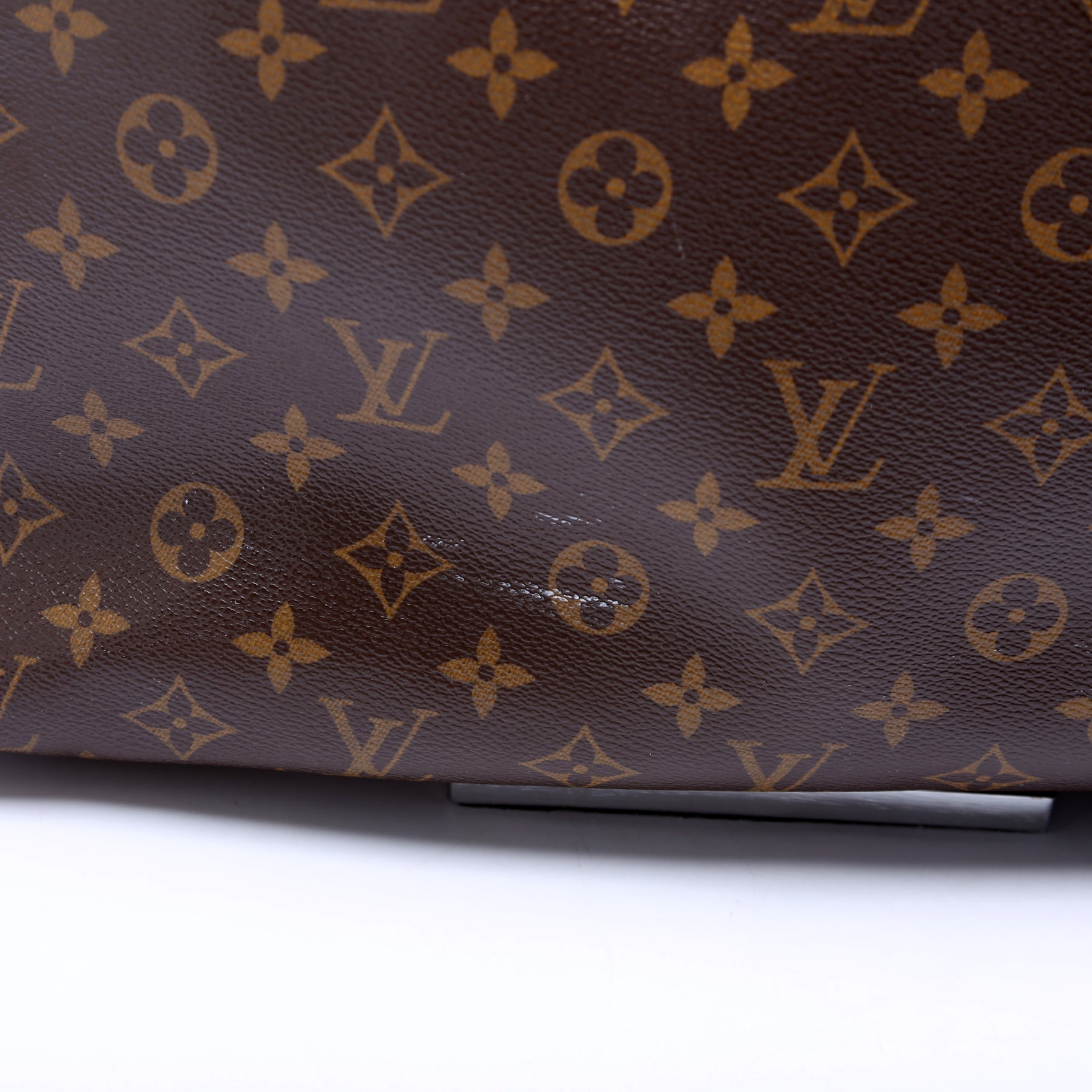 Exterior: The exterior Monogram coated canvas is free of any rips or cracks. The corners and leather details show discoloration and wear as pictured.