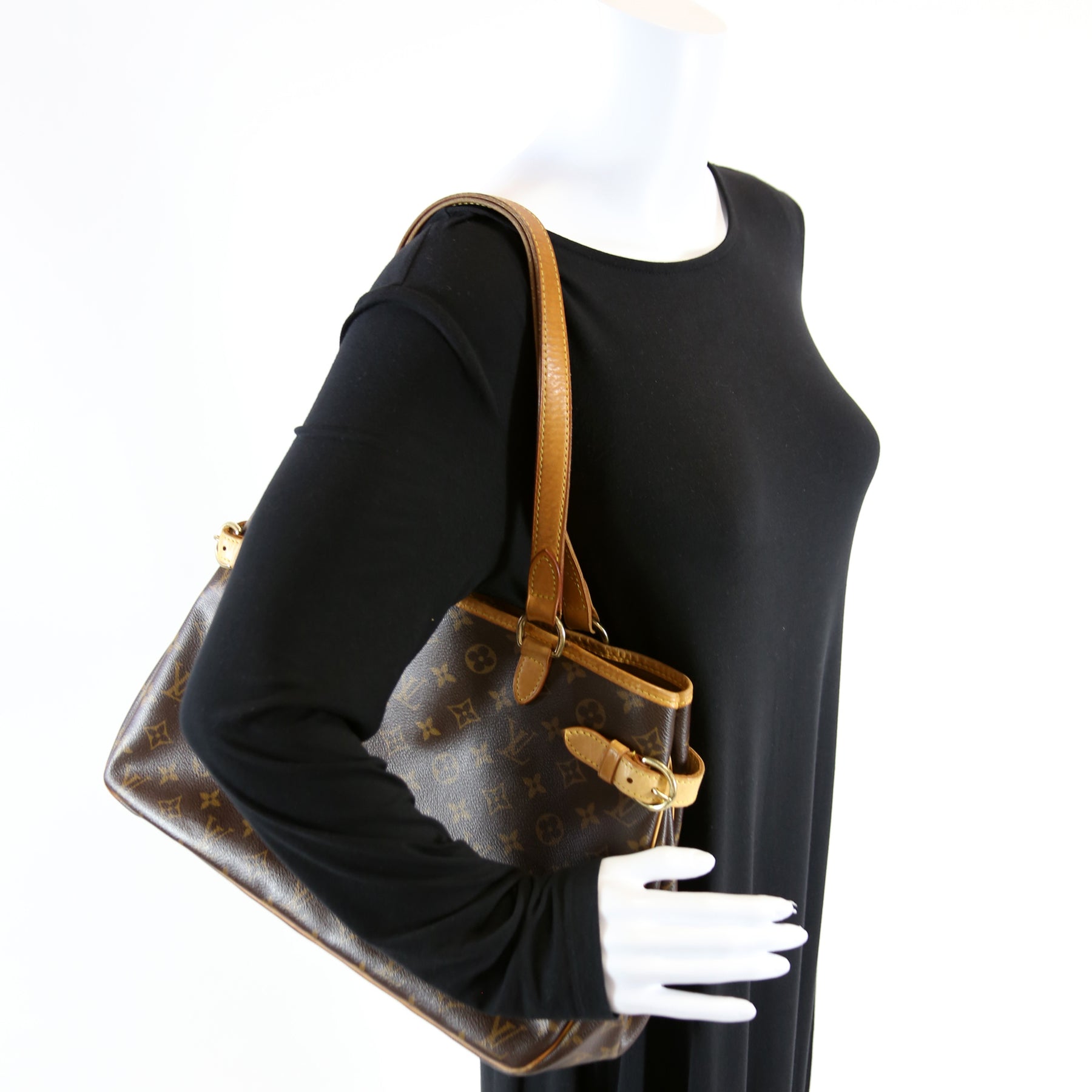This pre-owned Louis Vuitton Batignolles Horizontal is guaranteed 100% authentic. The exterior is in the classic Louis Vuitton Monogram coated canvas.