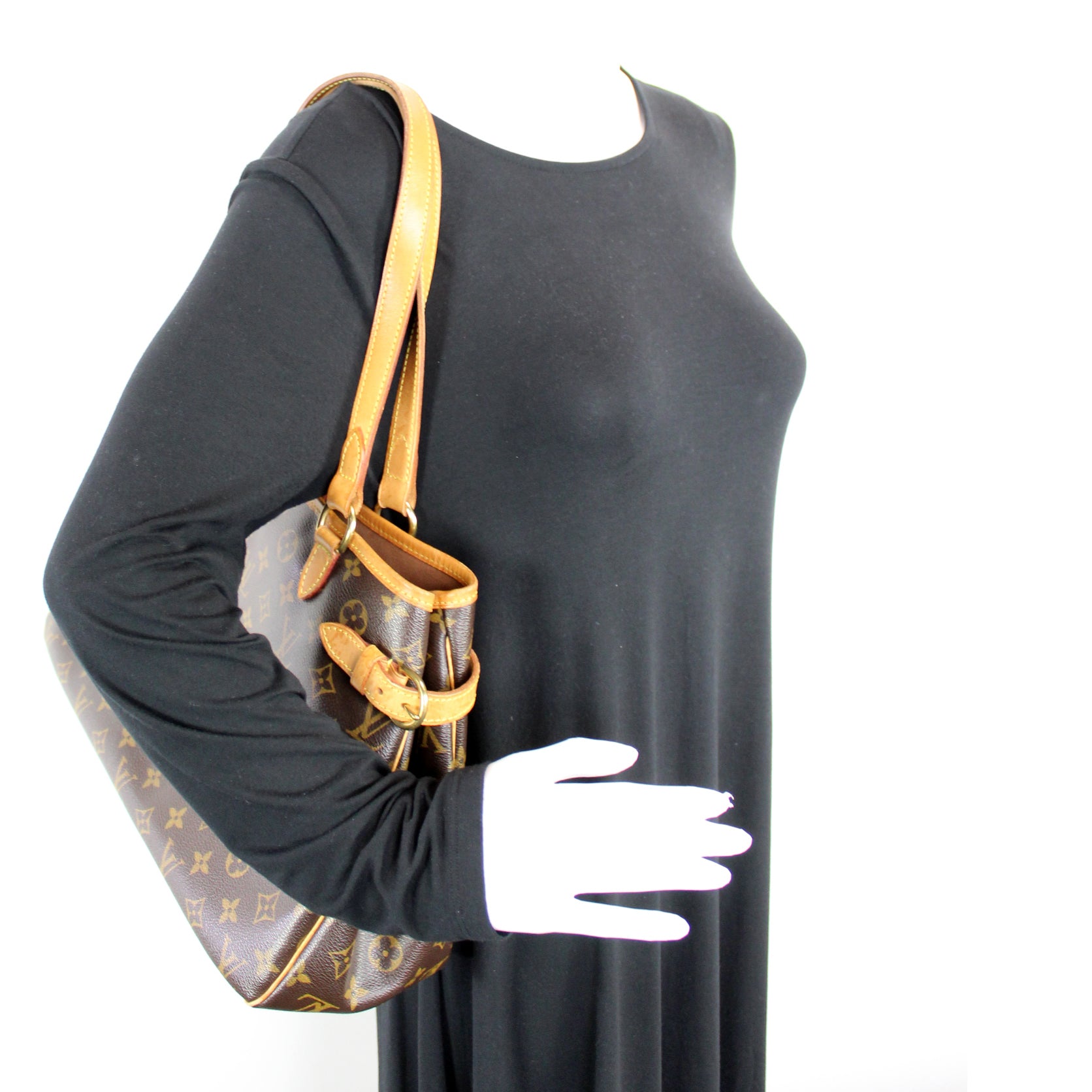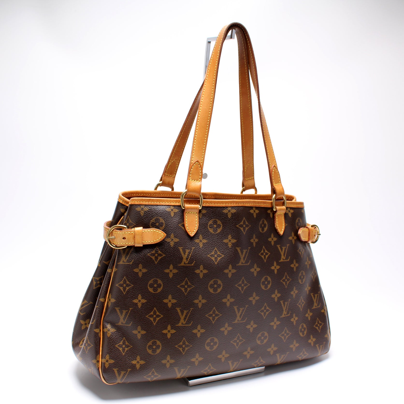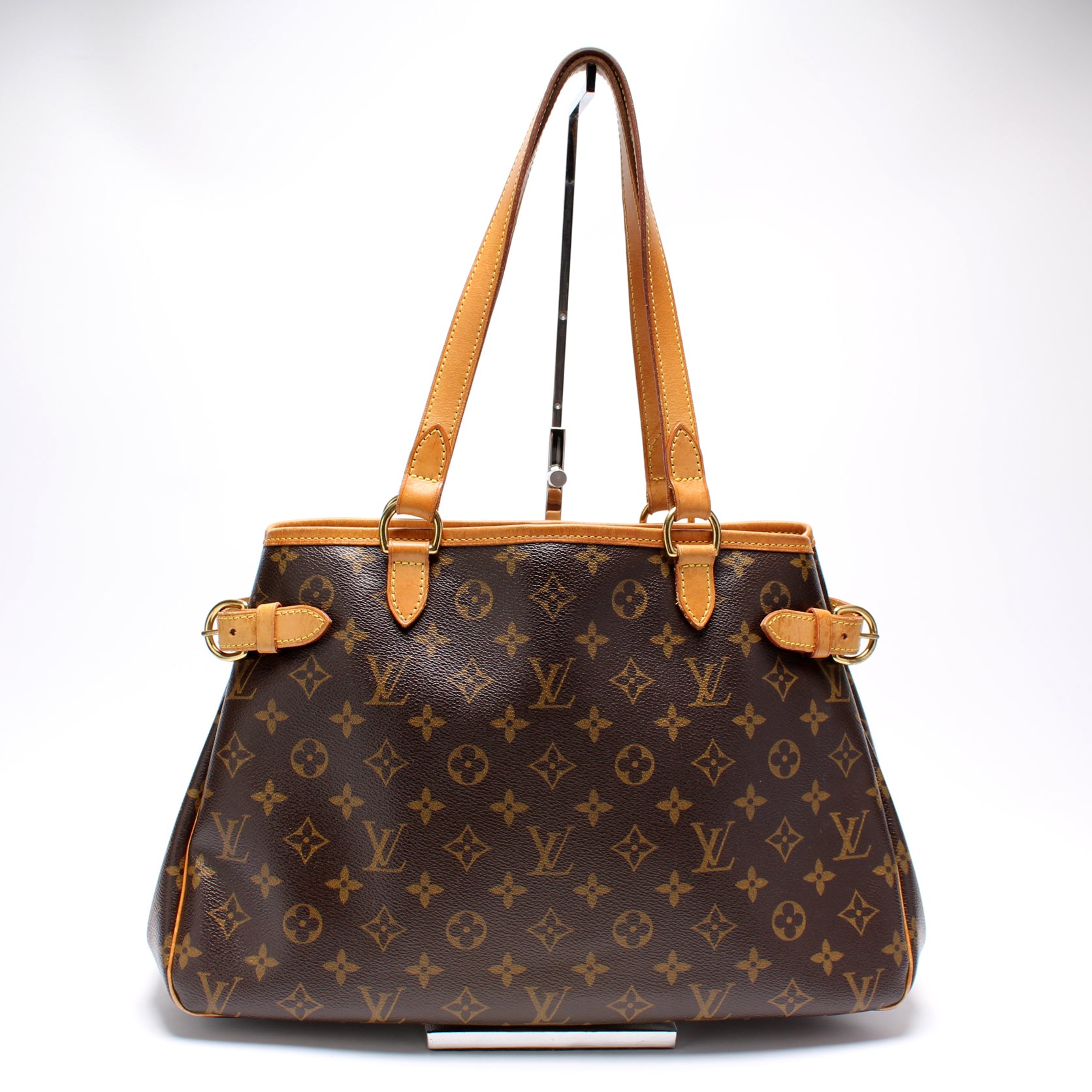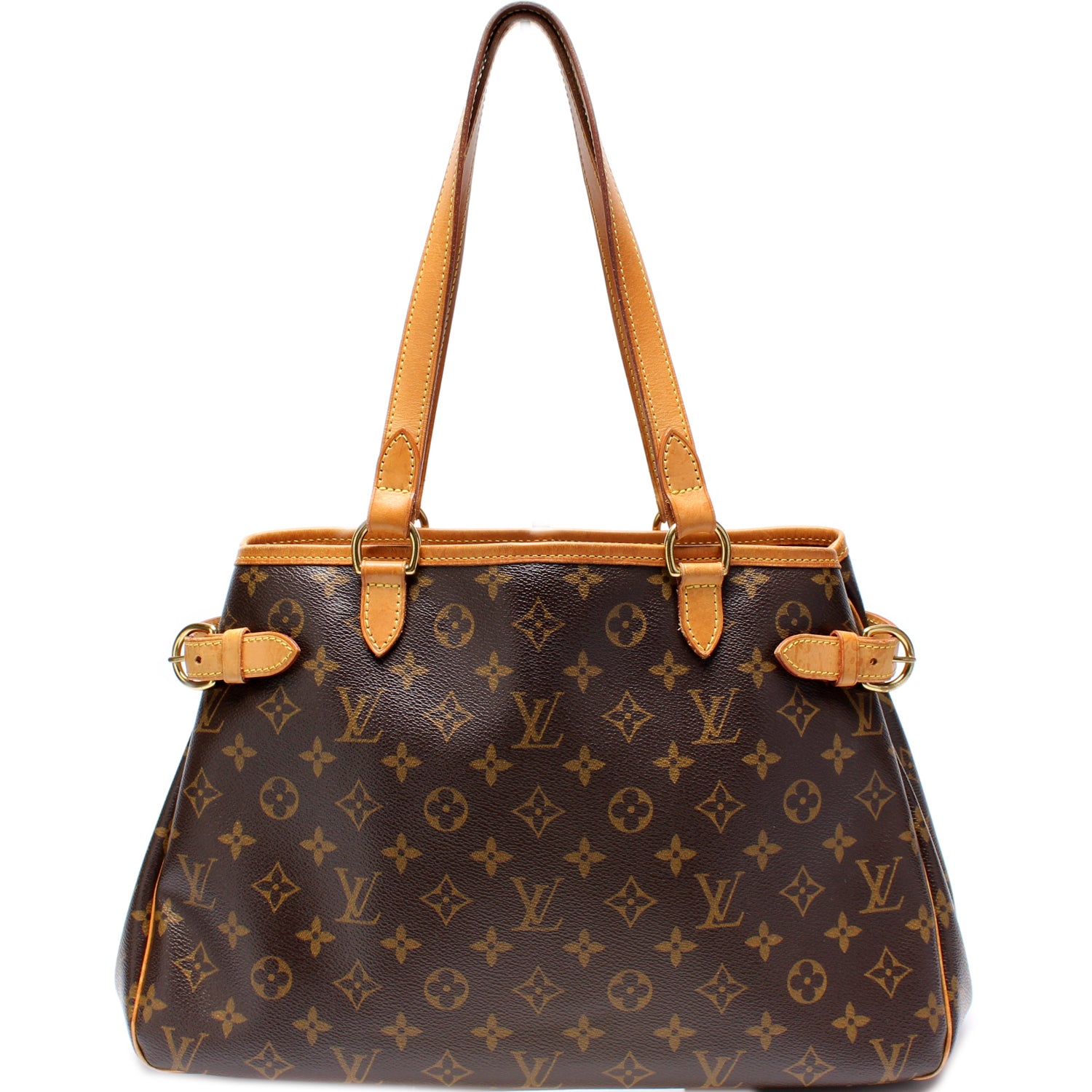 This pre-owned Louis Vuitton Batignolles Horizontal is guaranteed 100% authentic. The exterior is in the classic Louis Vuitton Monogram coated canvas.