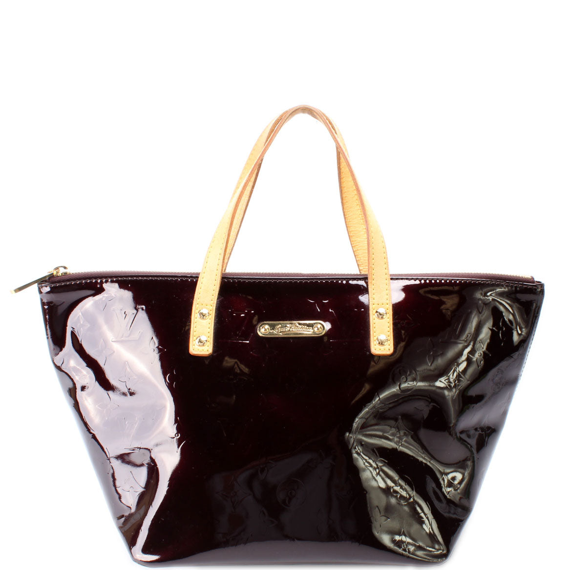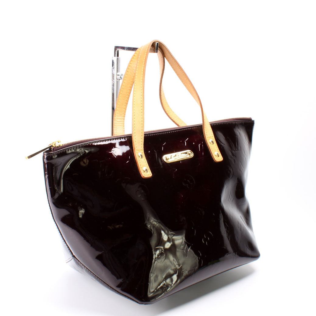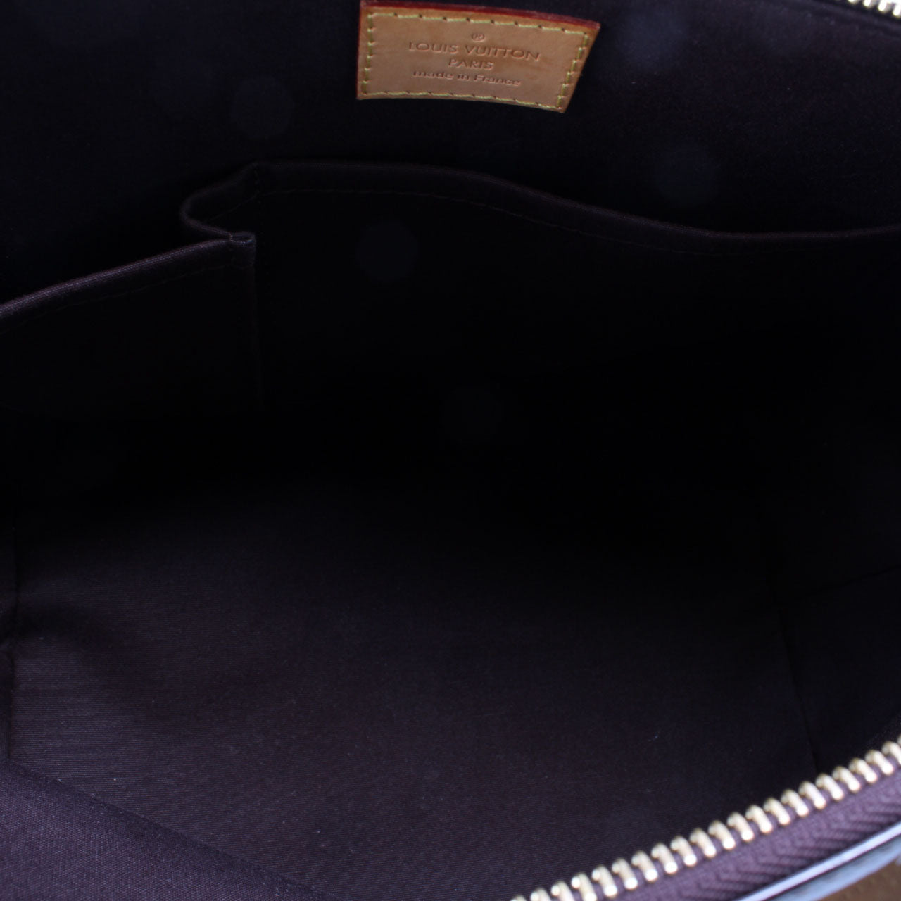This pre-owned Louis Vuitton Bellevue PM is guaranteed 100% authentic. The exterior is in the classic Louis Vuitton Vernis leather.