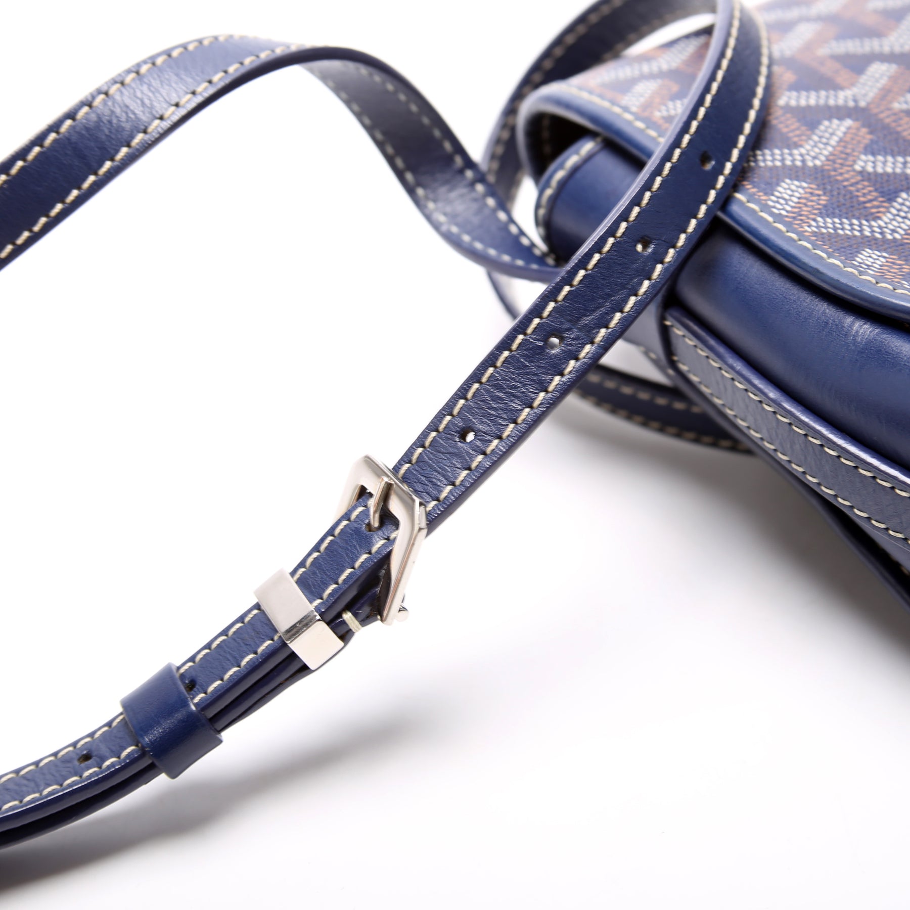 This pre-owned Goyard Belvedere PM is guaranteed 100% authentic. The exterior is in the classic Goyard Goyardine coated canvas.