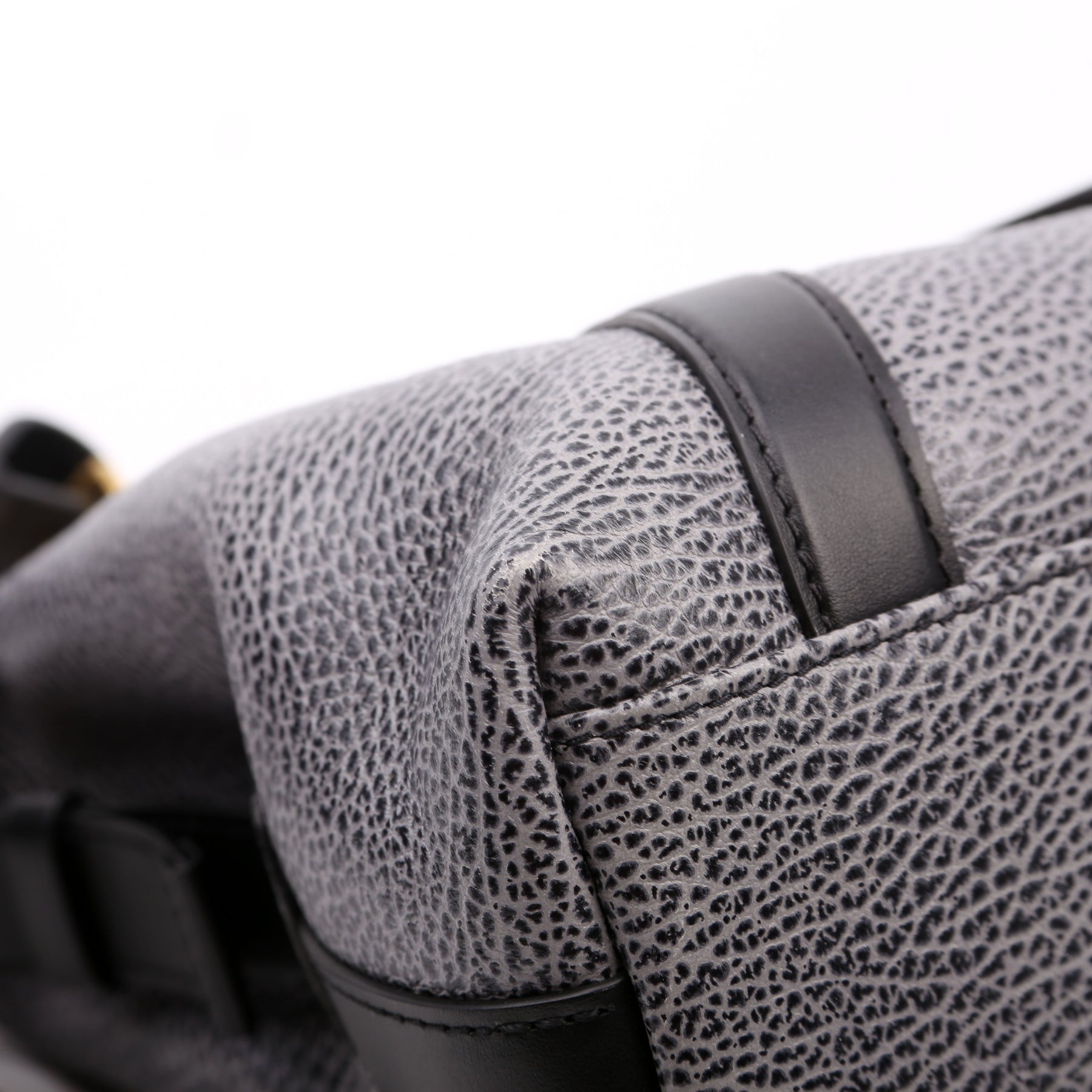 Exterior: The exterior leather is free of any rips or cracks. The black leather details show minor wear.