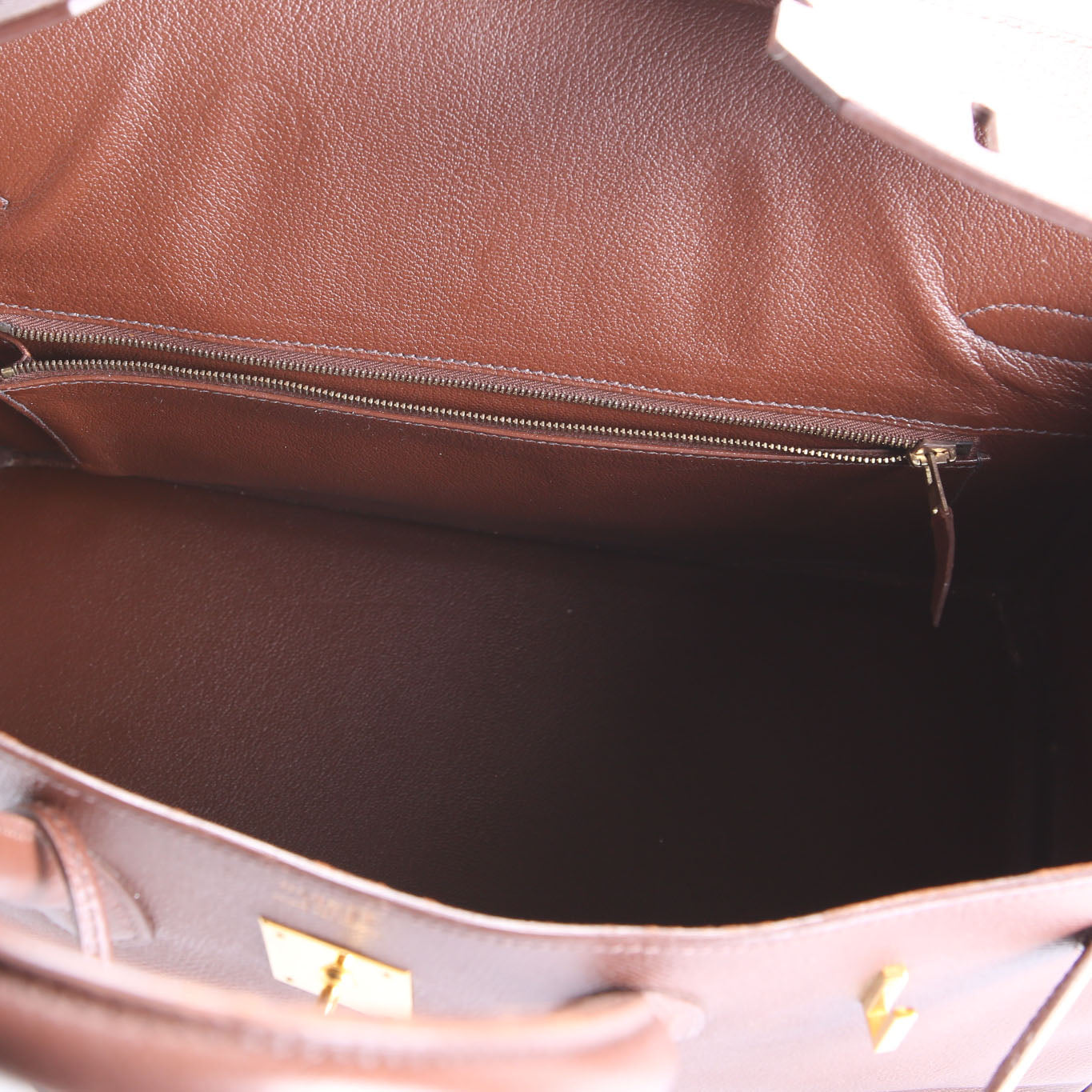 Interior: The interior is free from wear. It features one open pocket, and one zip closure pocket.