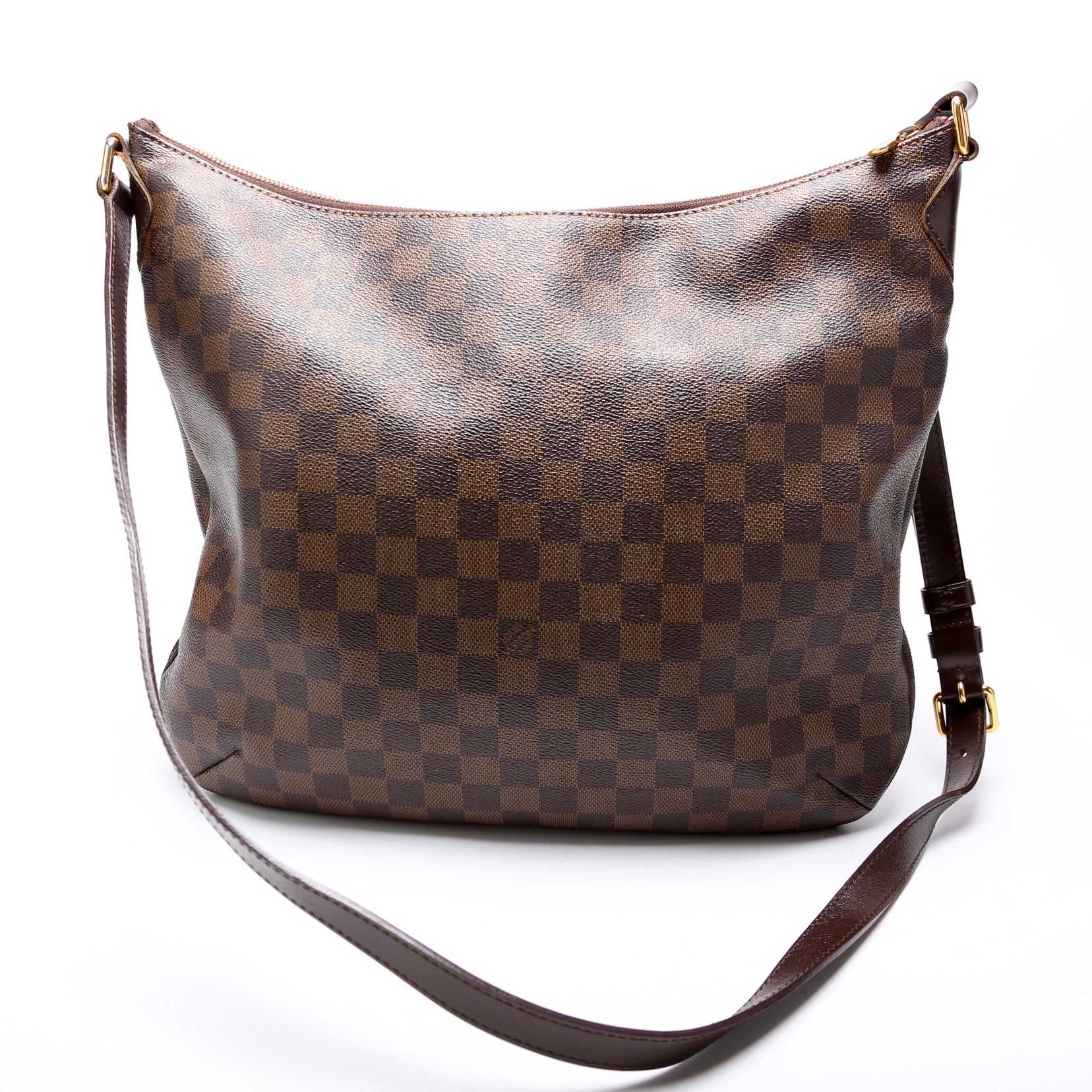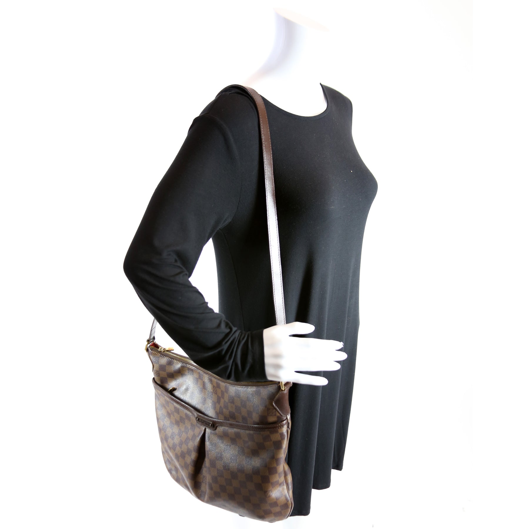 This pre-owned Louis Vuitton Bloomsbury GM is guaranteed 100% authentic. The exterior is in the classic Louis Vuitton Damier Ebene coated canvas.