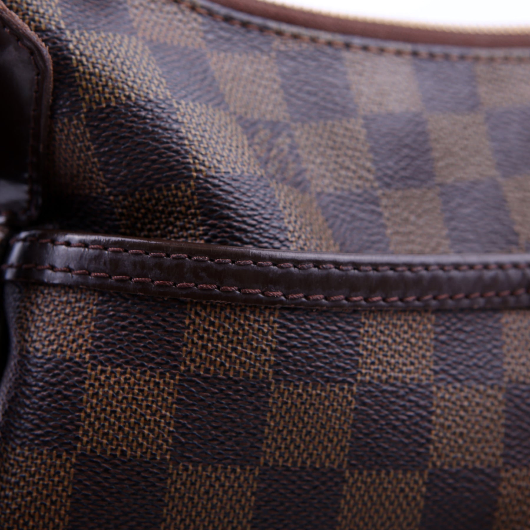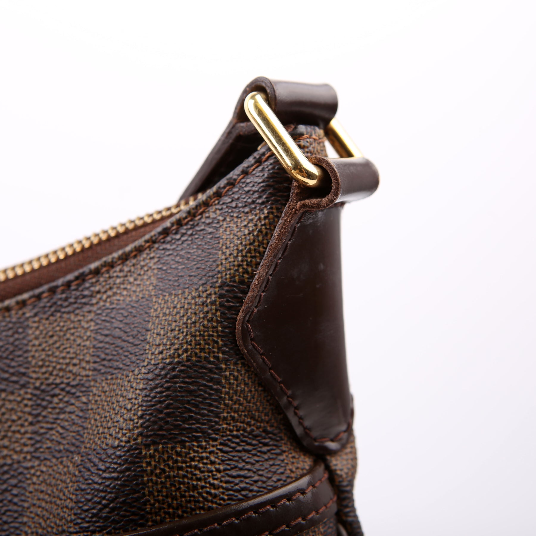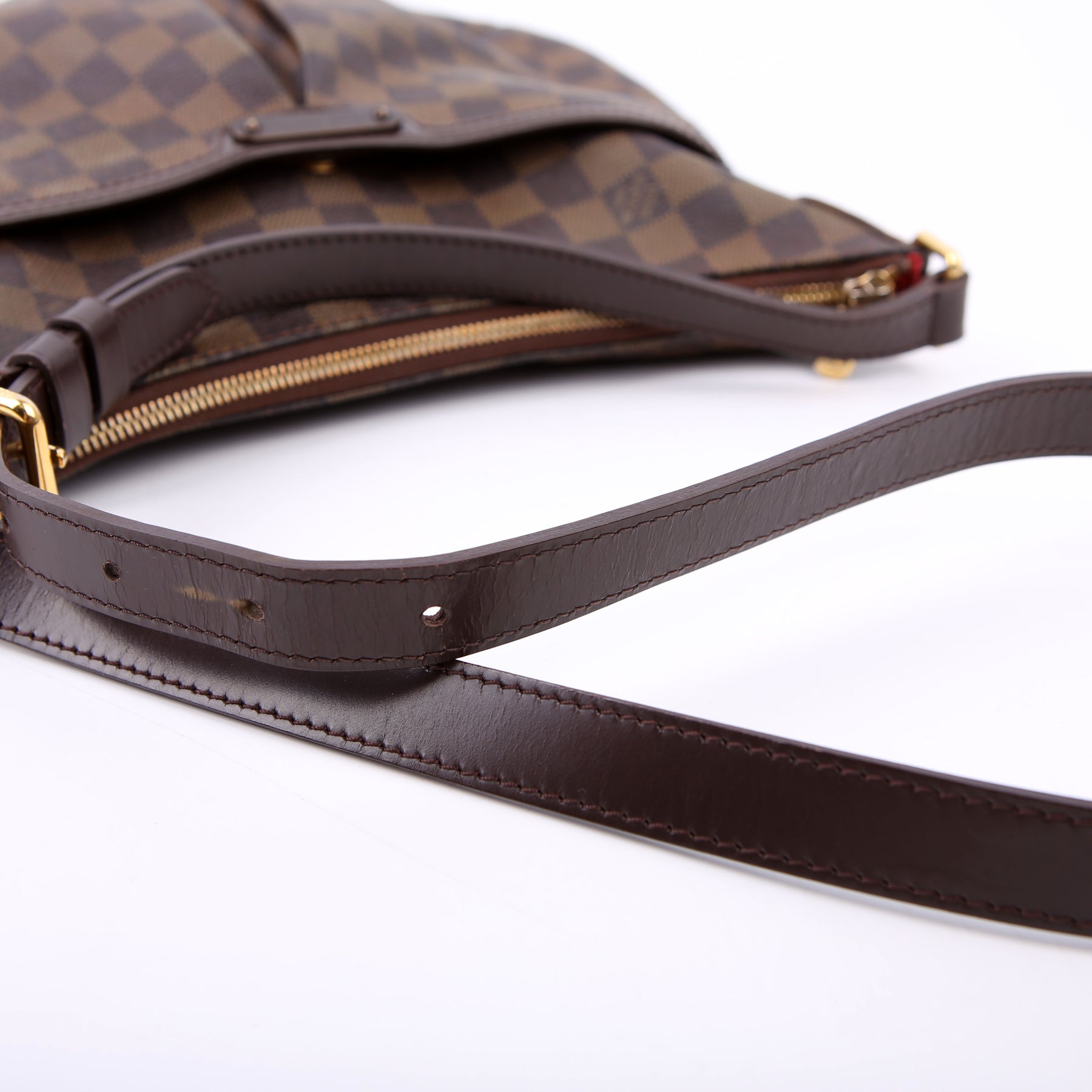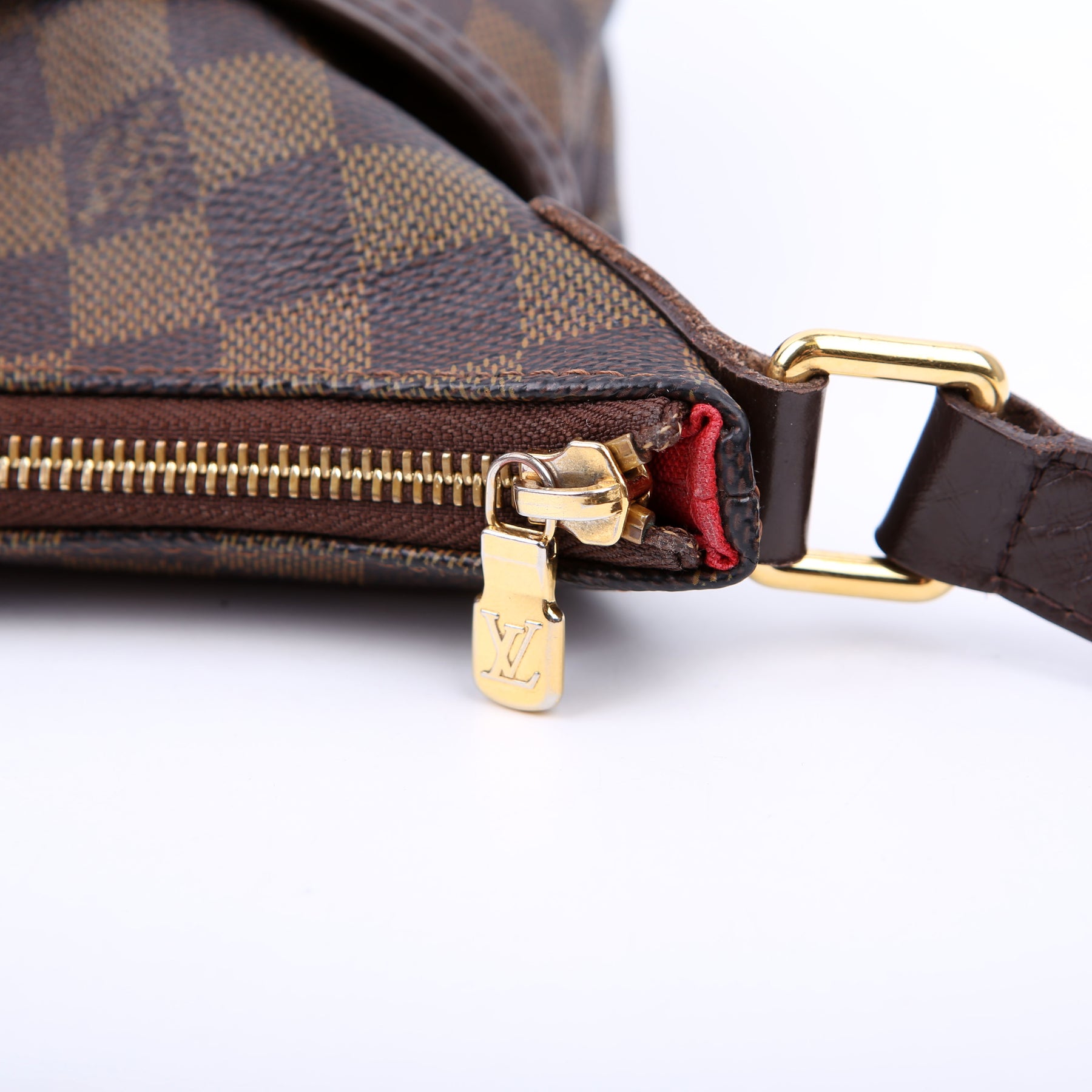 This pre-owned Louis Vuitton Bloomsbury PM is guaranteed 100% authentic. The exterior is in the classic Louis Vuitton Damier Ebene coated canvas.